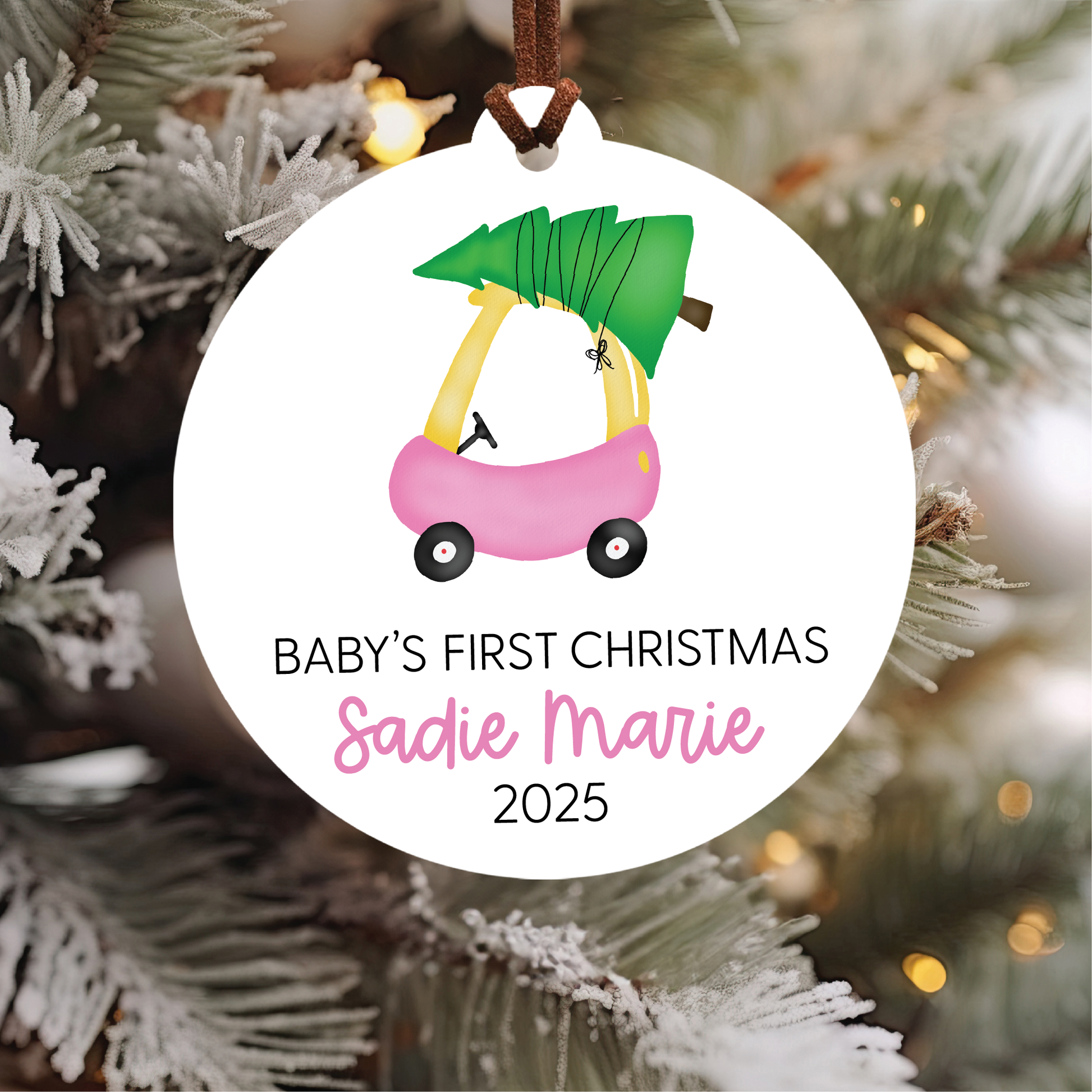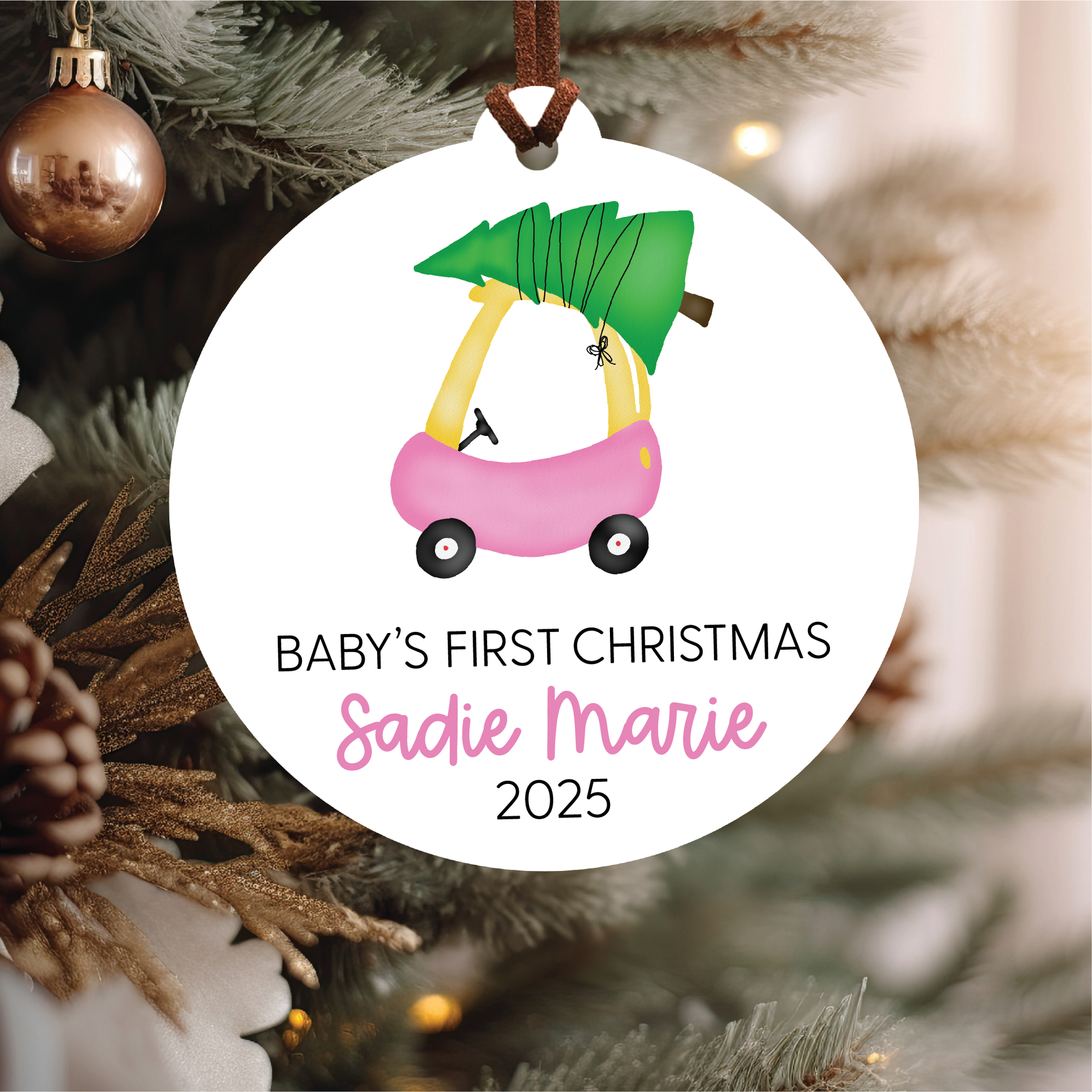 Baby's First Christmas Ornament | Pink Car