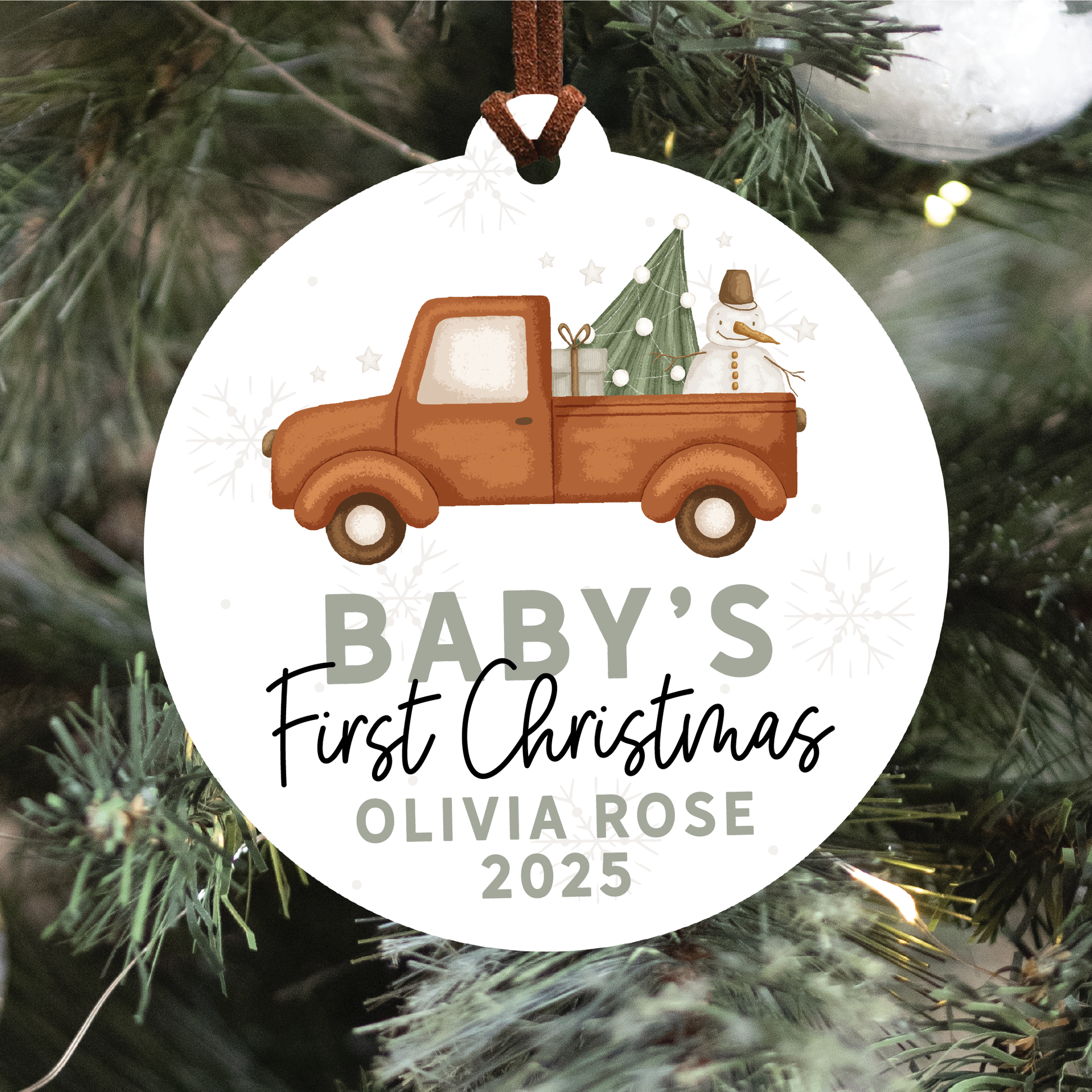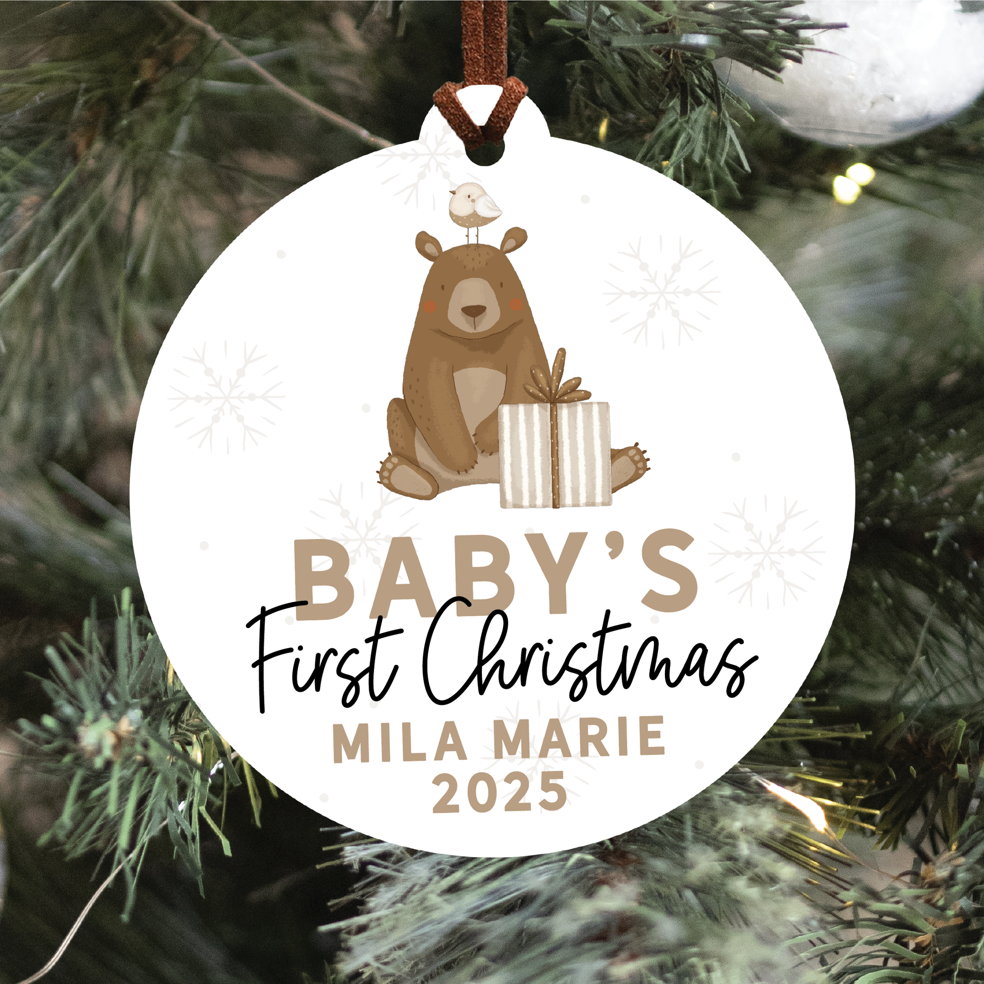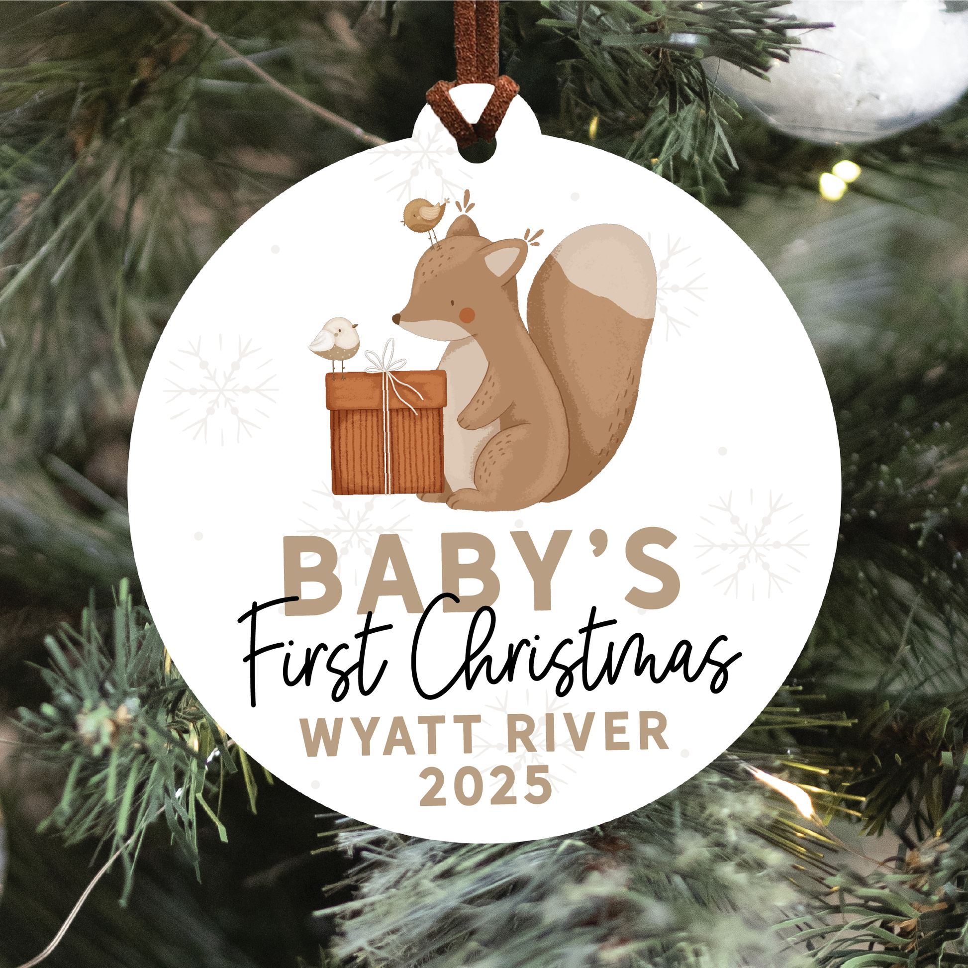 Each ornament is laser cut from 1/8" white acrylic and then printed with permanent ink. They are finished with a brown suede string for a modern look. The back of the ornament will be white.