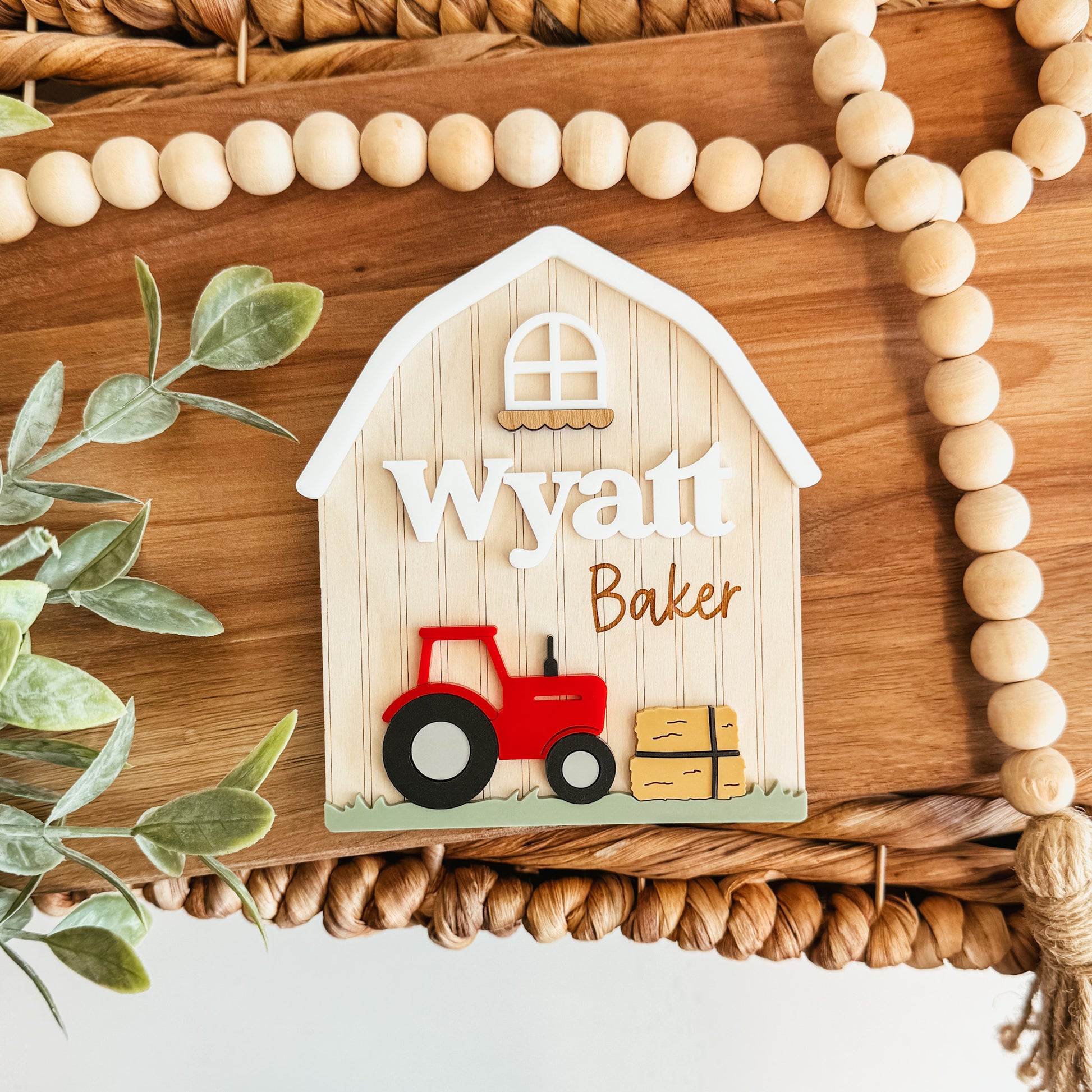 Barn and Tractor Baby Name Announcement Sign