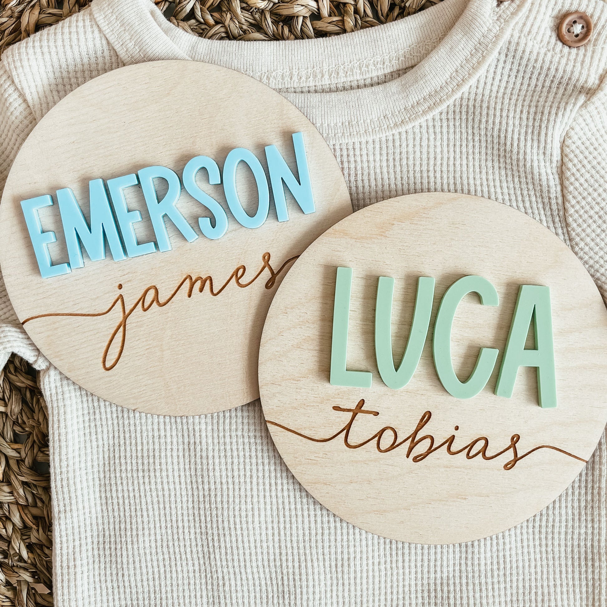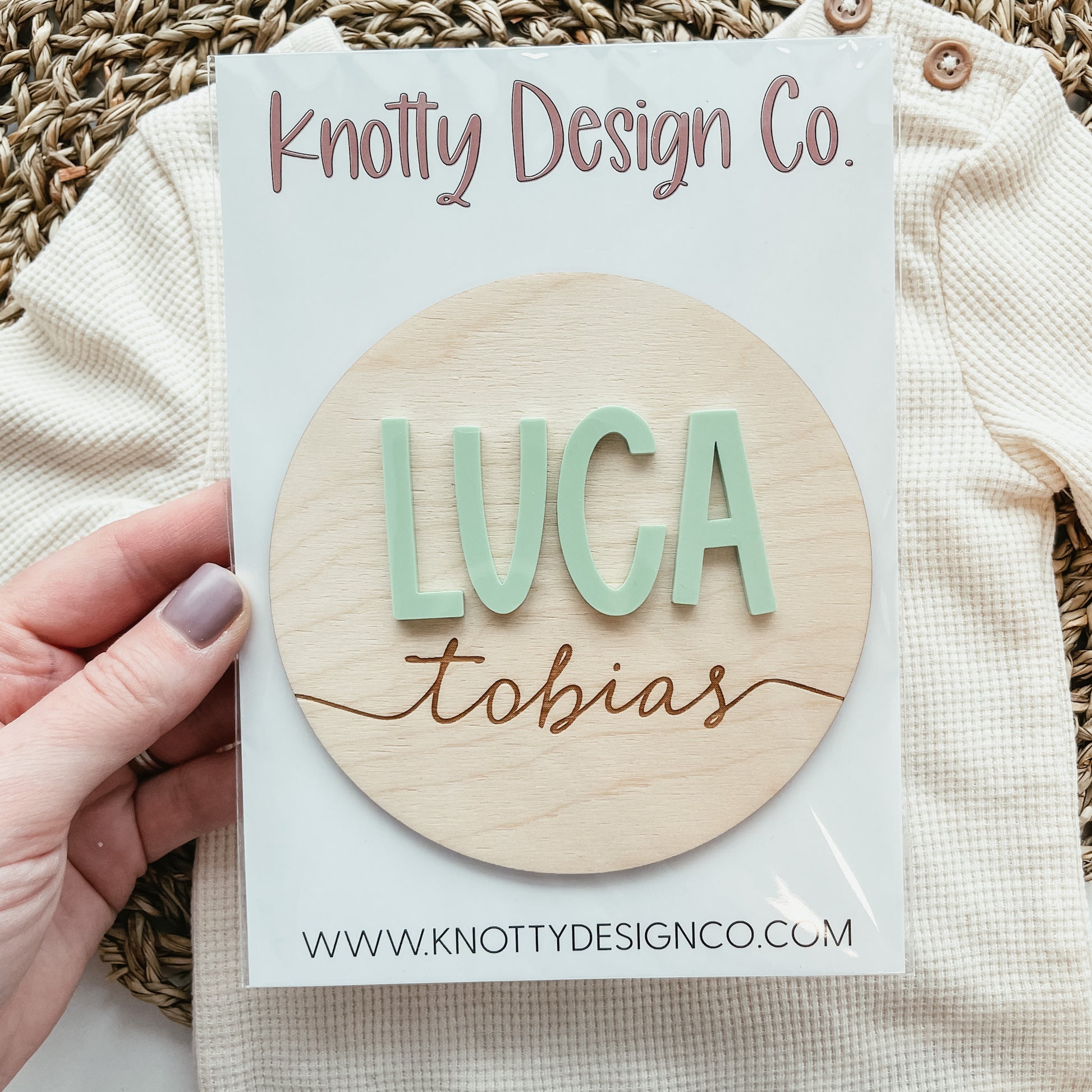 Our wooden birth announcement signs are a great way to announce your baby’s name and add to your newborn photoshoot.