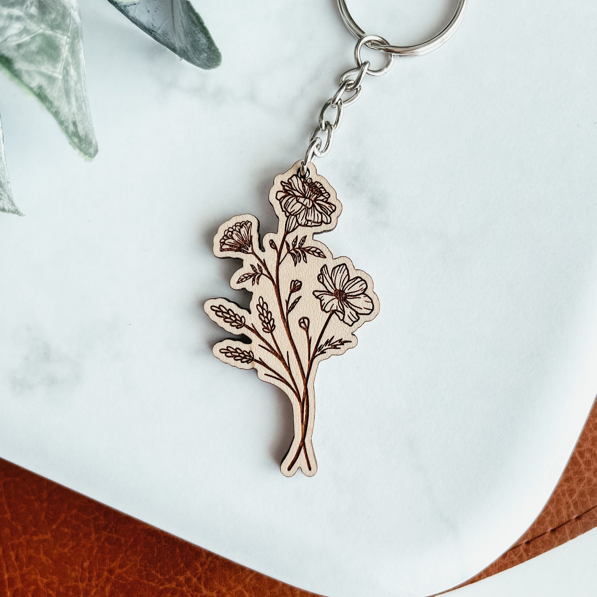 Our wooden keychains are cut from premium-grade, laminated maple and engraved with our studio laser.