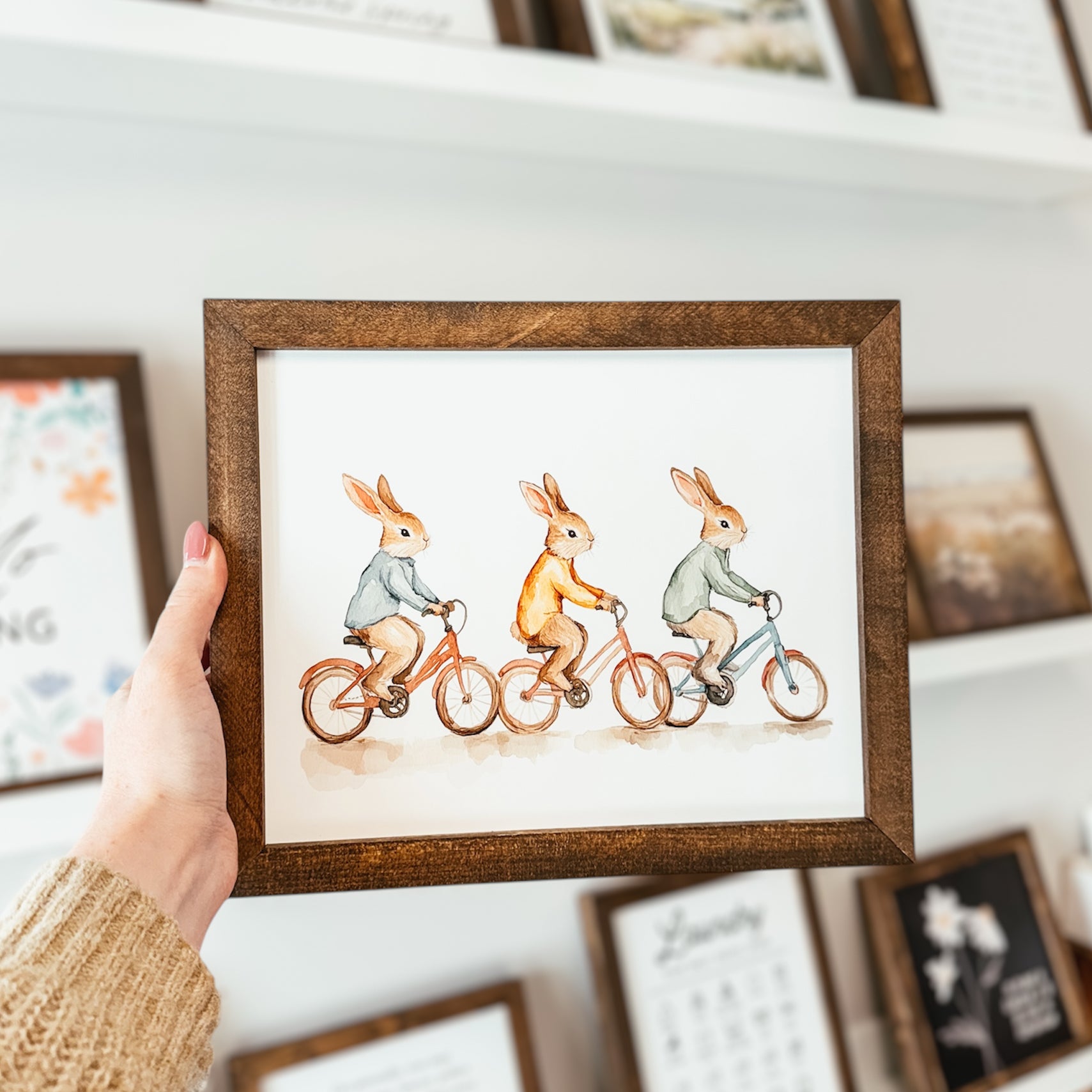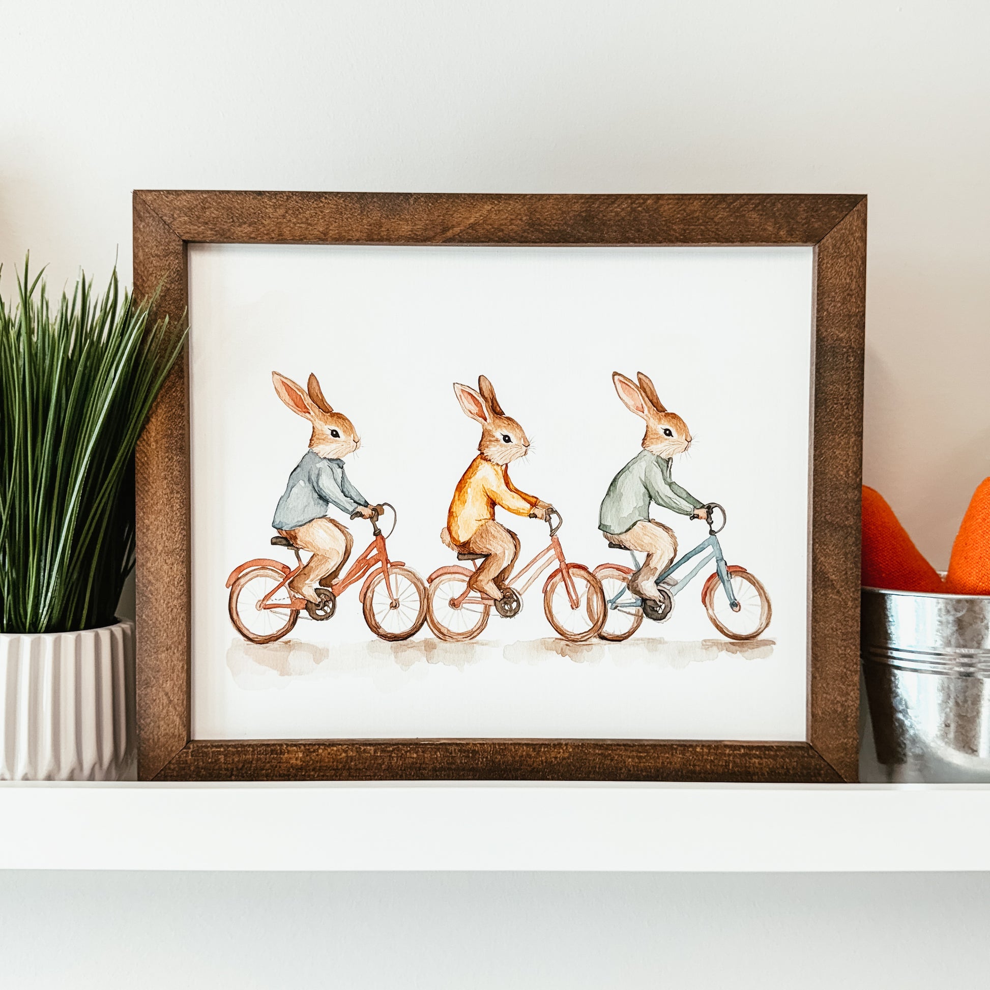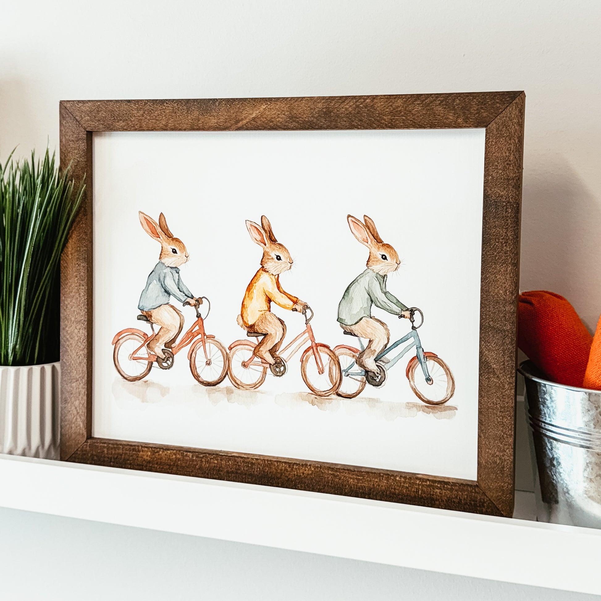 Bunnies on Bikes Framed Sign