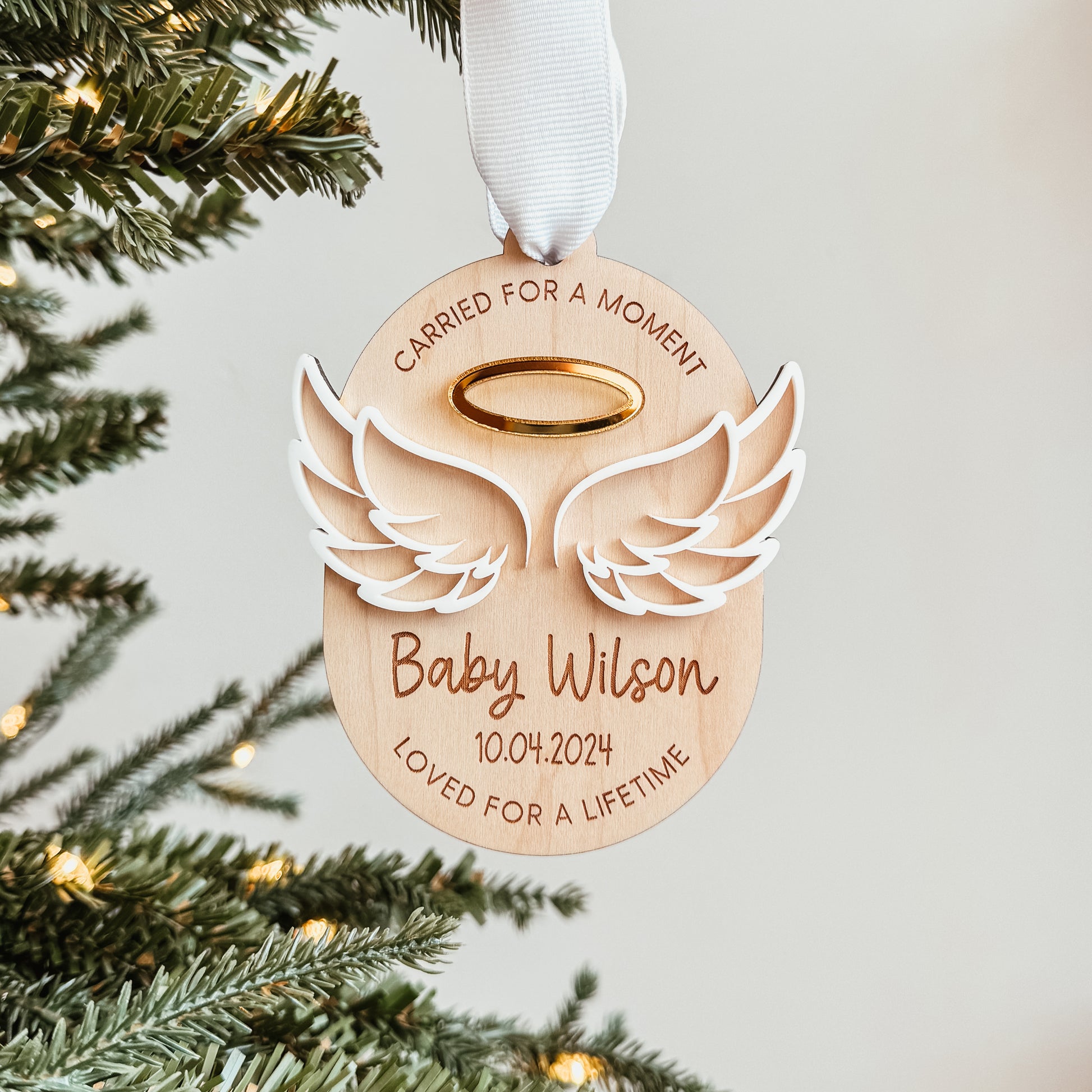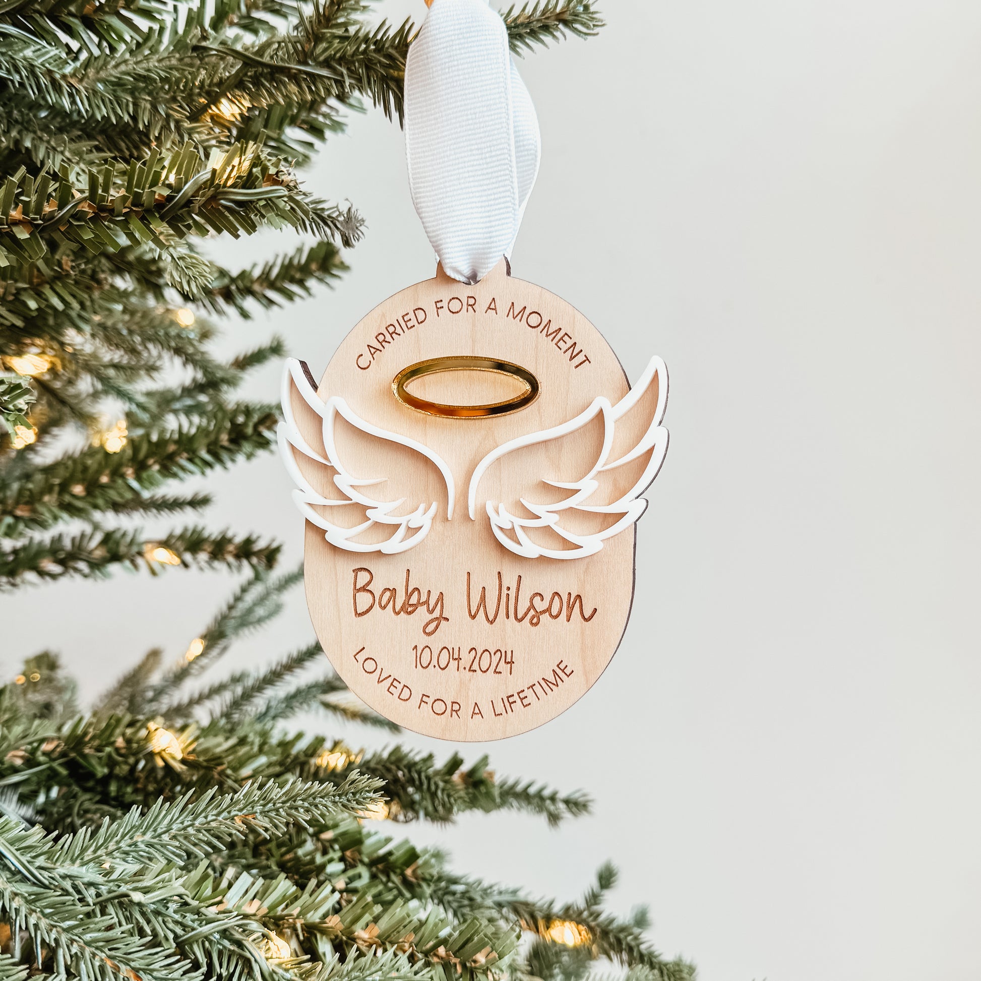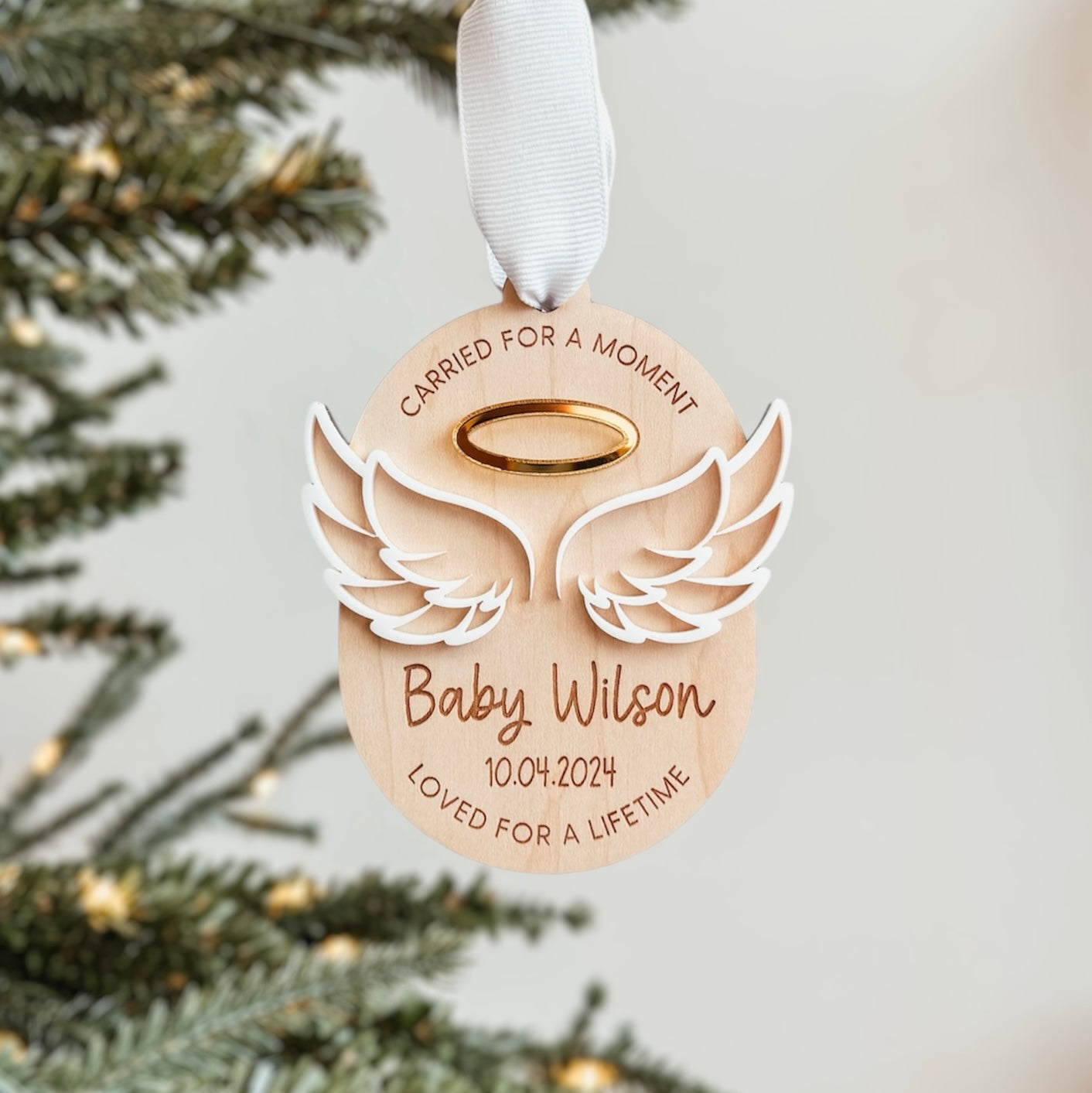 Our personalized baby memorial ornaments are designed to honour the memory of little ones lost to miscarriage or stillbirth. Each ornament is handcrafted with a lot of love to create a special keepsake or gift for those grieving loss during the holiday season.