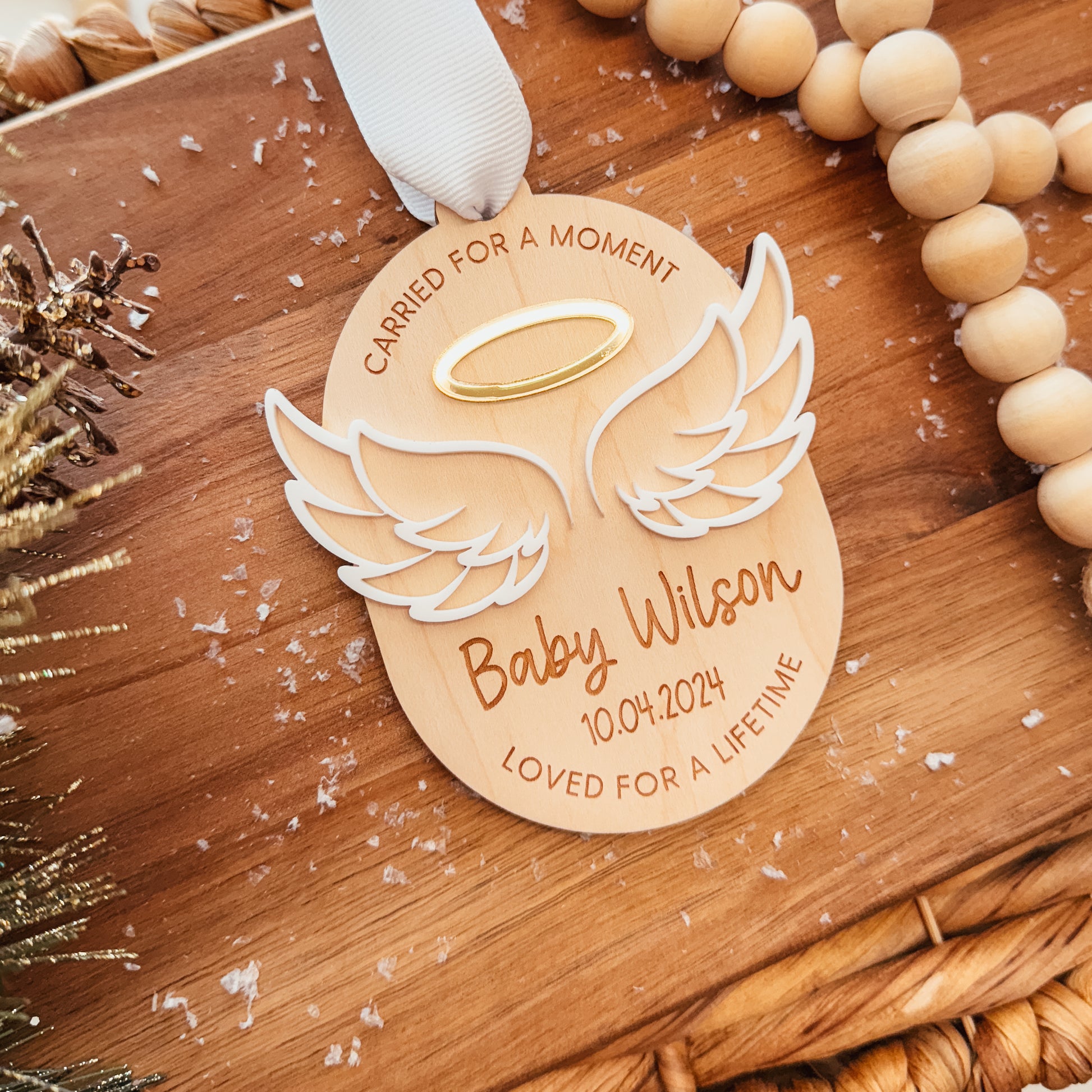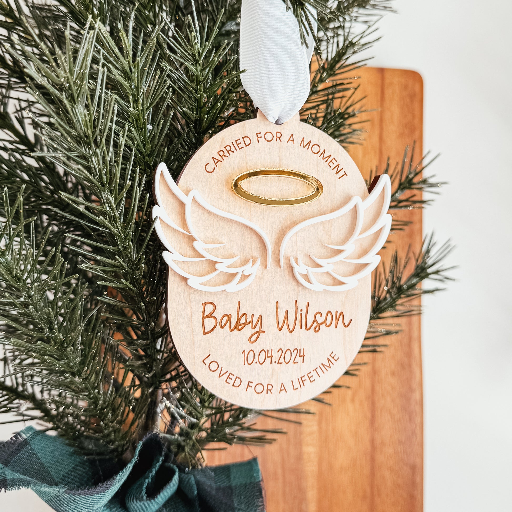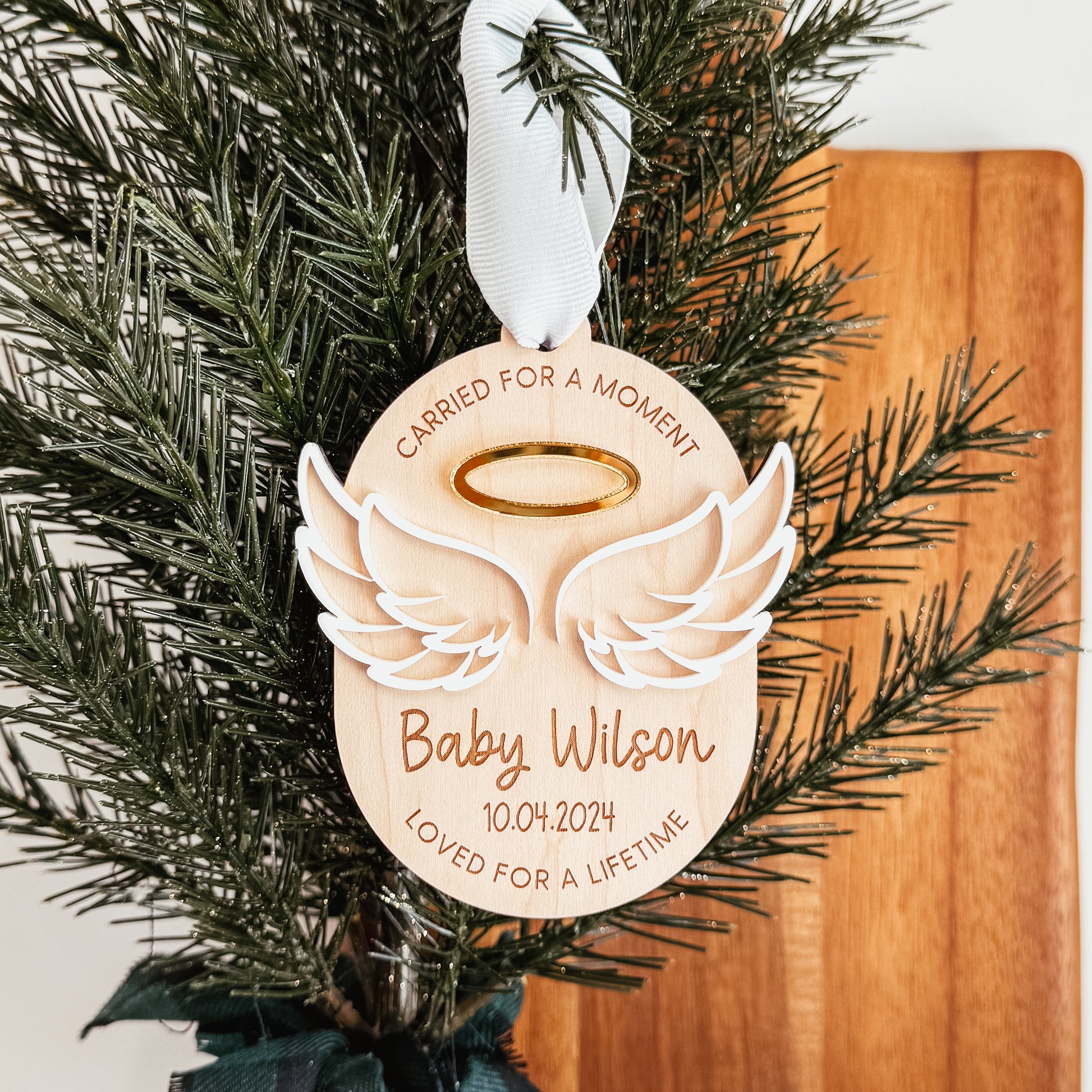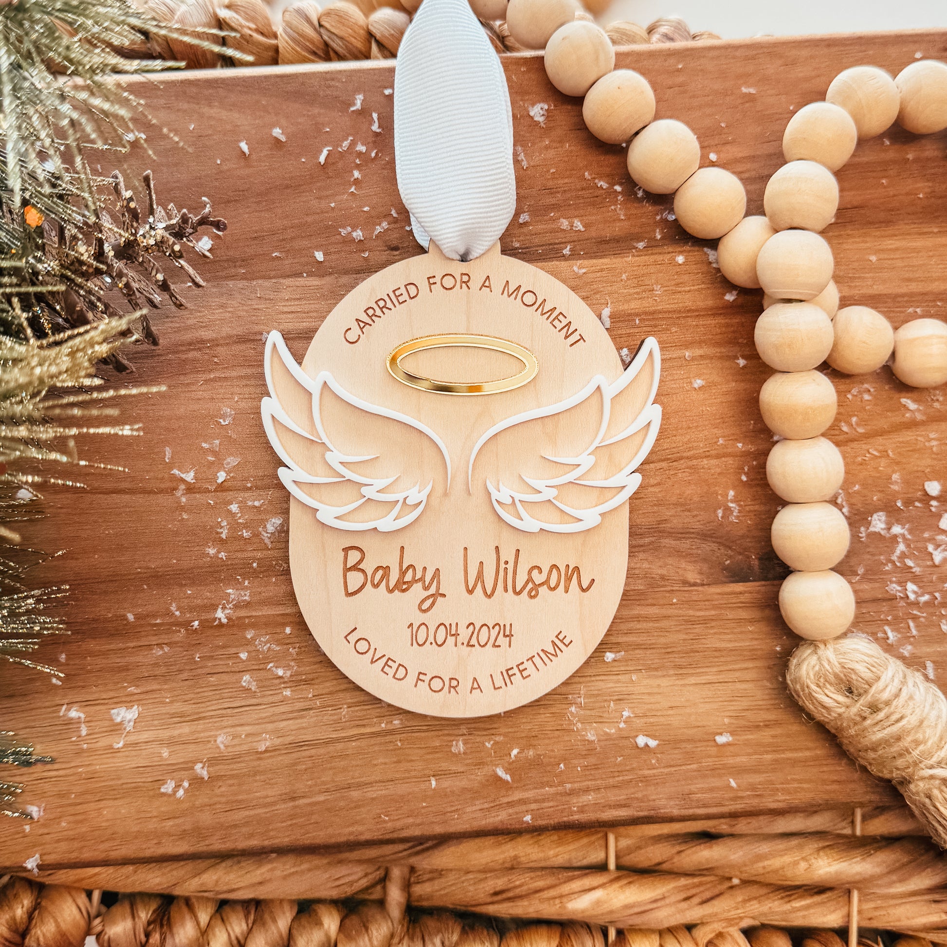 Our personalized baby memorial ornaments are designed to honour the memory of little ones lost to miscarriage or stillbirth. Each ornament is handcrafted with a lot of love to create a special keepsake or gift for those grieving loss during the holiday season.