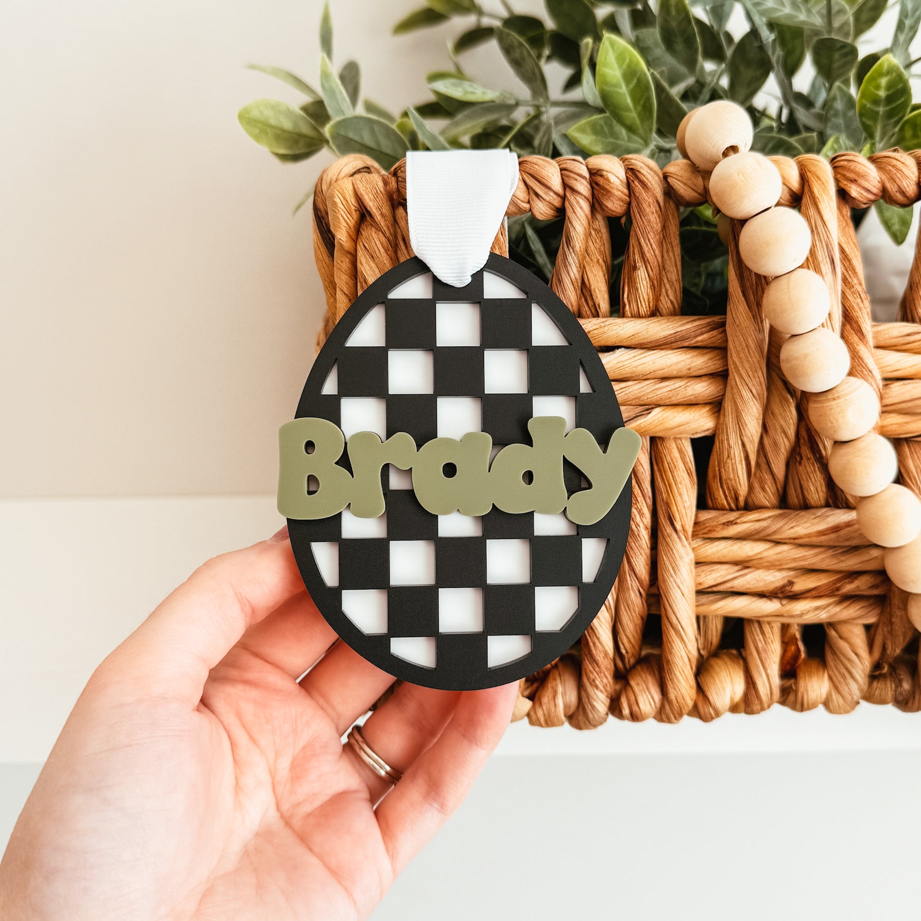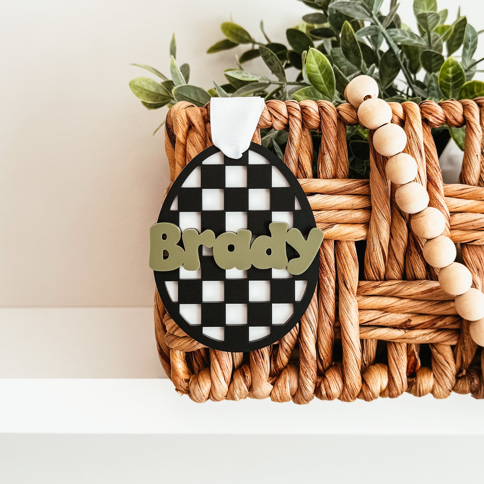 Our Personalized Easter Basket Tags make the perfect addition to your family's Easter baskets or wrapping! This style is shaped like an Easter egg and features a checkered pattern that is trending this year.
