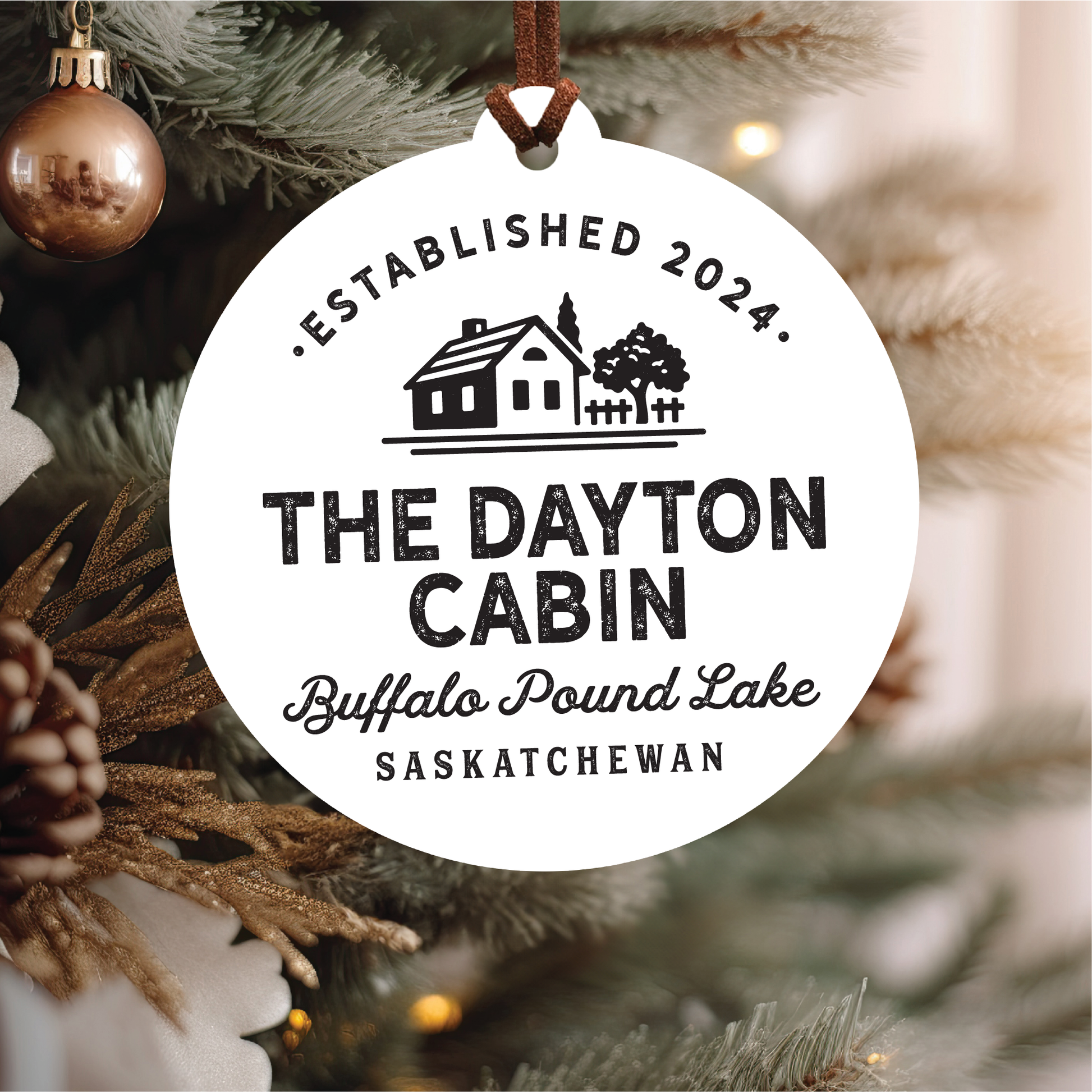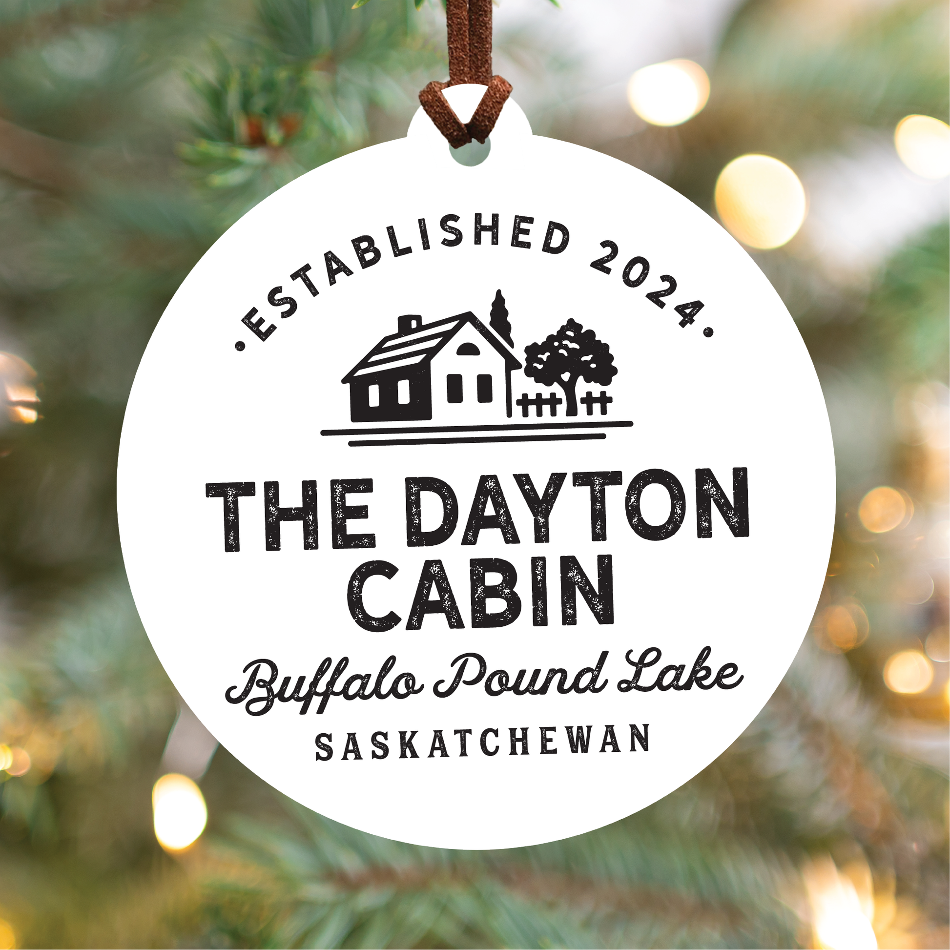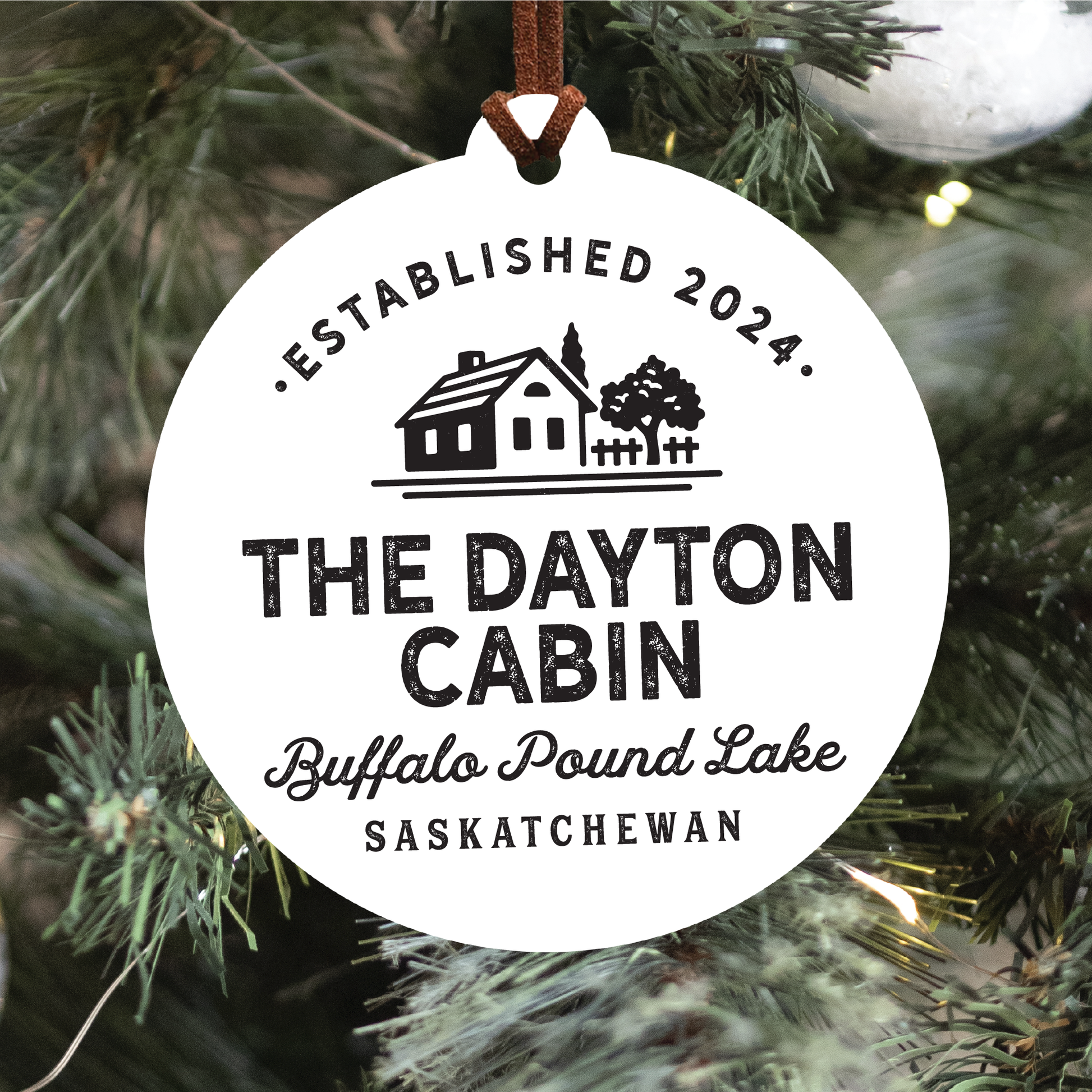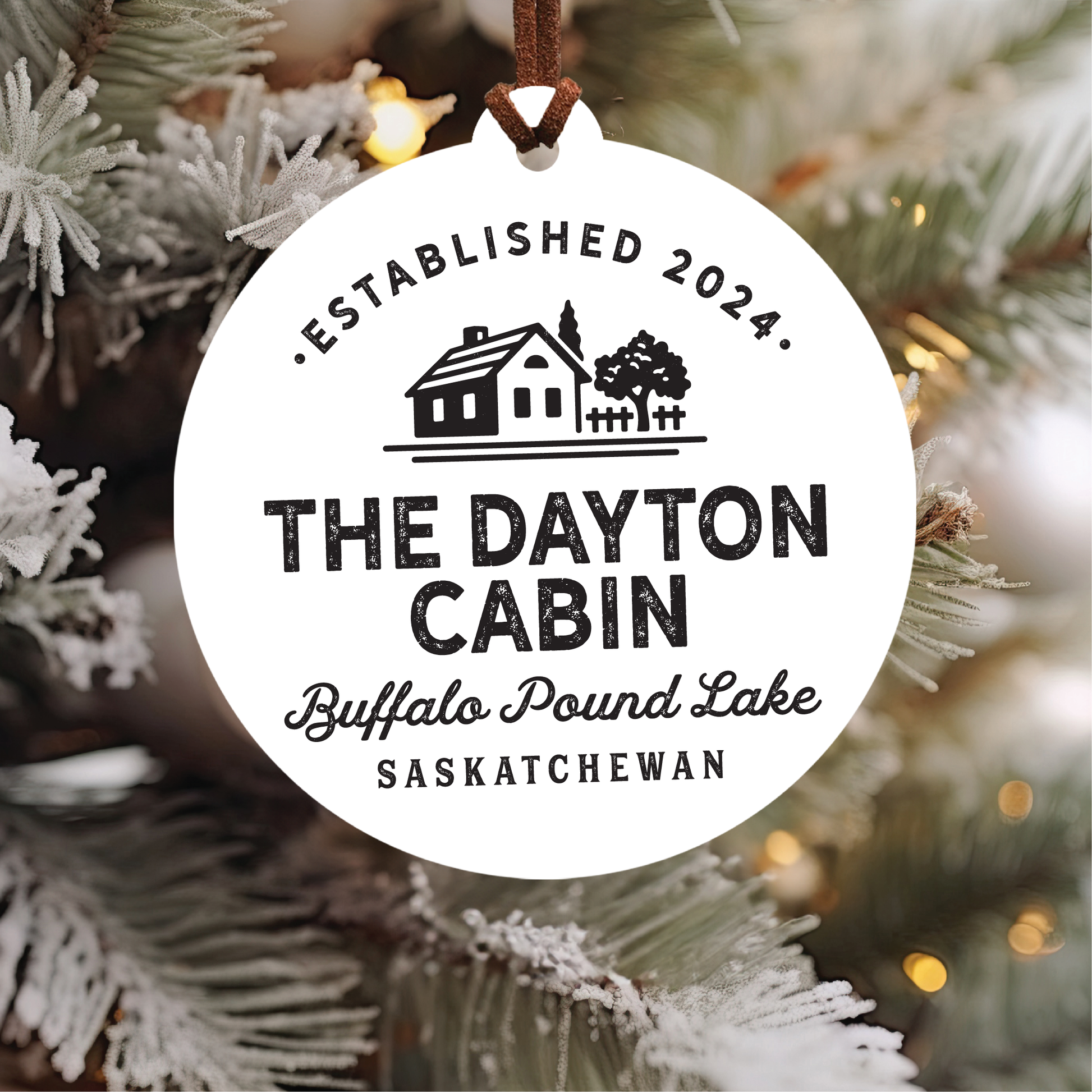 Each ornament is laser cut from 1/8" white acrylic and then printed with permanent ink. They are finished with a brown suede string for a modern look. The back of the ornament will be white.