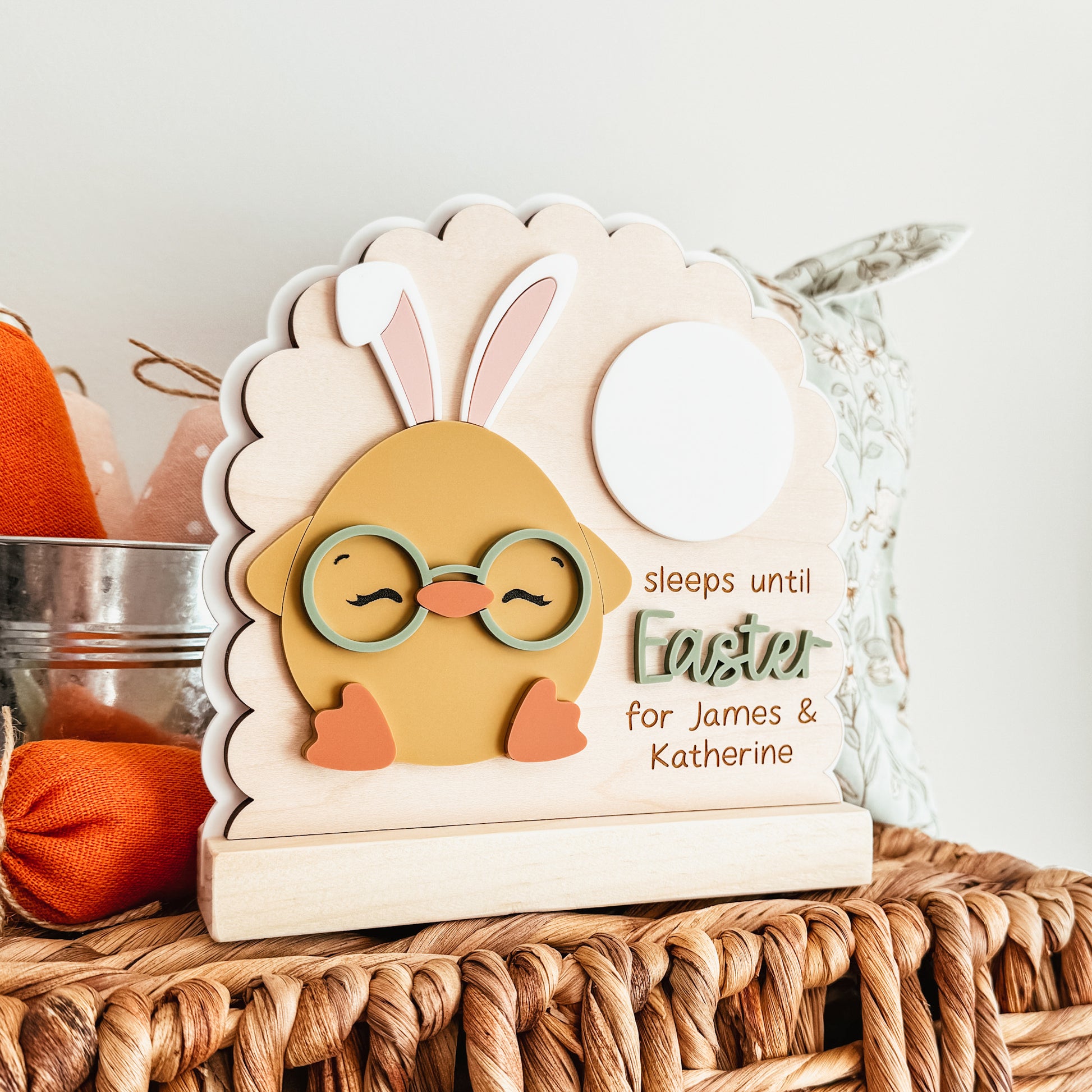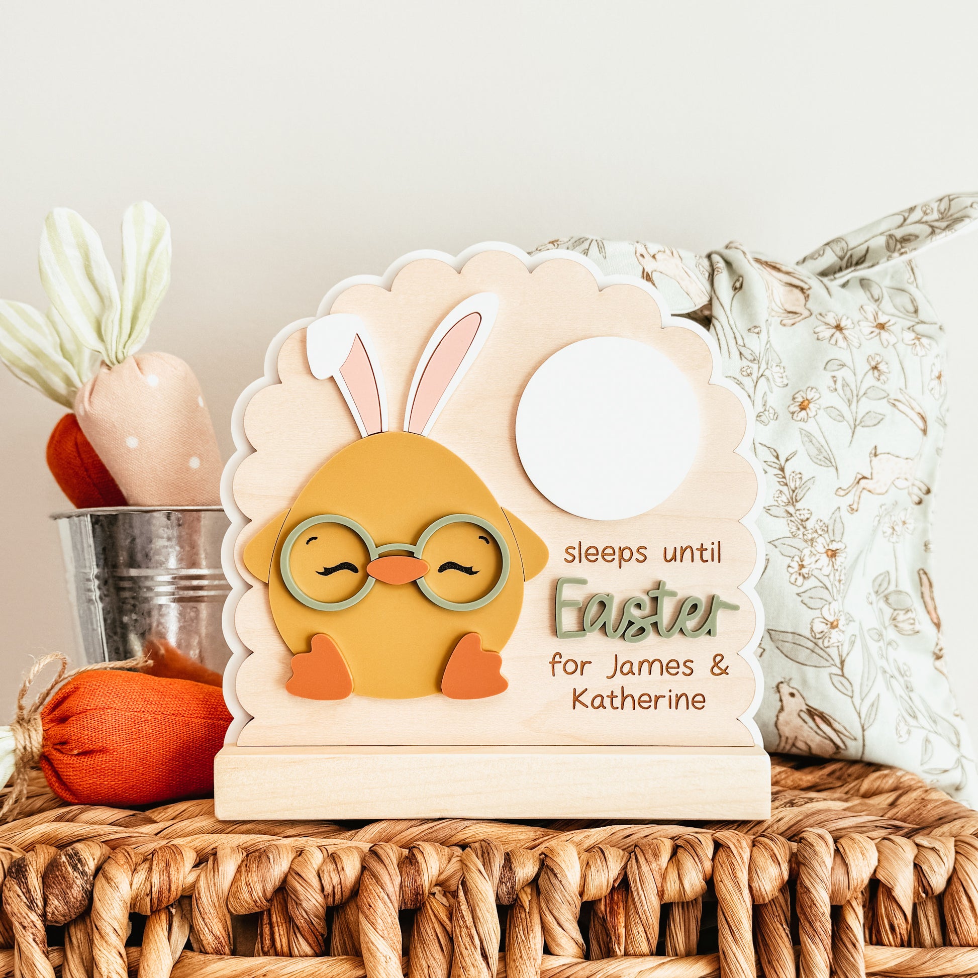 Countdown to Easter with our adorable dry-erase Easter chick countdown signs! These personalized Easter signs feature 3D lettering in the colour of your choice, the names of your little ones, and a dry erase space that works with any dry-erase marker (marker not included).