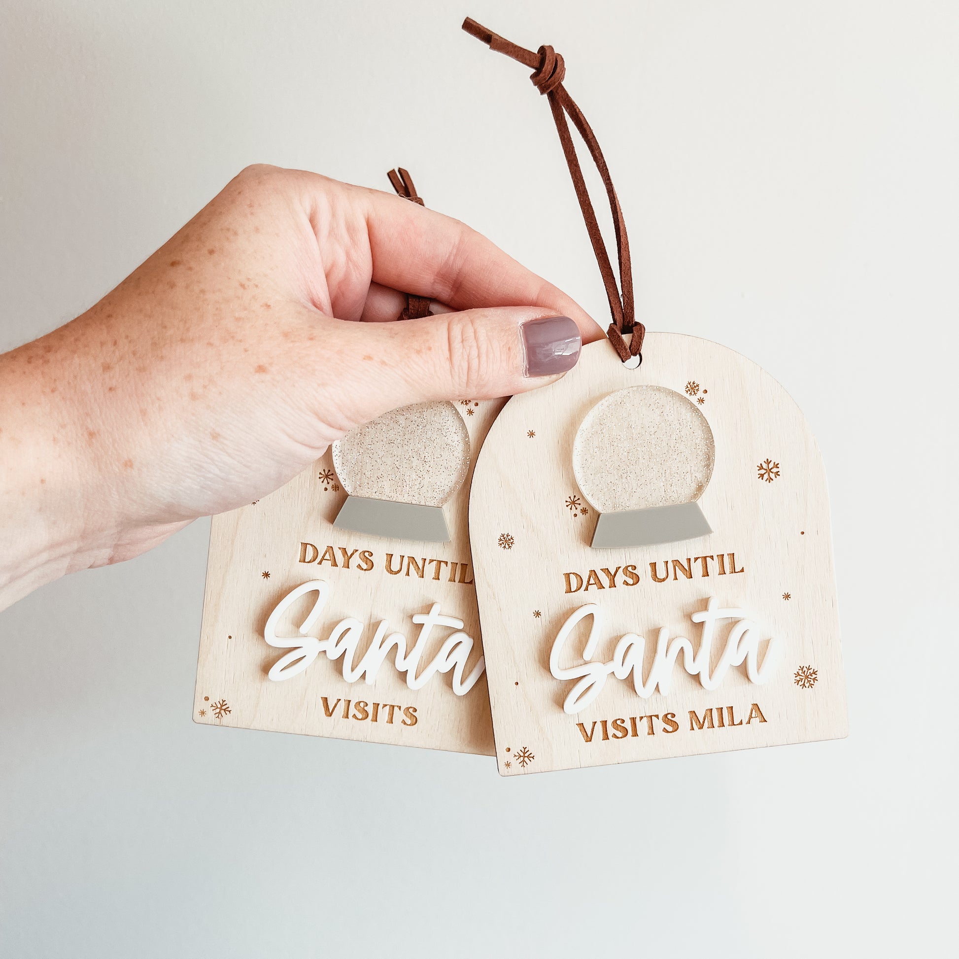 Engraved onto natural birch wood and features a 3D snow globe and lettering. The snow globe is dry-erase and works with any standard dry-erase marker (not included). Finished with a brown suede string and individually packaged