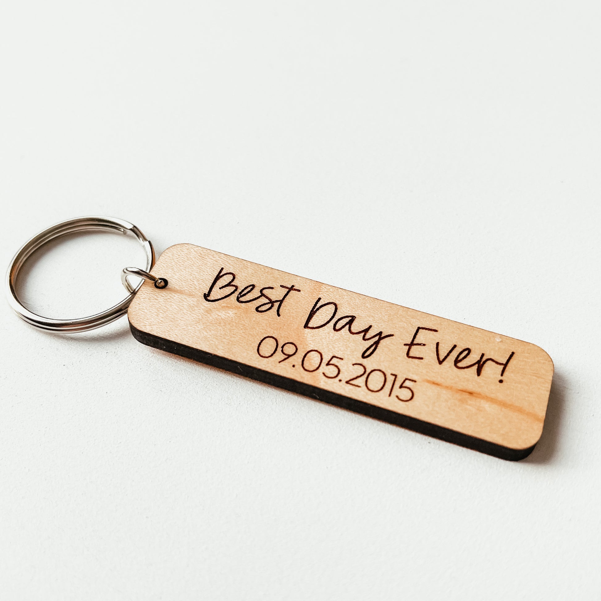 Our wooden keychains are cut from premium-grade, laminated maple and engraved with our studio laser.