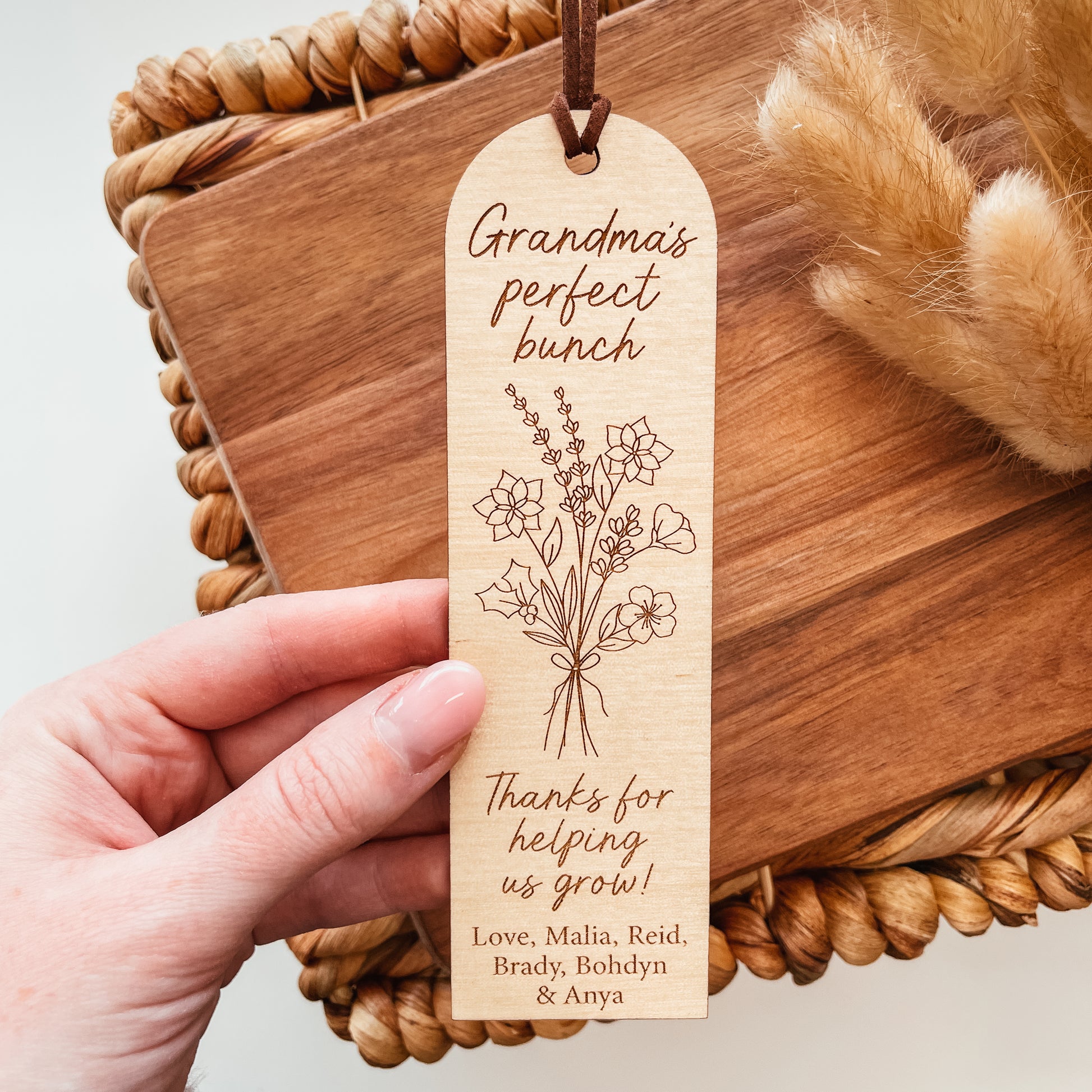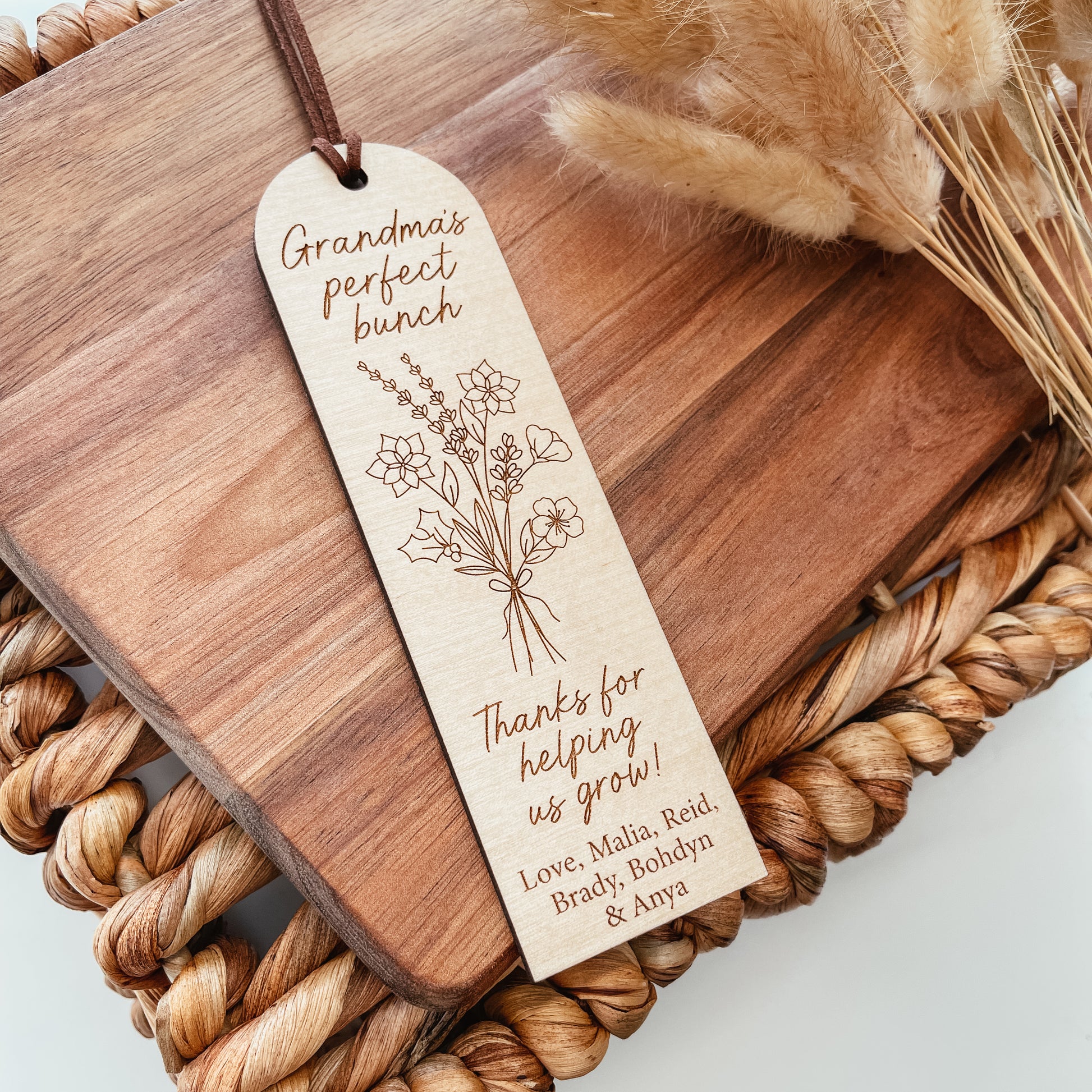 Each engraved bookmark is personalized with a bouquet of your family's birth flowers. Simply enter who it is for, your children's names, and their birth months, and we will do the rest!