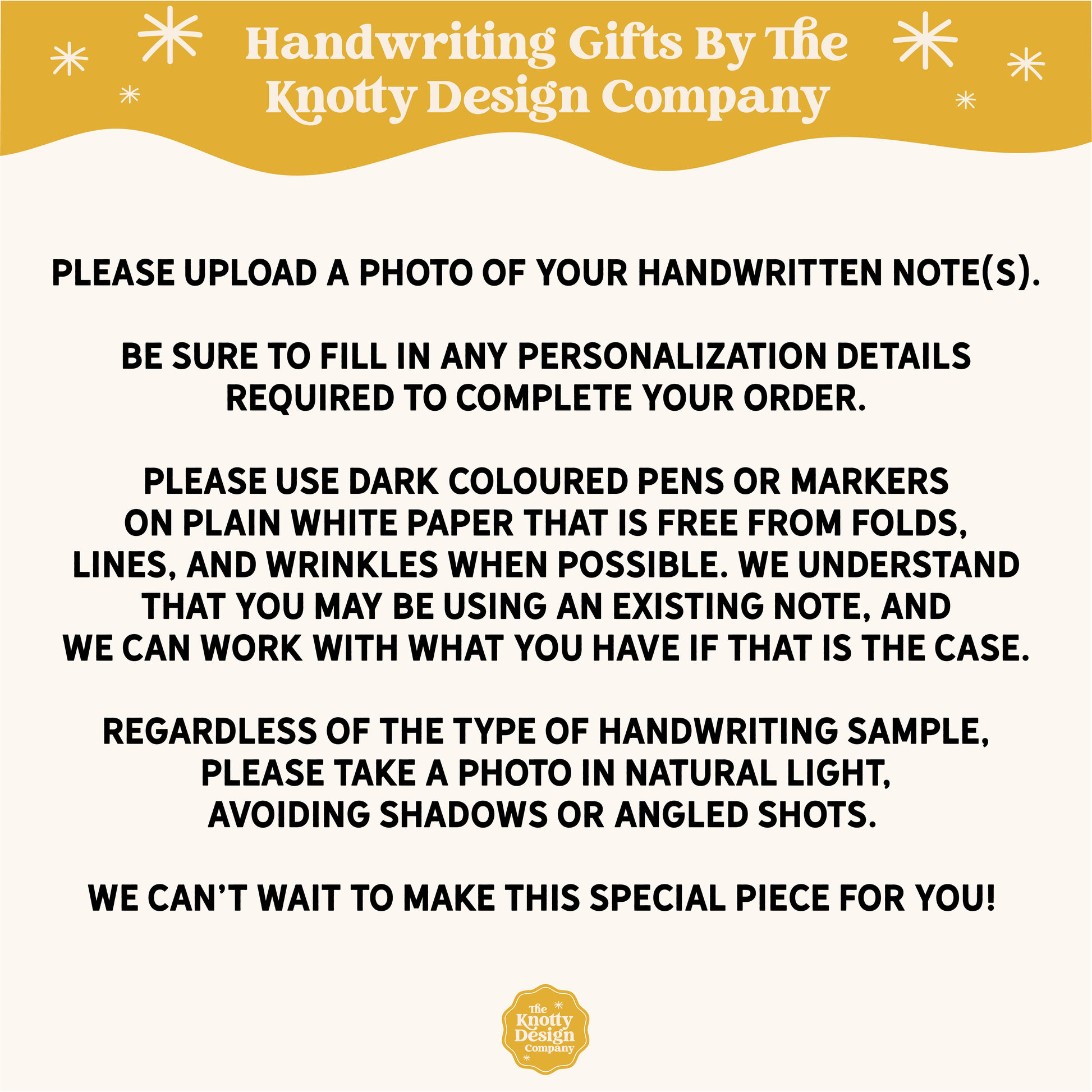 Handwriting submission (please submit your handwriting samples via Etsy message after ordering):