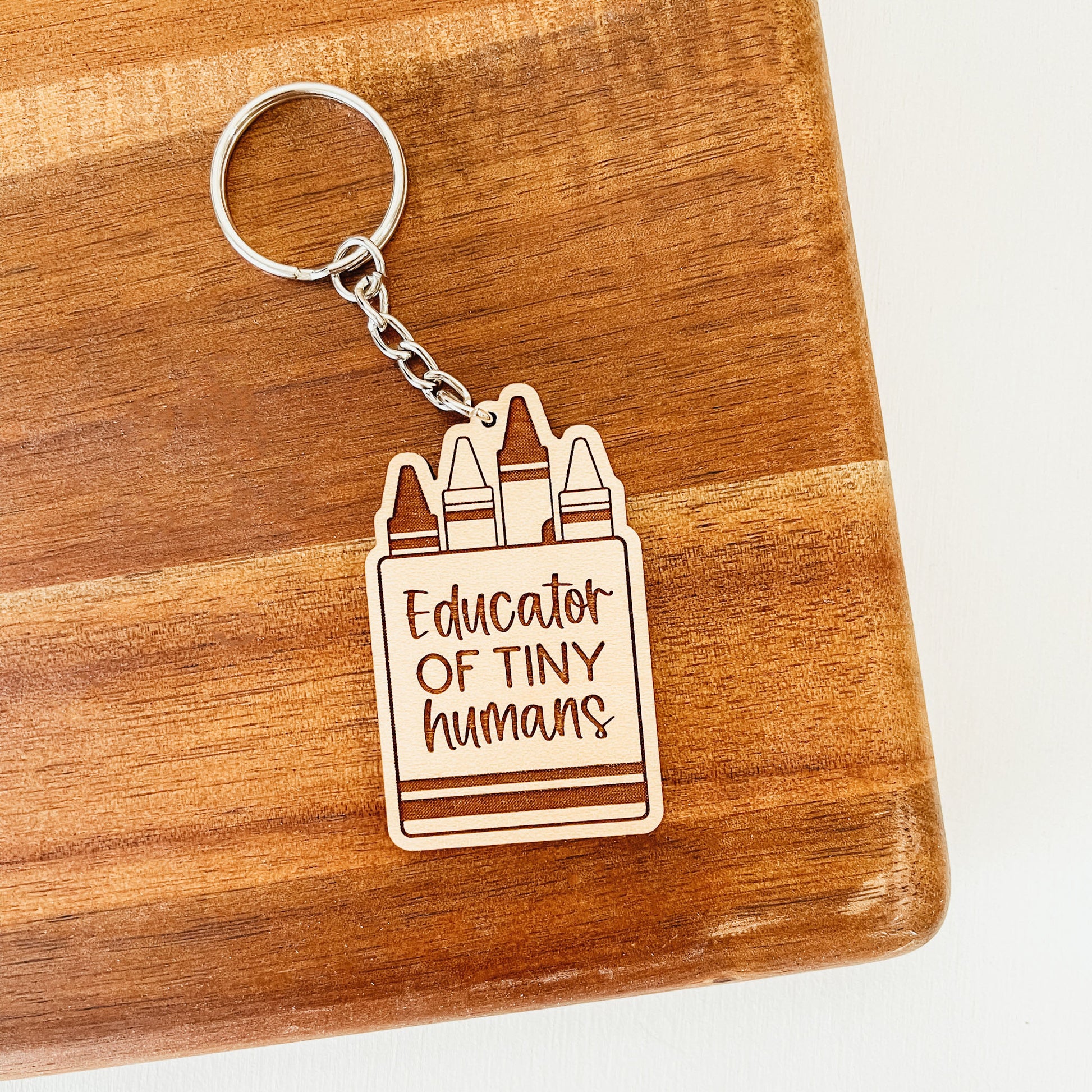 Our wooden keychains are cut from premium-grade, laminated maple and engraved with our studio laser.
