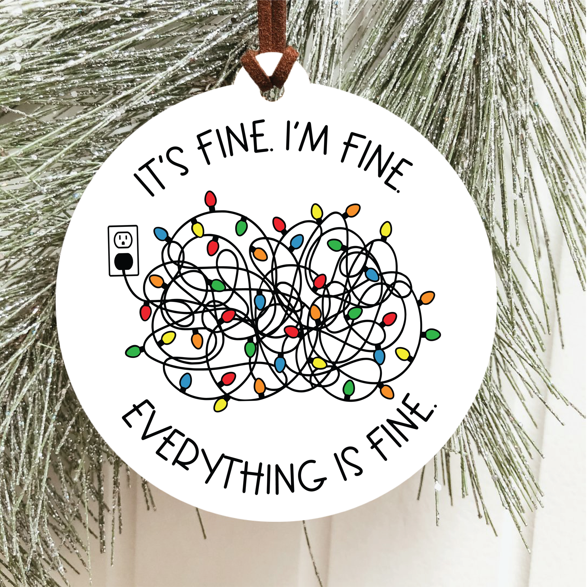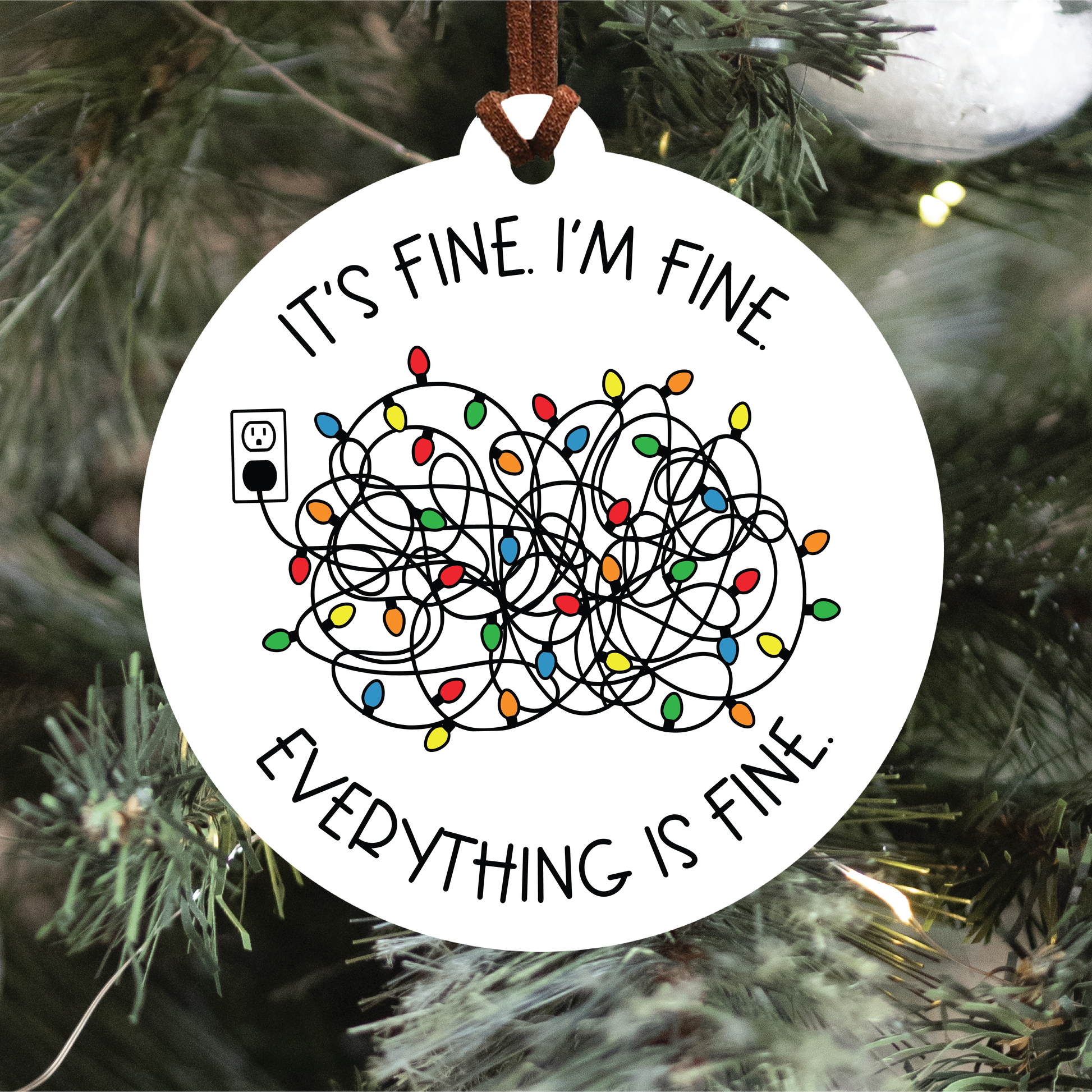 Each ornament is laser cut from 1/8" white acrylic and then printed with permanent ink. They are finished with a brown suede string for a modern look. The back of the ornament will be white.