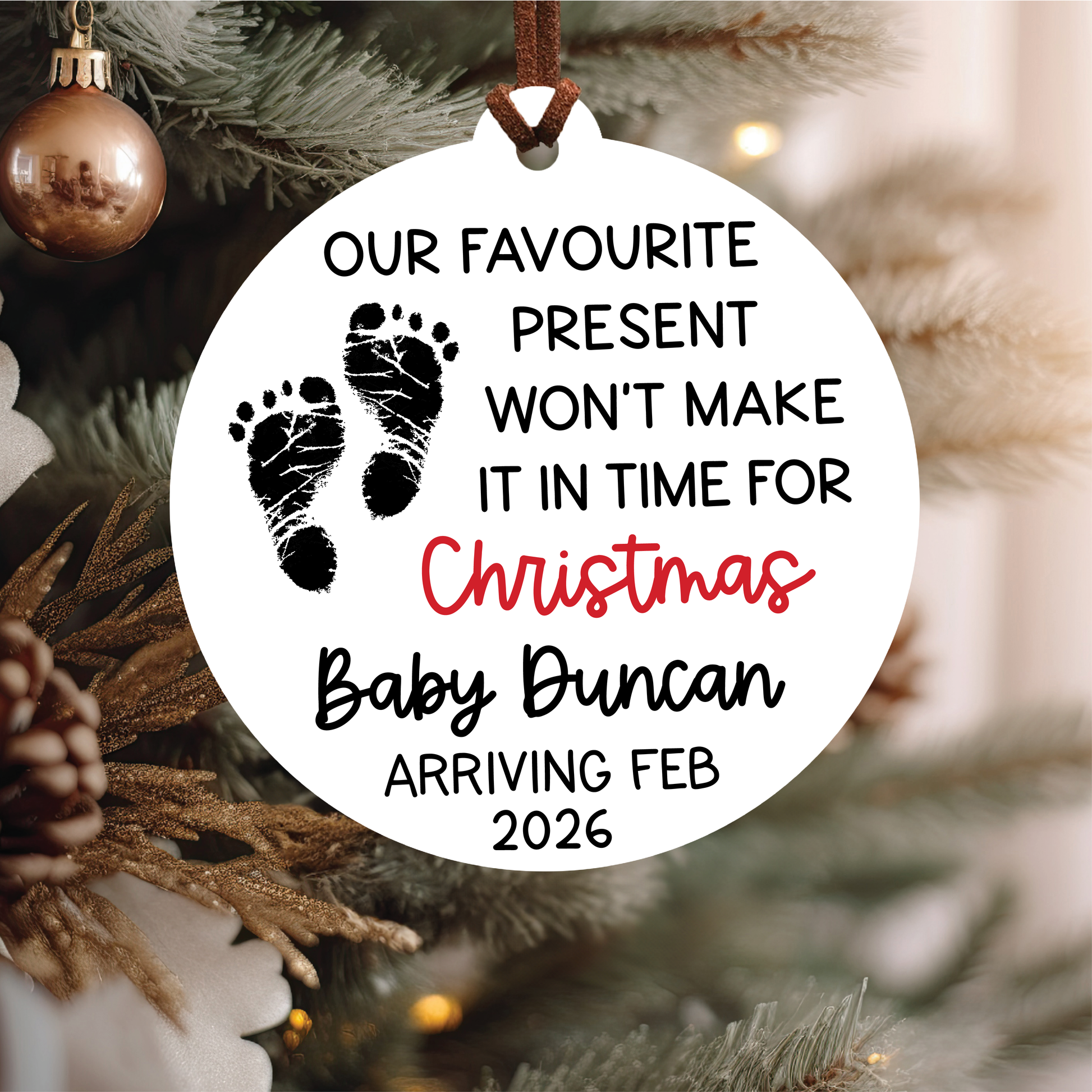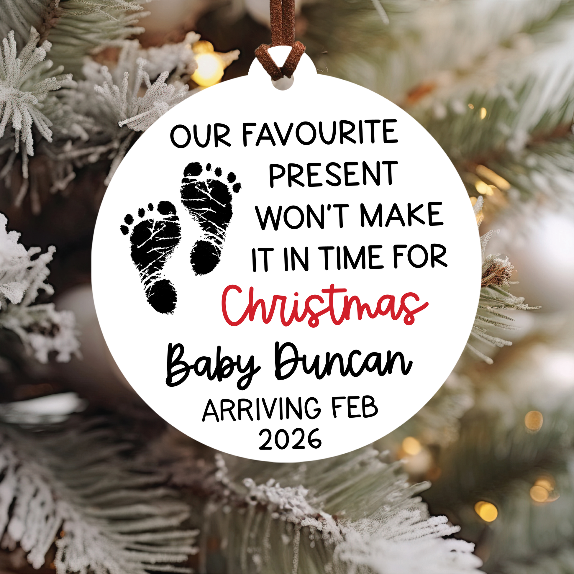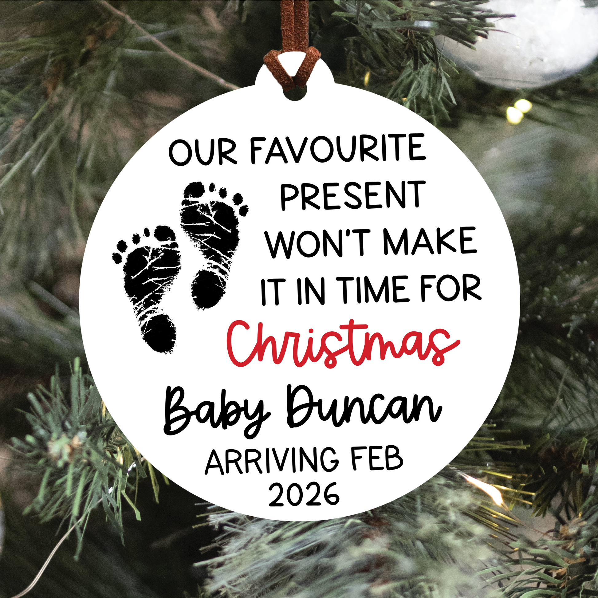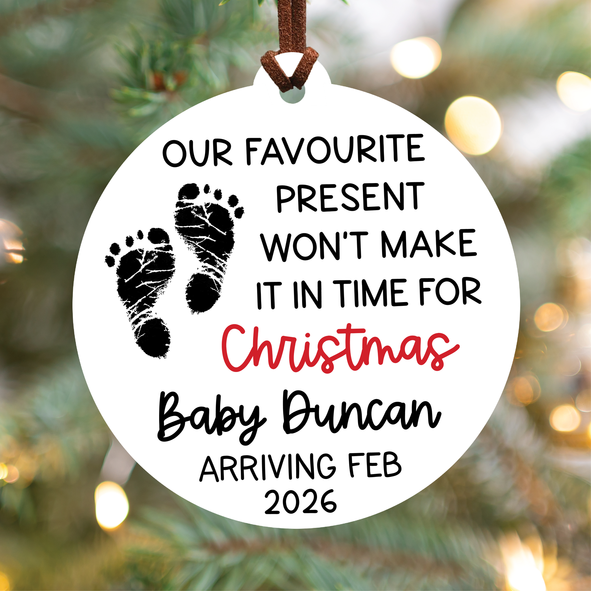 Each ornament is laser cut from 1/8" white acrylic and then printed with permanent ink. They are finished with a brown suede string for a modern look. The back of the ornament will be white.