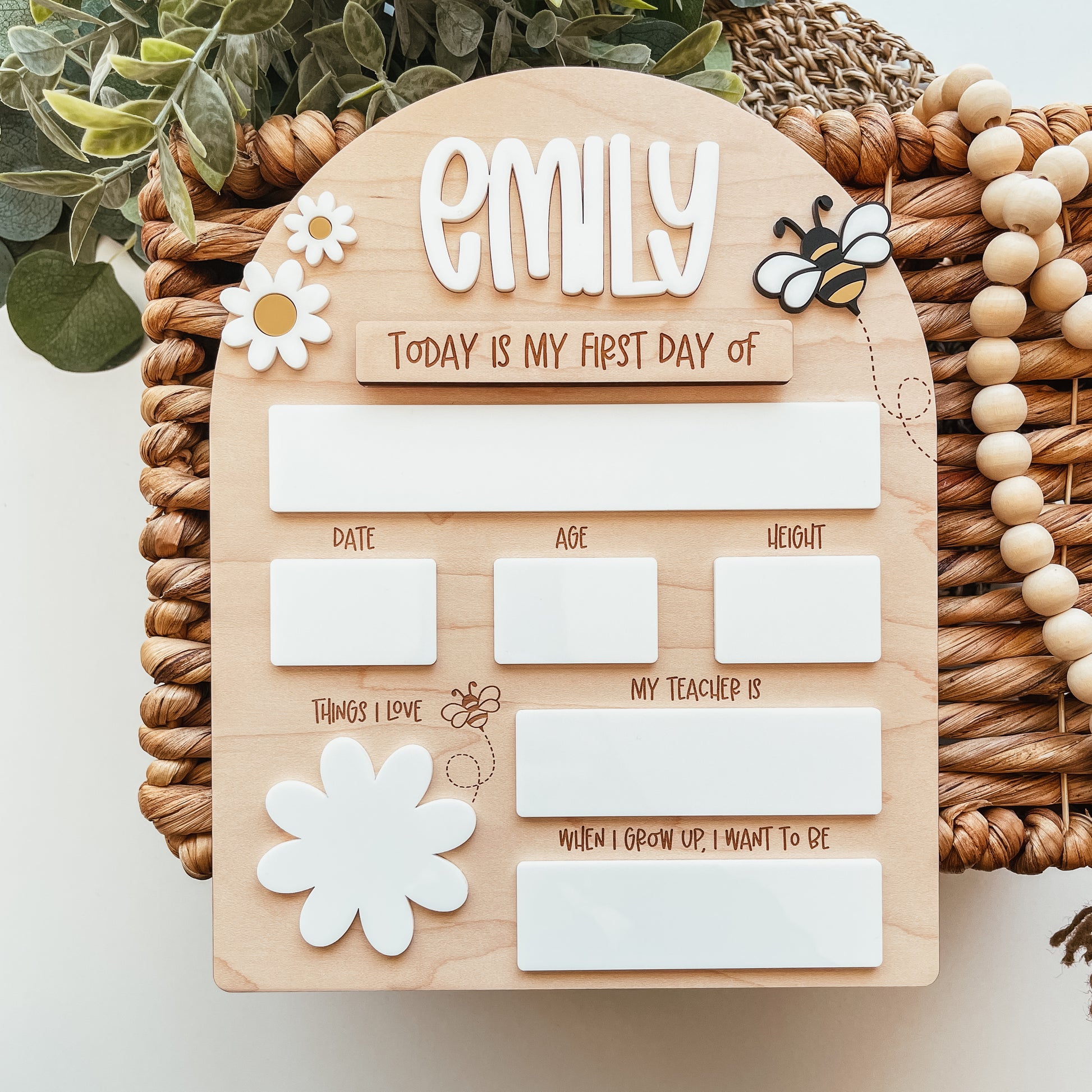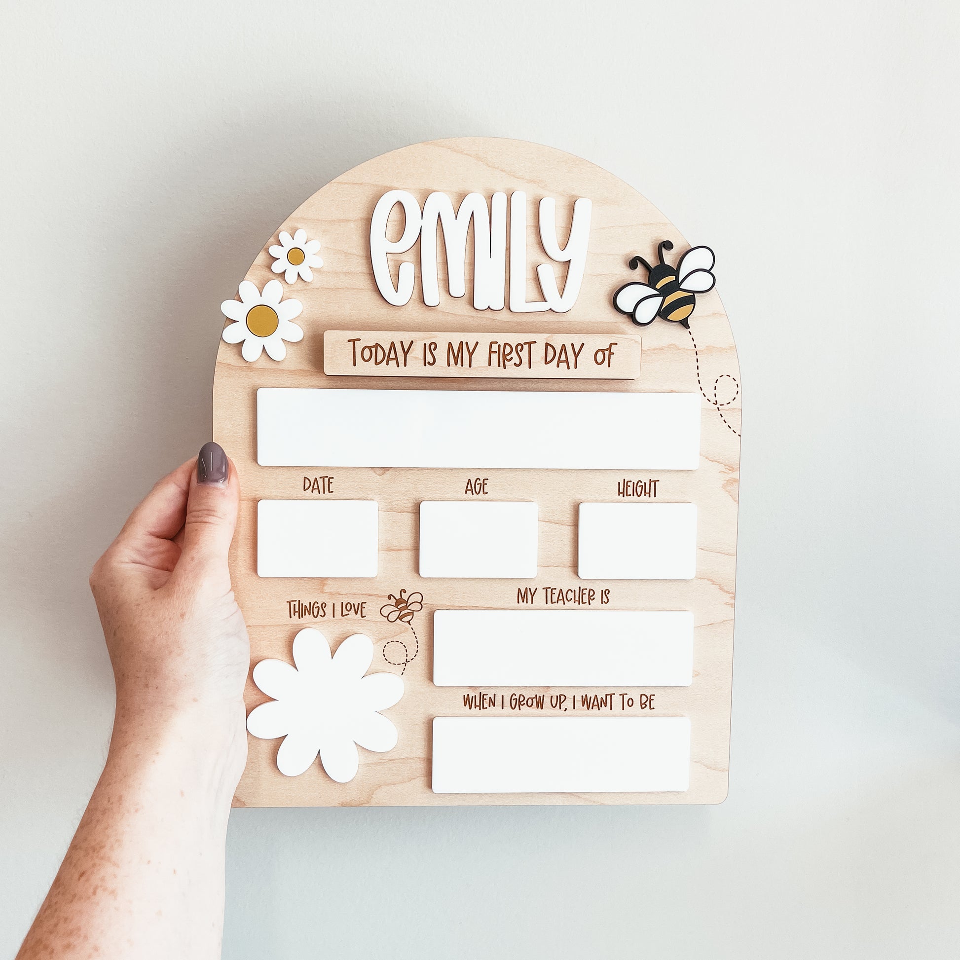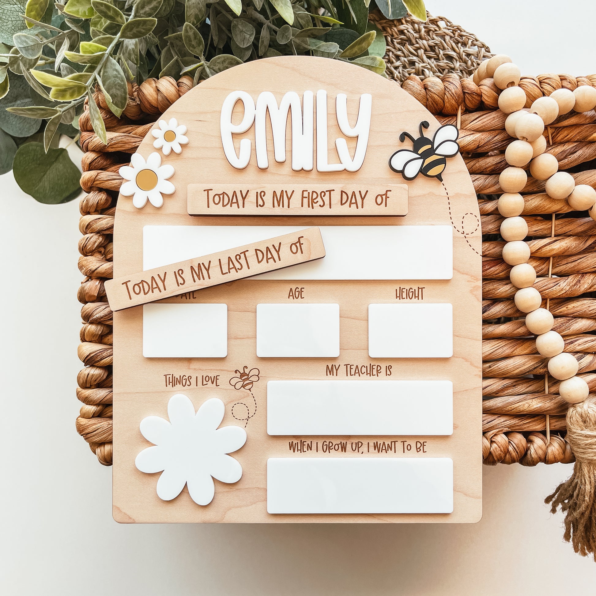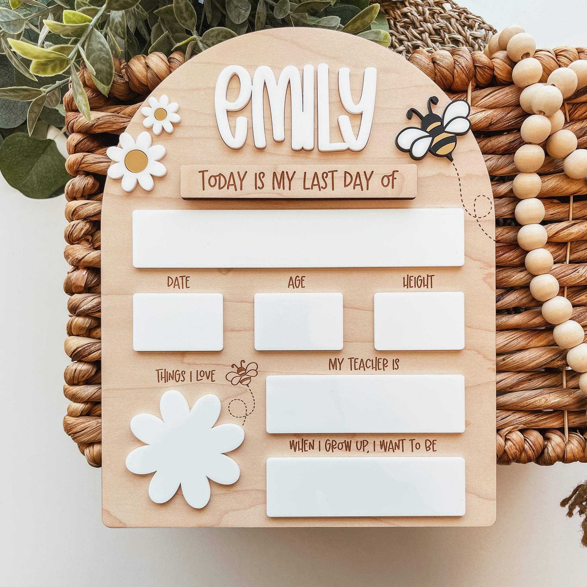 This reusable first and last day of school sign is perfect for taking those milestone photos during back to school season. They are easy to write on with any dry erase marker (marker not included). Each board is personalized with your choice of name, making the perfect keepsake to use for years to come.