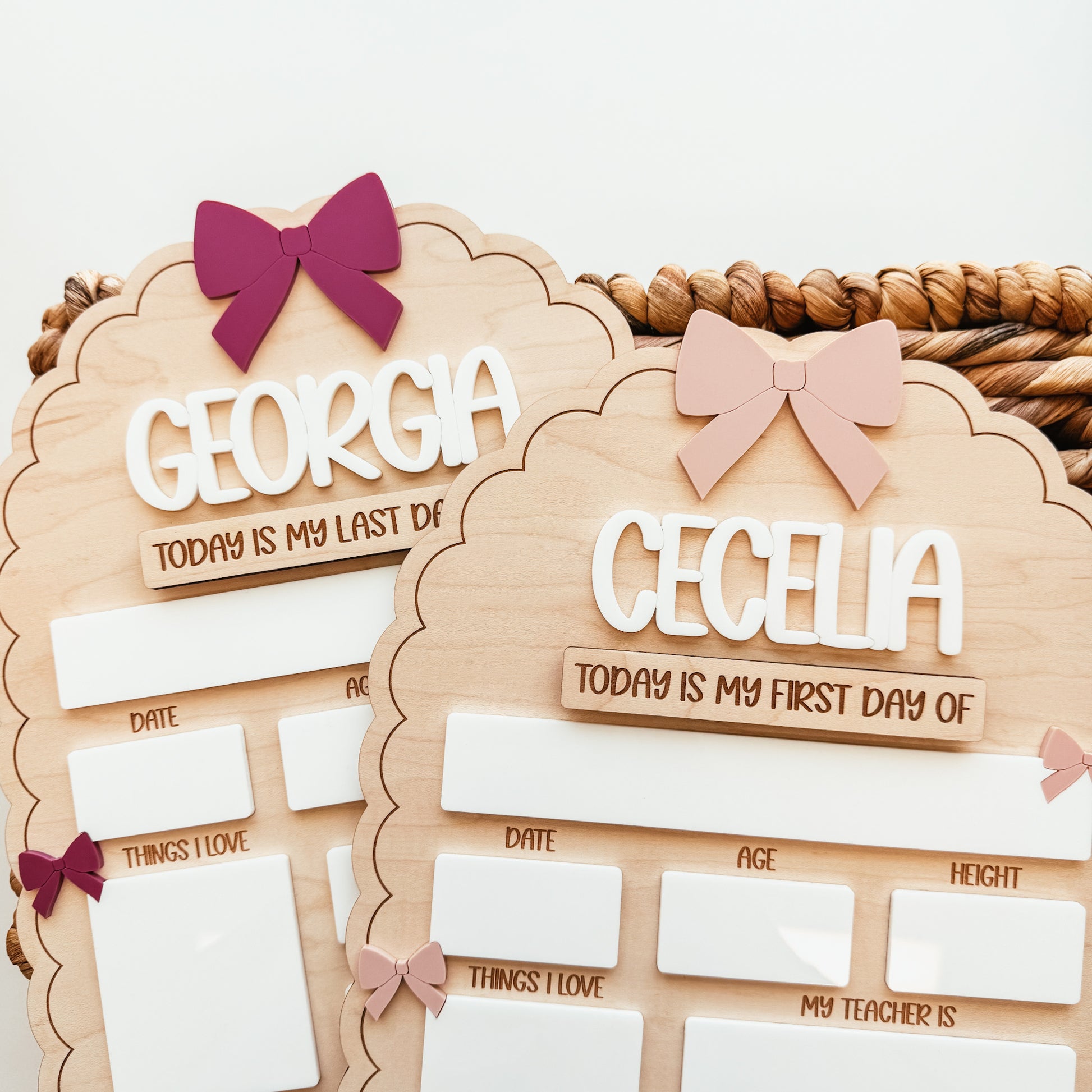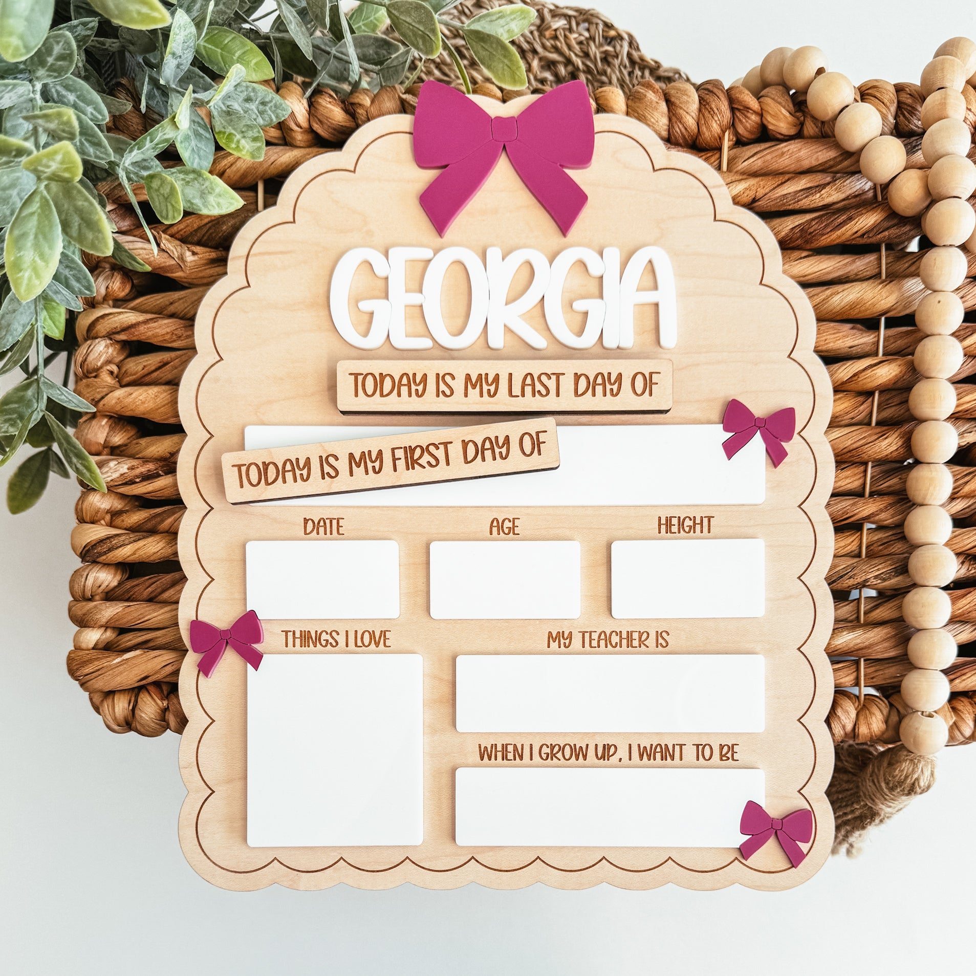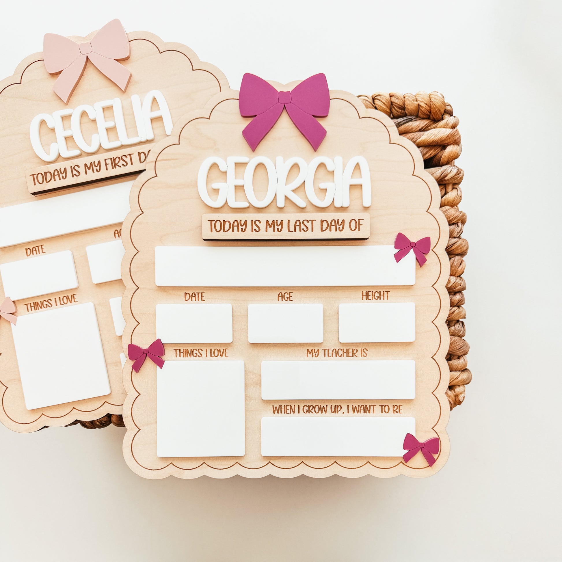 This reusable first and last day of school sign is perfect for taking those milestone photos during back to school season. They are easy to write on with any dry erase marker (marker not included). Each board is personalized with your choice of name, making the perfect keepsake to use for years to come.