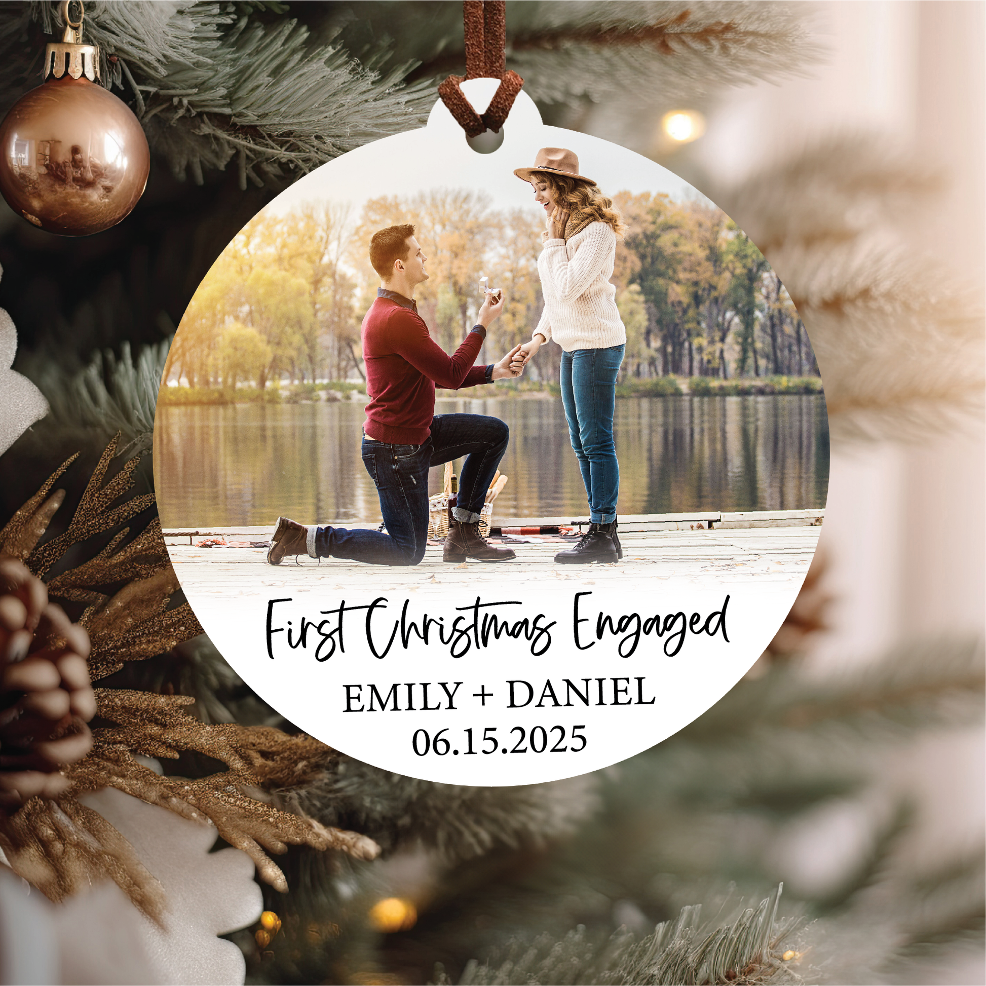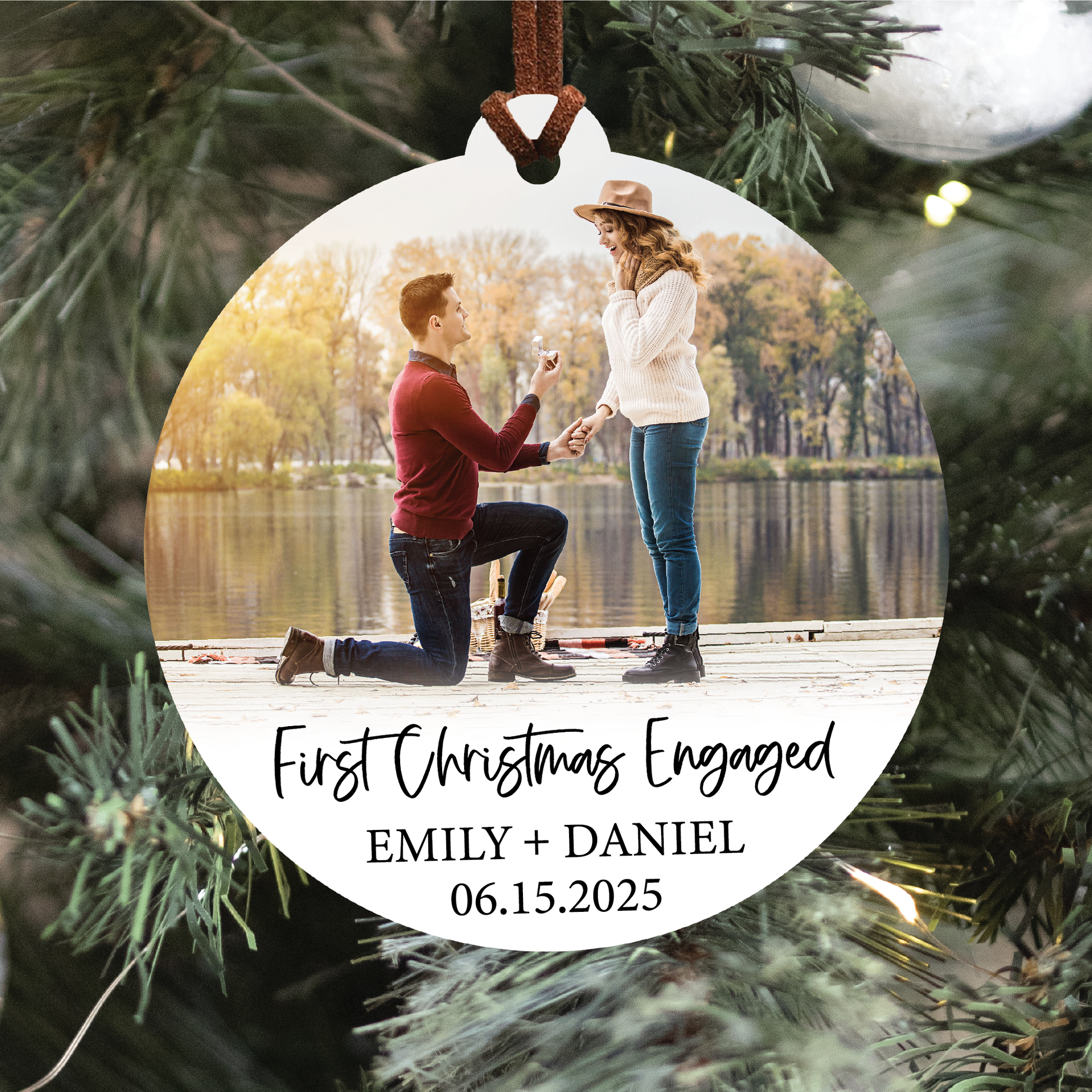 Each ornament is laser cut from 1/8" white acrylic and then printed with permanent ink. They are finished with a brown suede string for a modern look. One side will be printed with your photo and text; the other side will be white.
