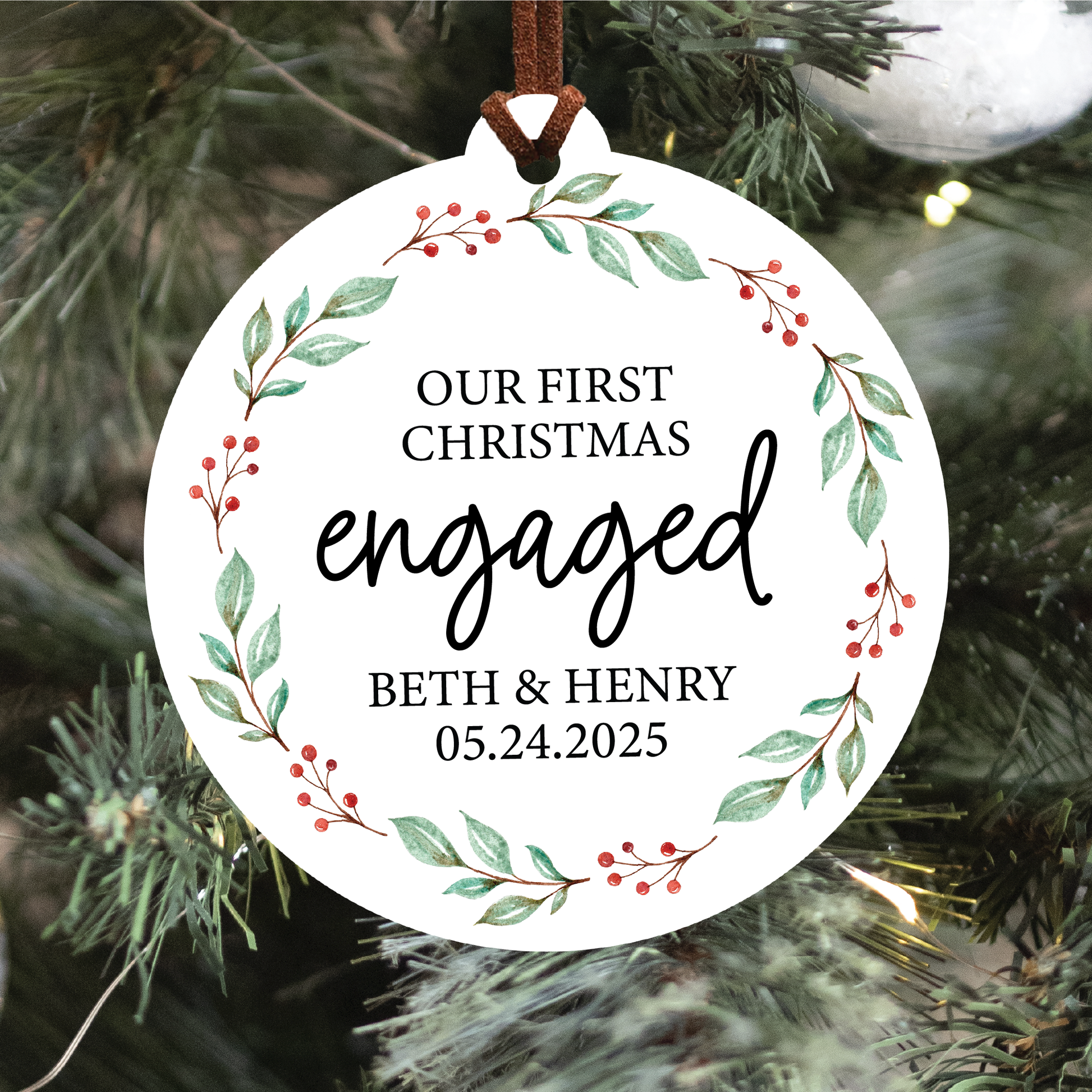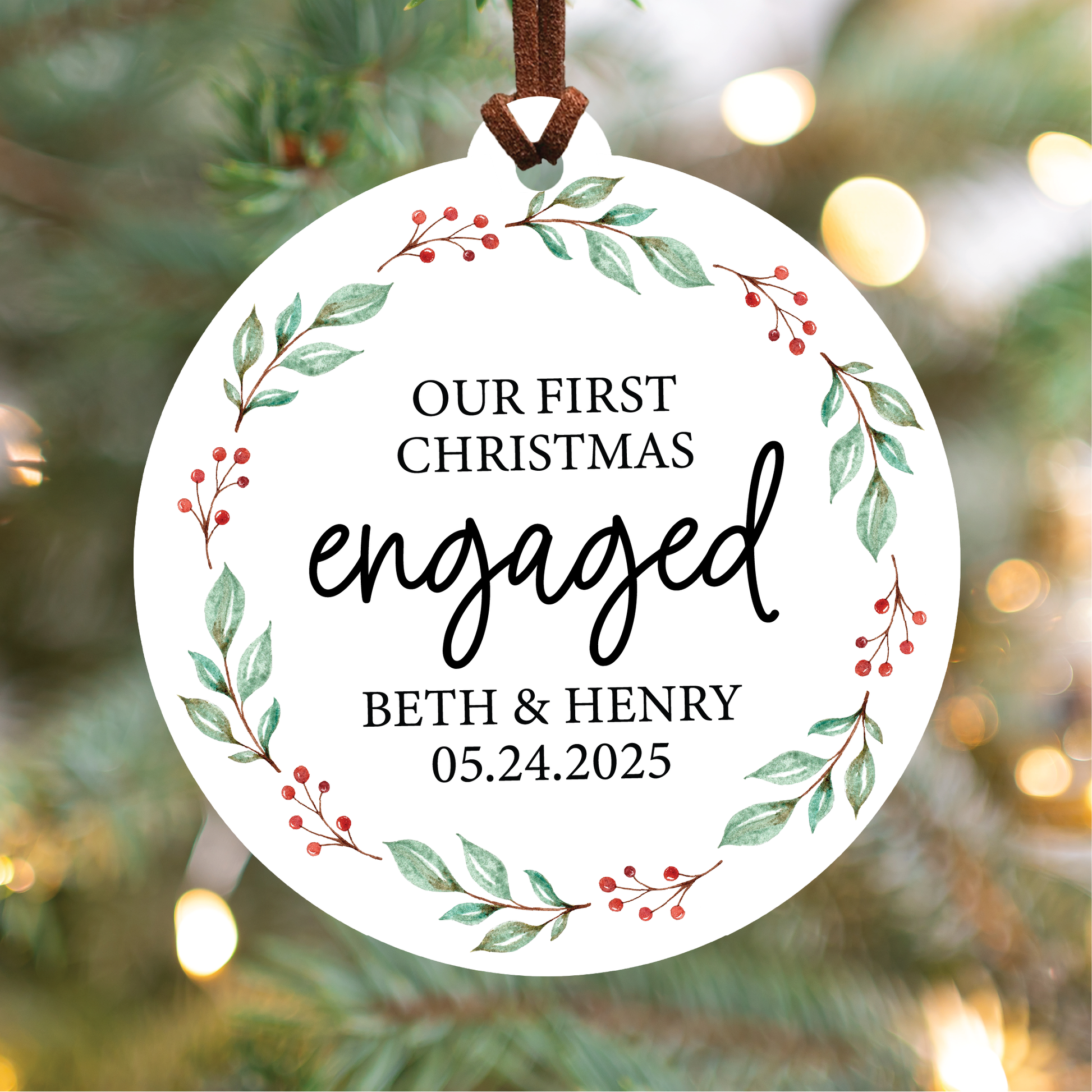 Each ornament is laser cut from 1/8" white acrylic and then printed with permanent ink. They are finished with a brown suede string for a modern look. One side will be printed with your photo and text; the other side will be white.