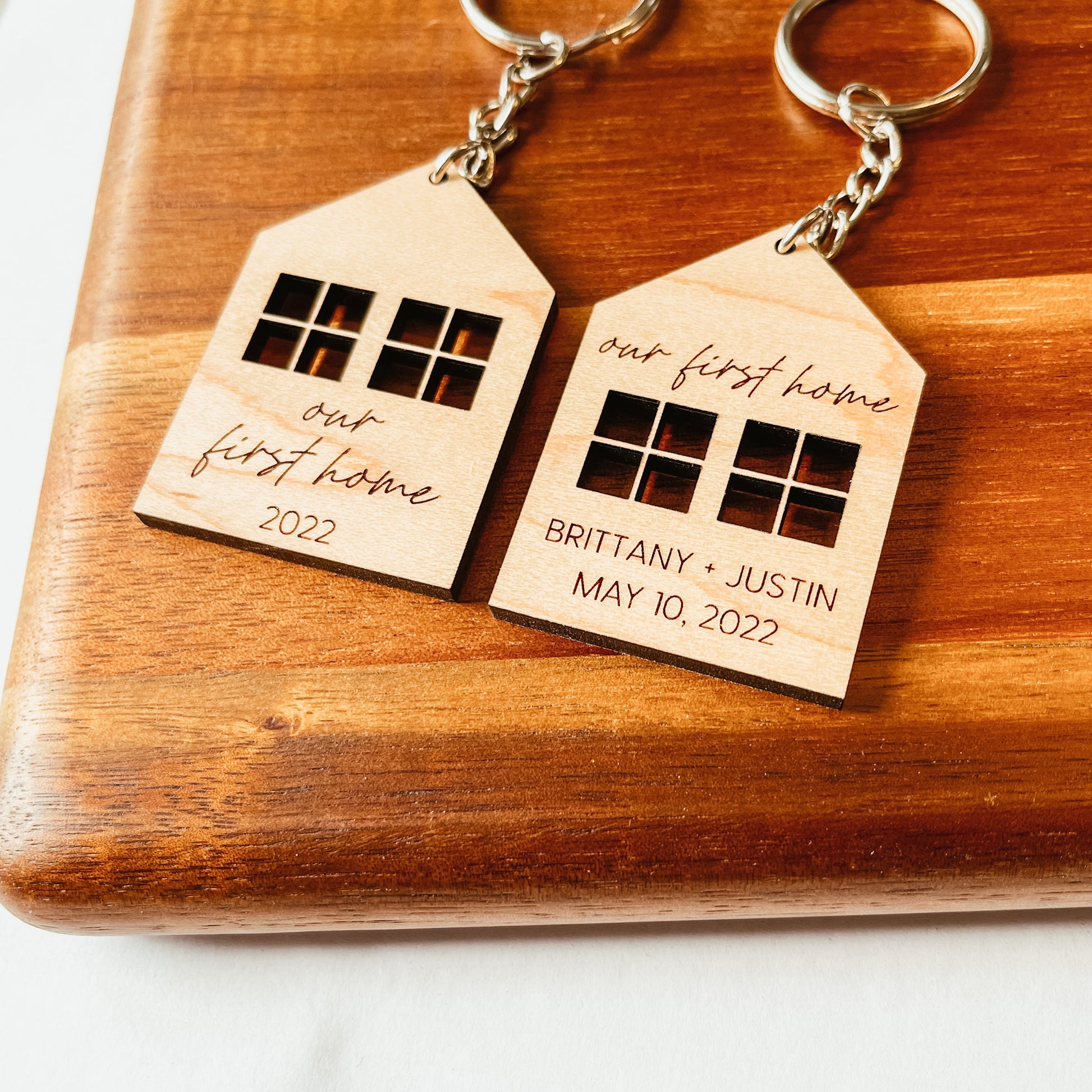 Our wooden keychains are cut from premium laminated maple and engraved.