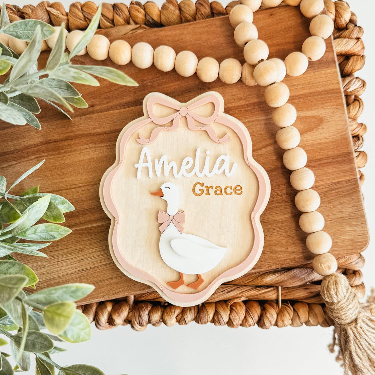 Goose Bow Frame Baby Name Announcement Sign