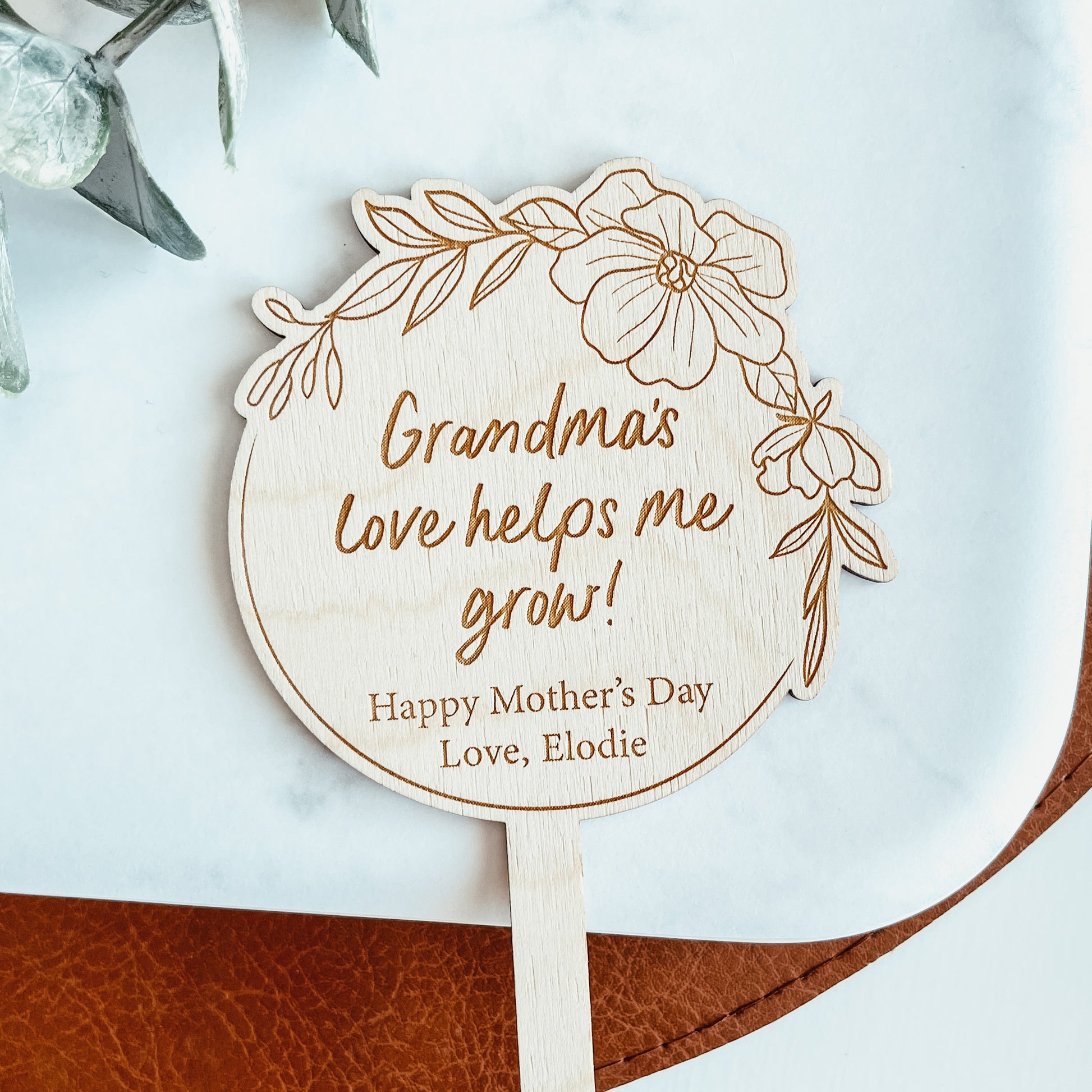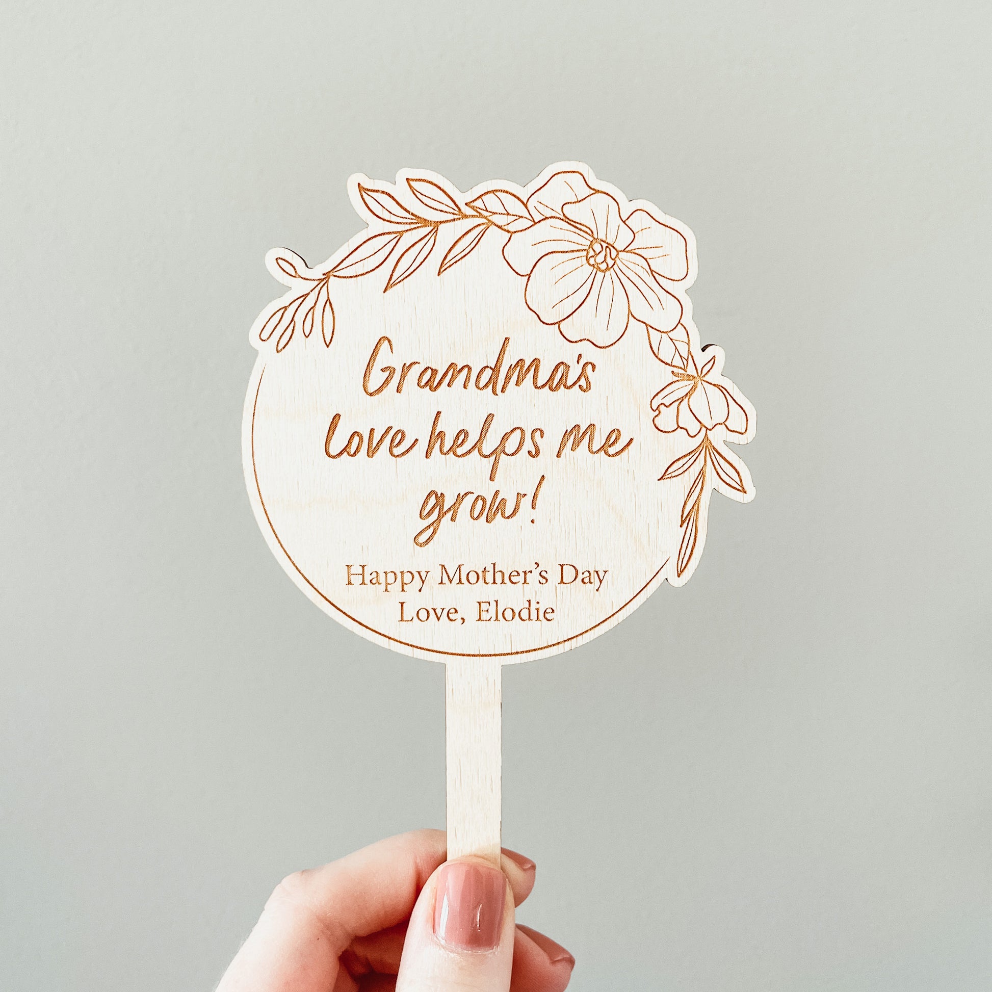 Please note in the text box if you would like the top line to say something other than grandma (example: Mom's, Nana's, etc.)