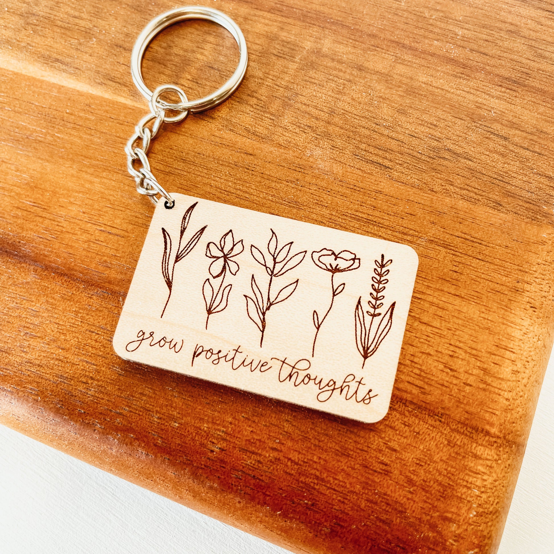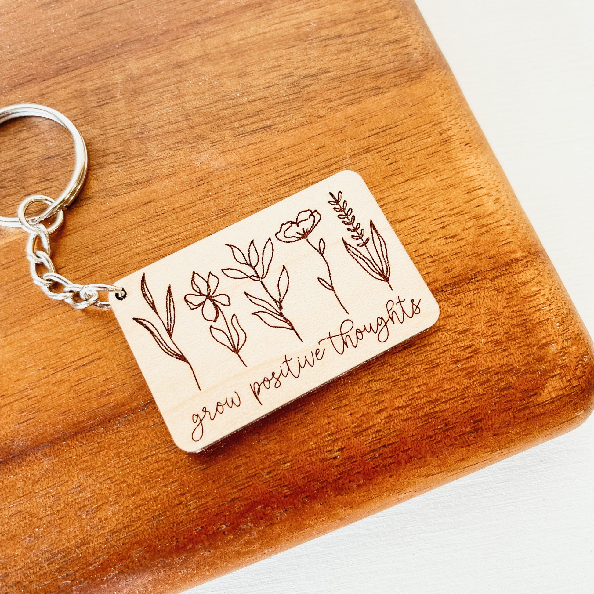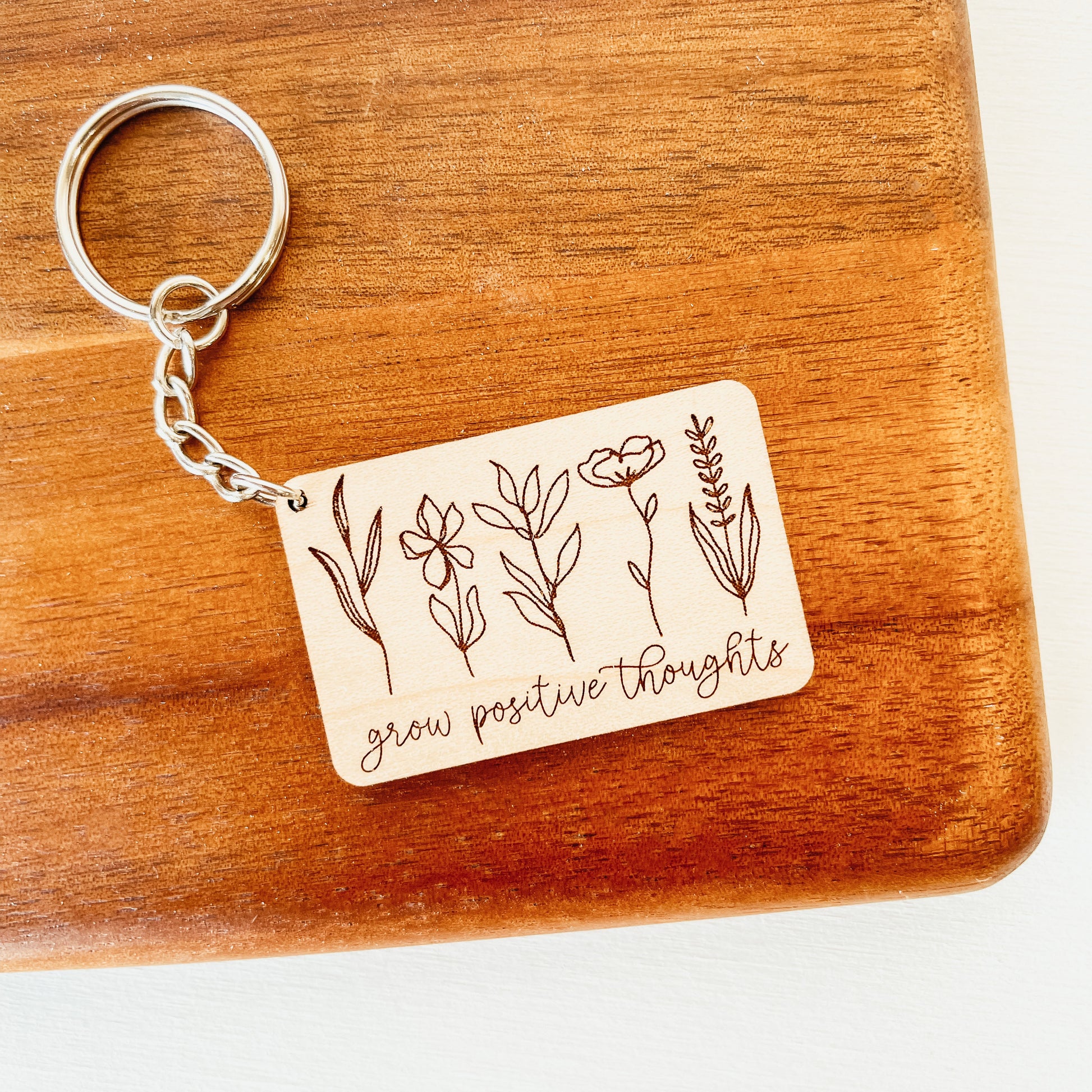 Our wooden keychains are cut from premium-grade, laminated maple and engraved with our studio laser.