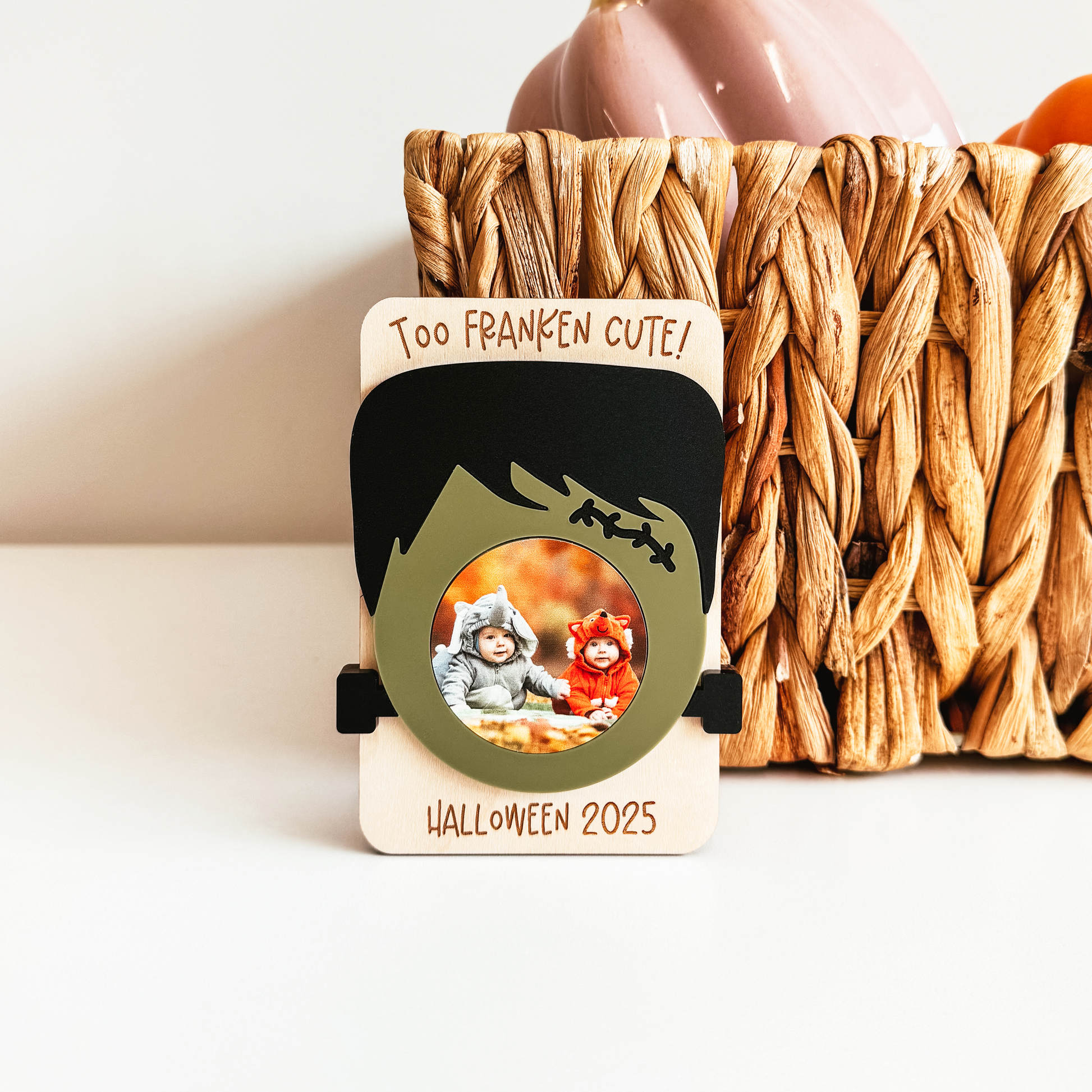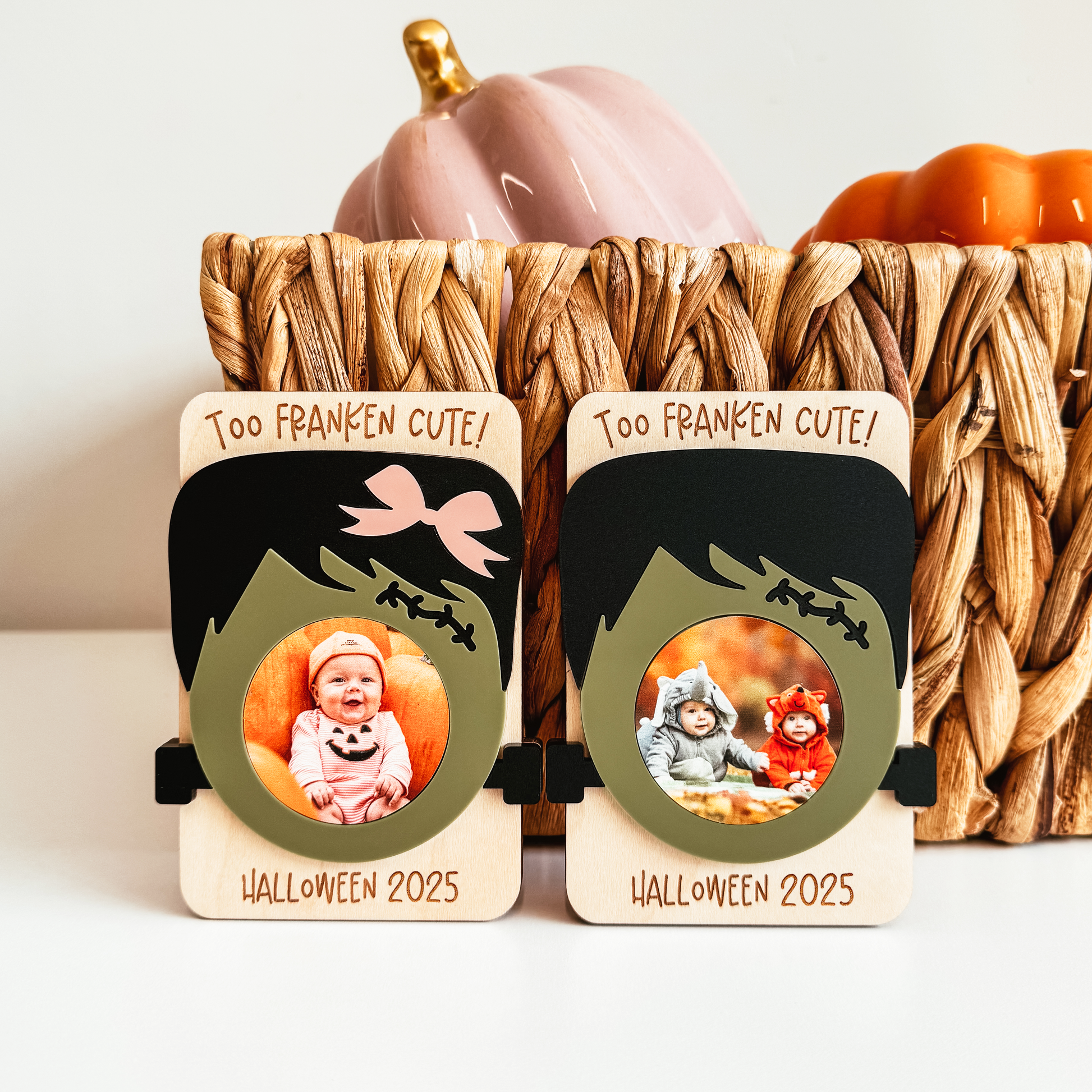 Add a touch of spooky fun to your home, office, or fridge with our Halloween photo magnets! This style features a Frankenstein design. Available with a bow for a spooky-cute look, or without a bow for a classic monster look.
