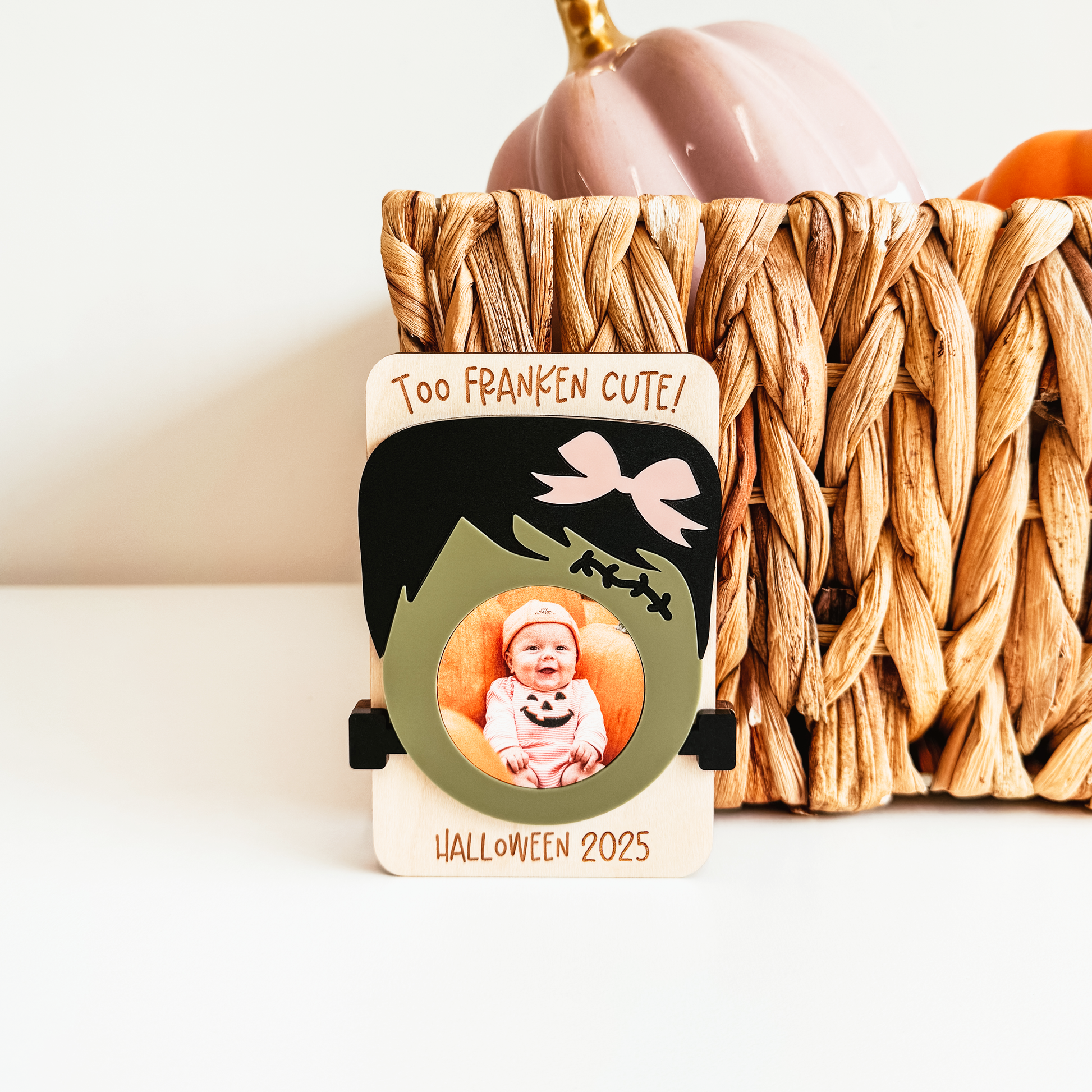 - Frankenstein design (choose with blush bow or without bow)