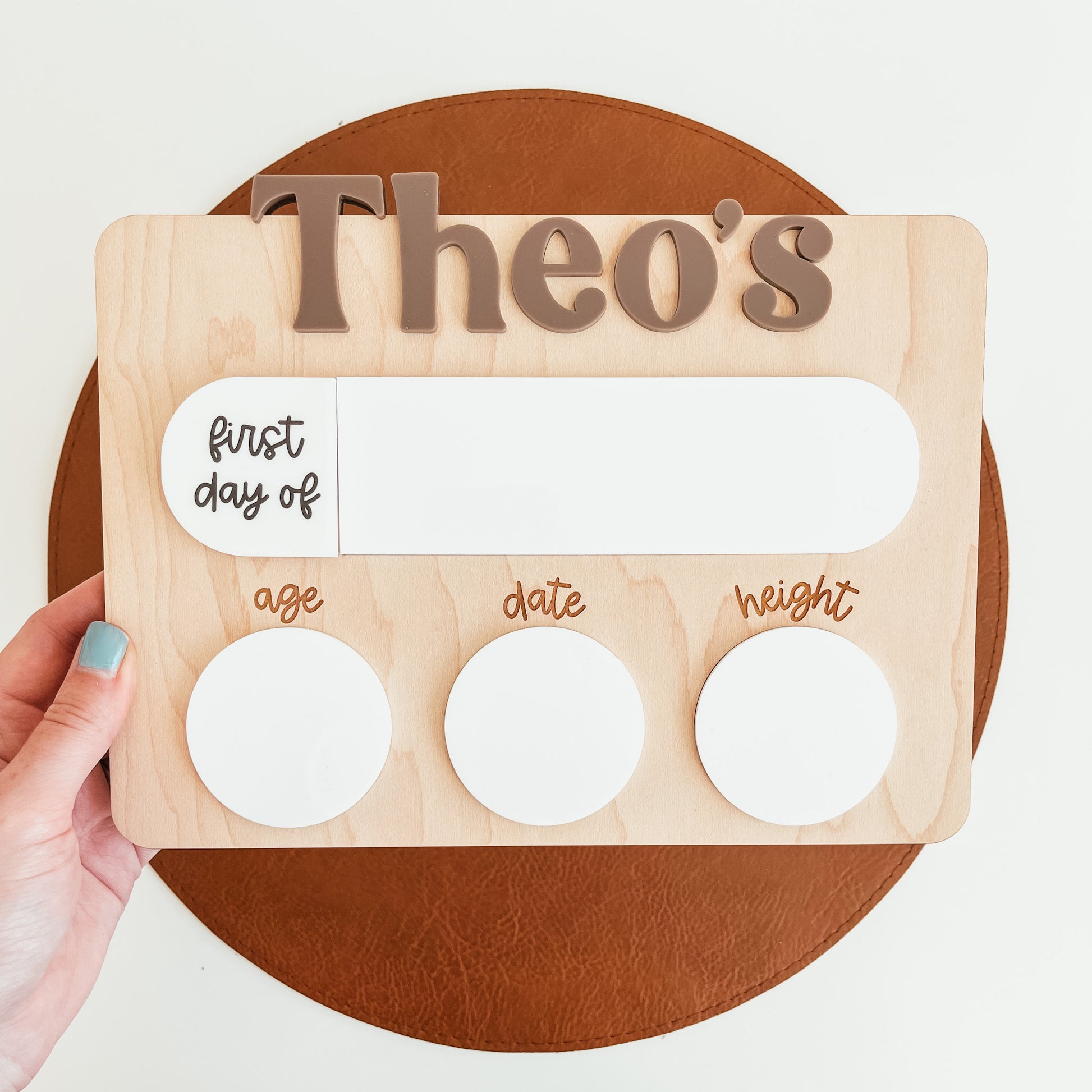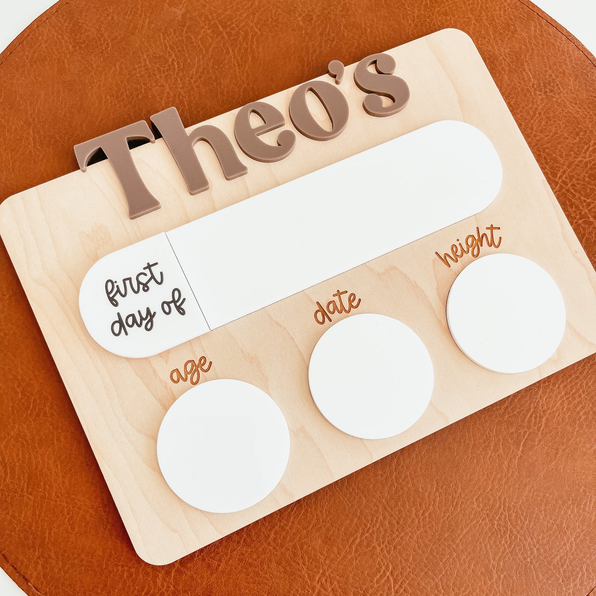 Your purchase includes interchangeable pieces for both first and last day of school.
