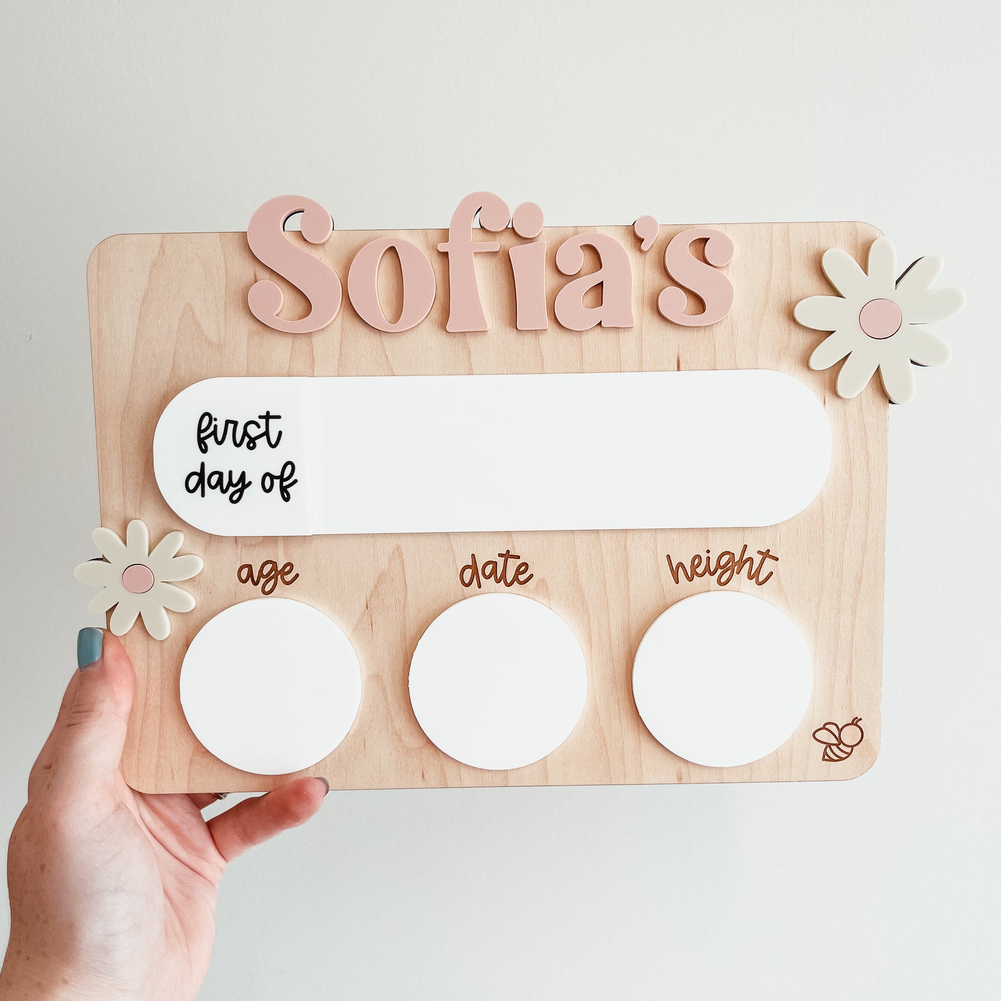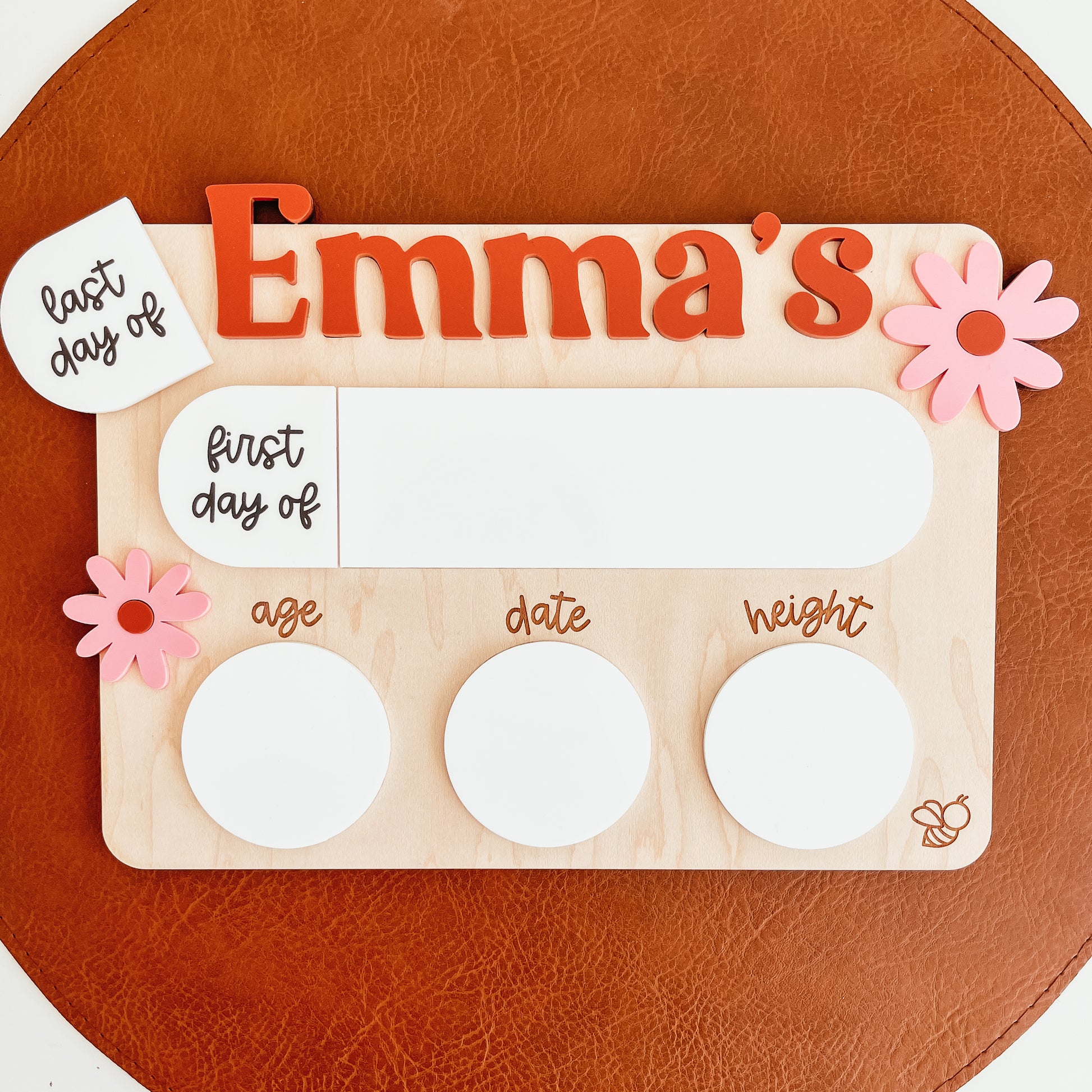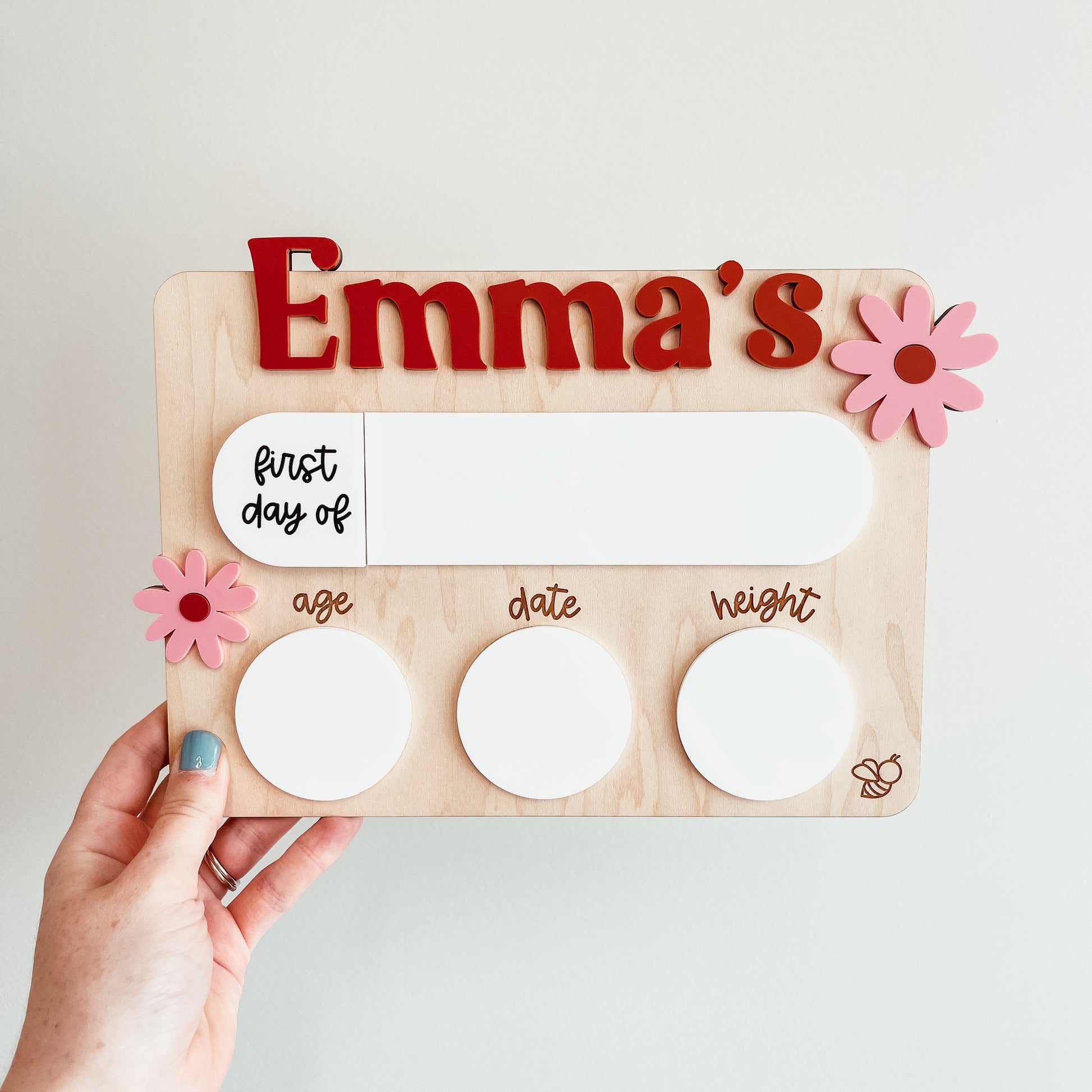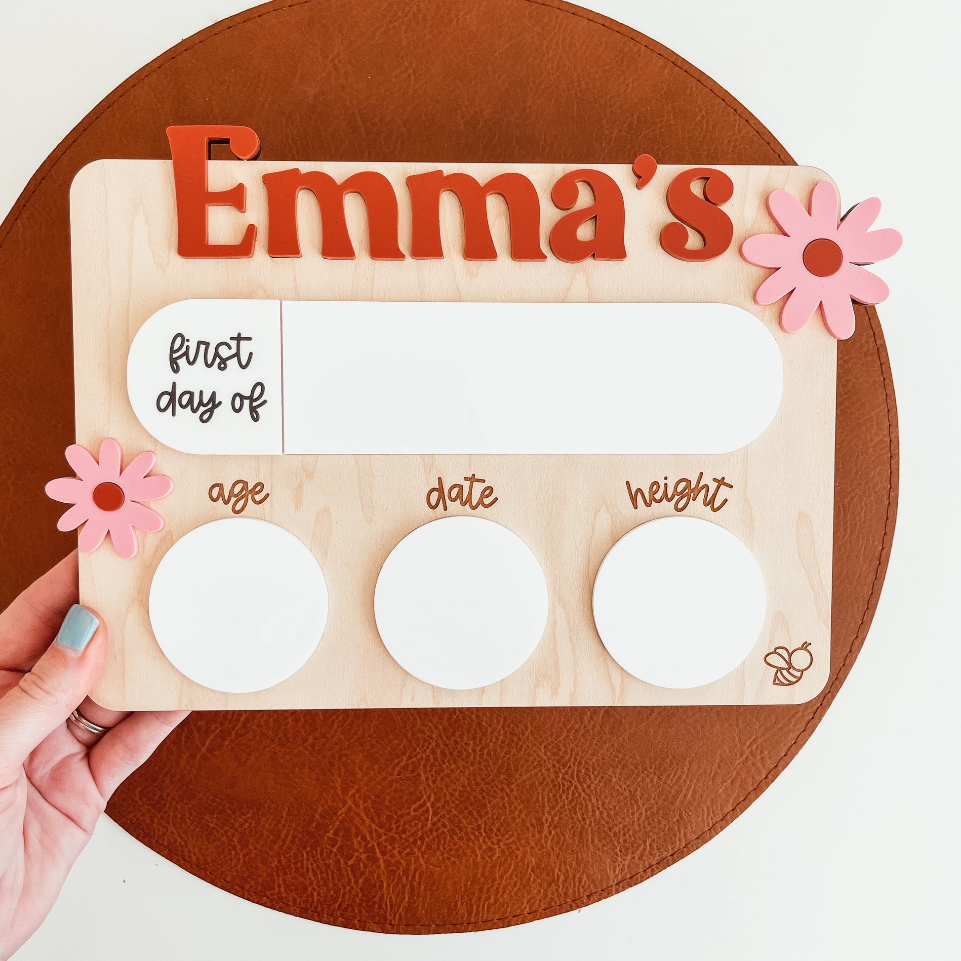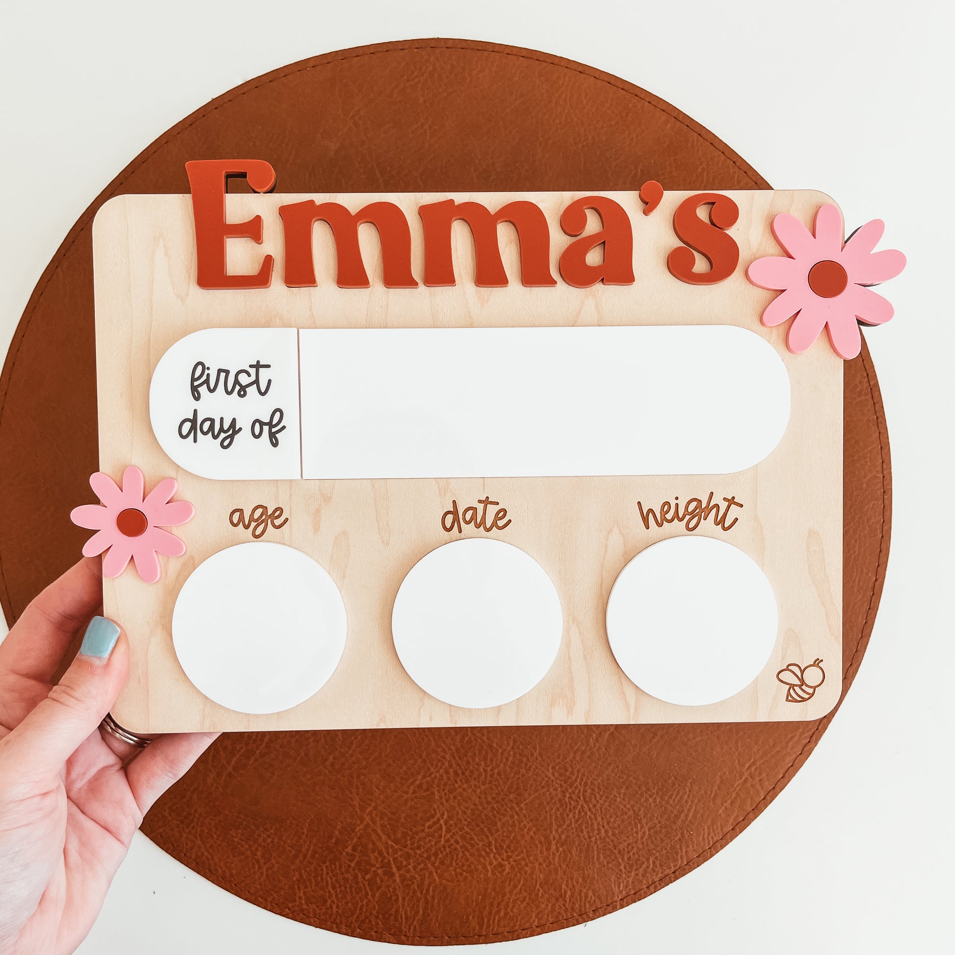 Your purchase includes interchangeable pieces for both first and last day of school.