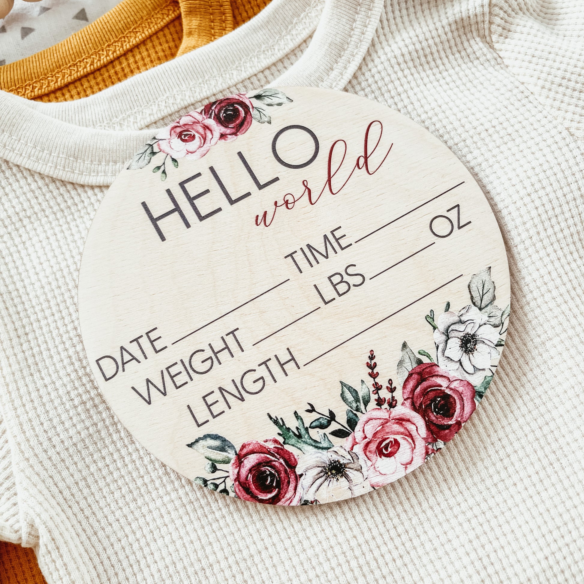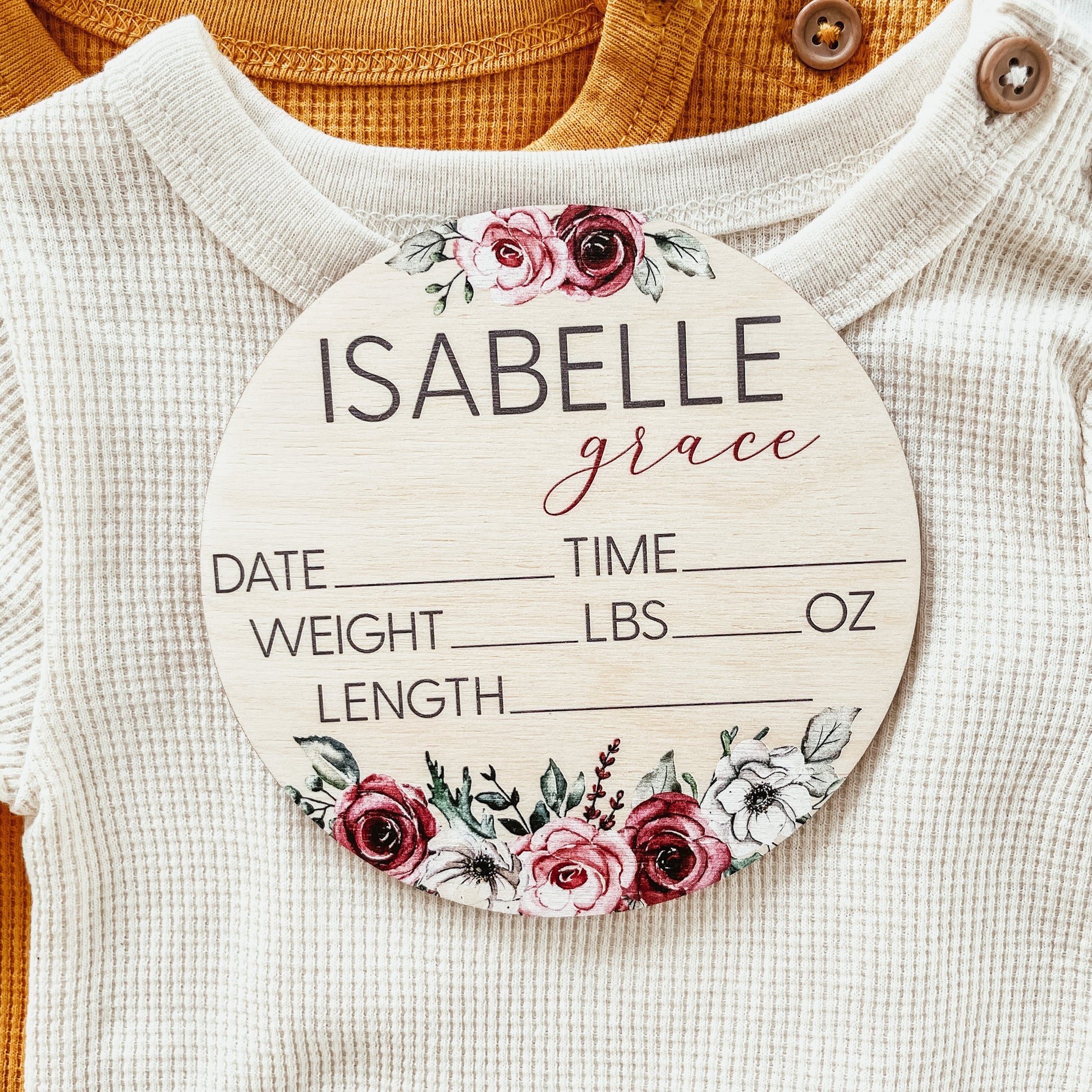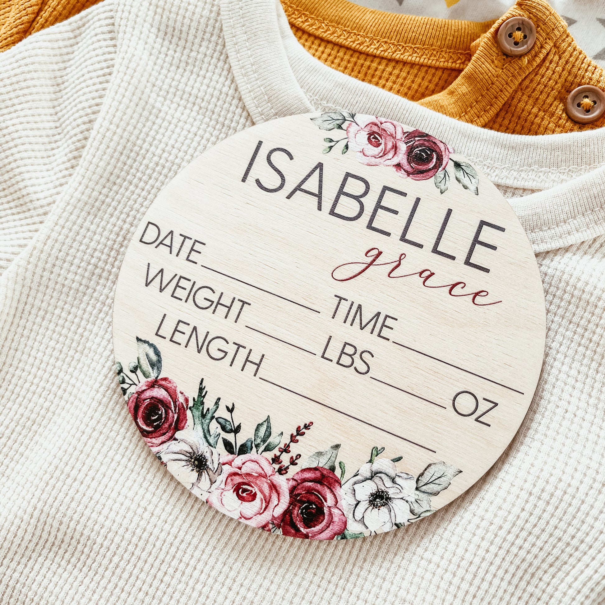 Baby Birth Announcement Sign - Wooden Pink Floral