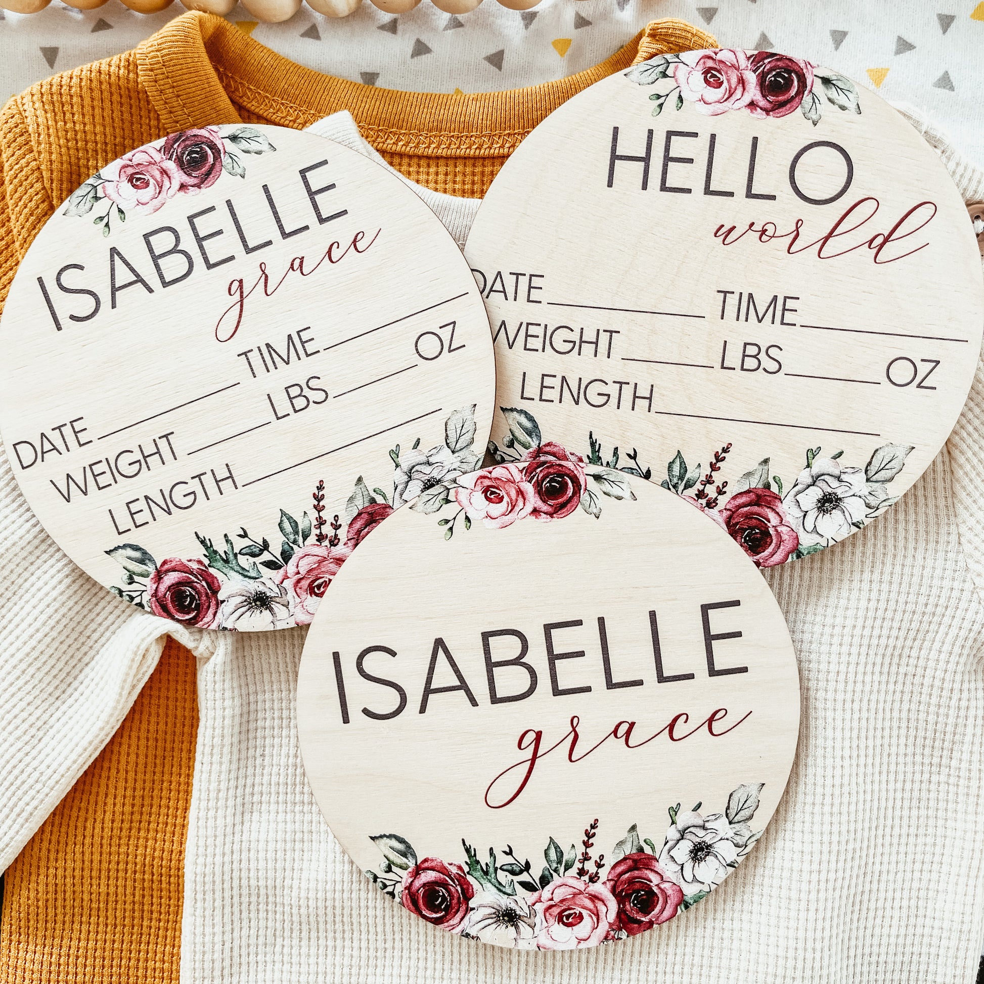 Our wooden birth announcement signs are a great way to announce your baby’s name and add to your newborn photoshoot.
