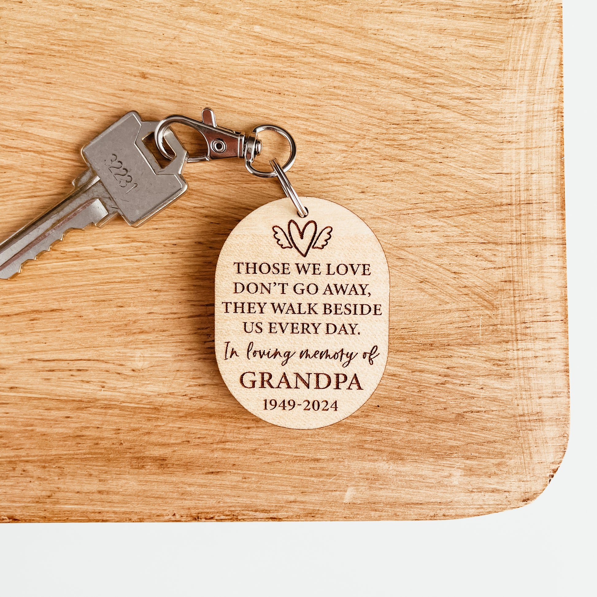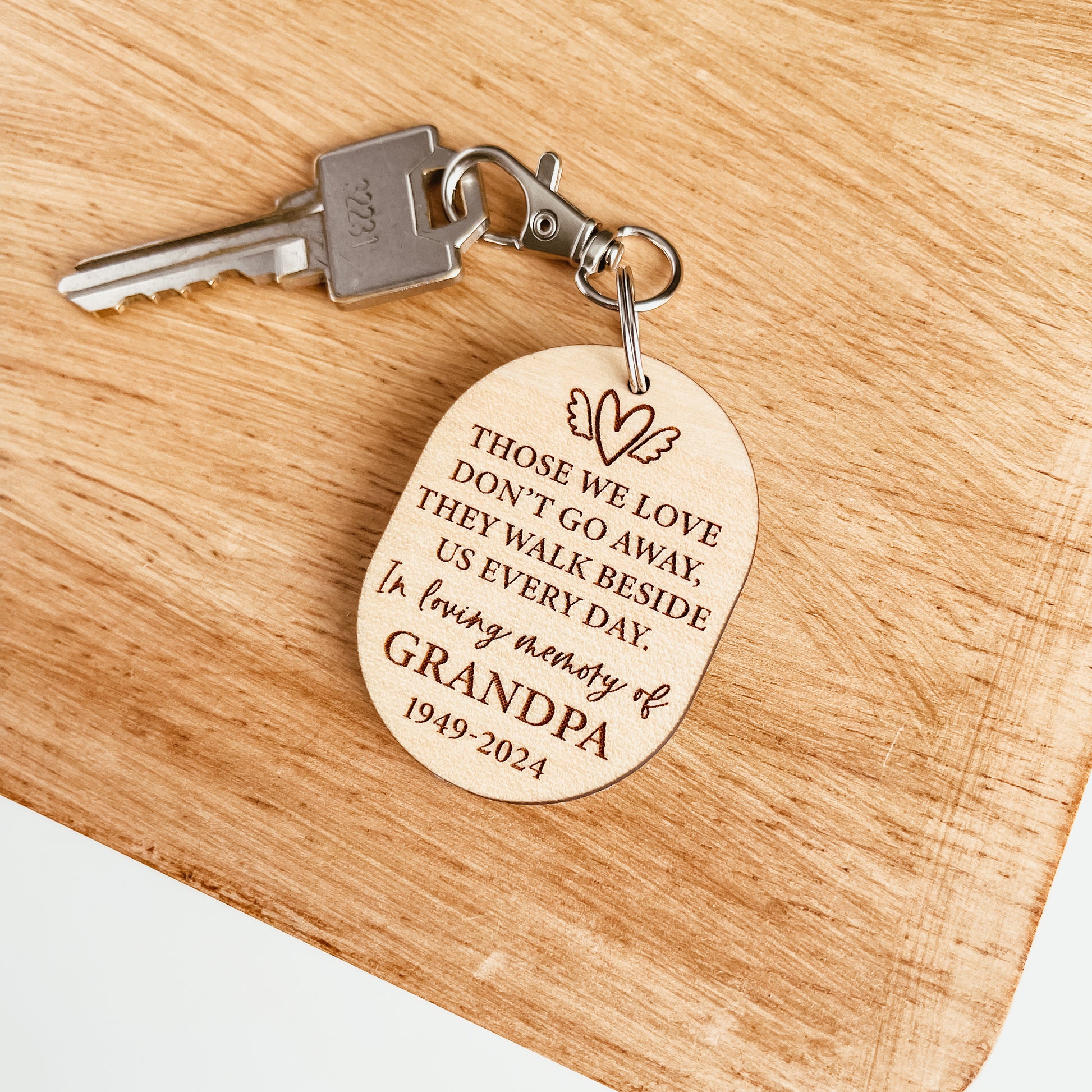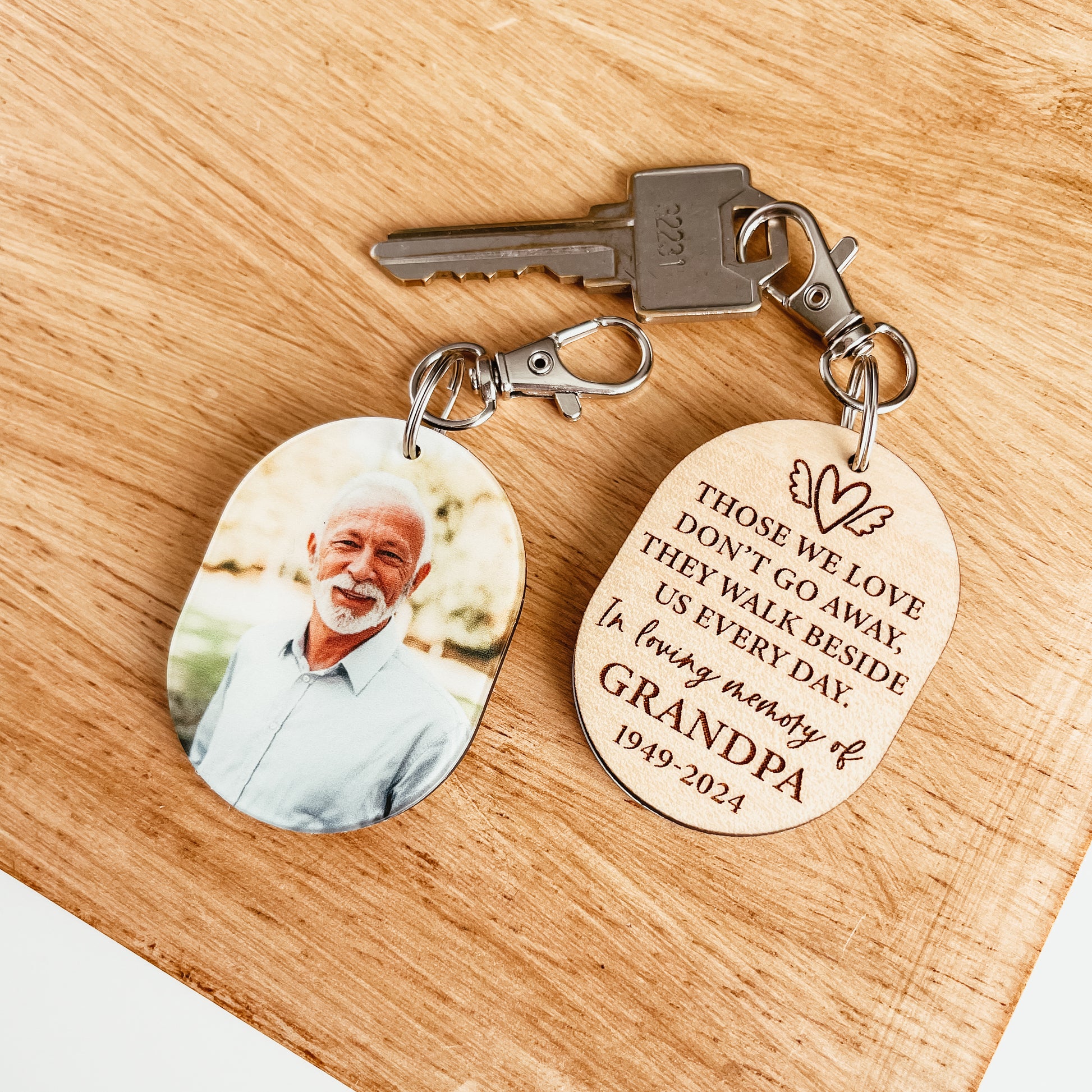 Carry a memory of your loved ones with you with this keychain from our collection of custom keyrings. These make a thoughtful gift for anyone mourning the loss of a loved one. Personalized with your photo on the front and your choice of name and dates on the back.
