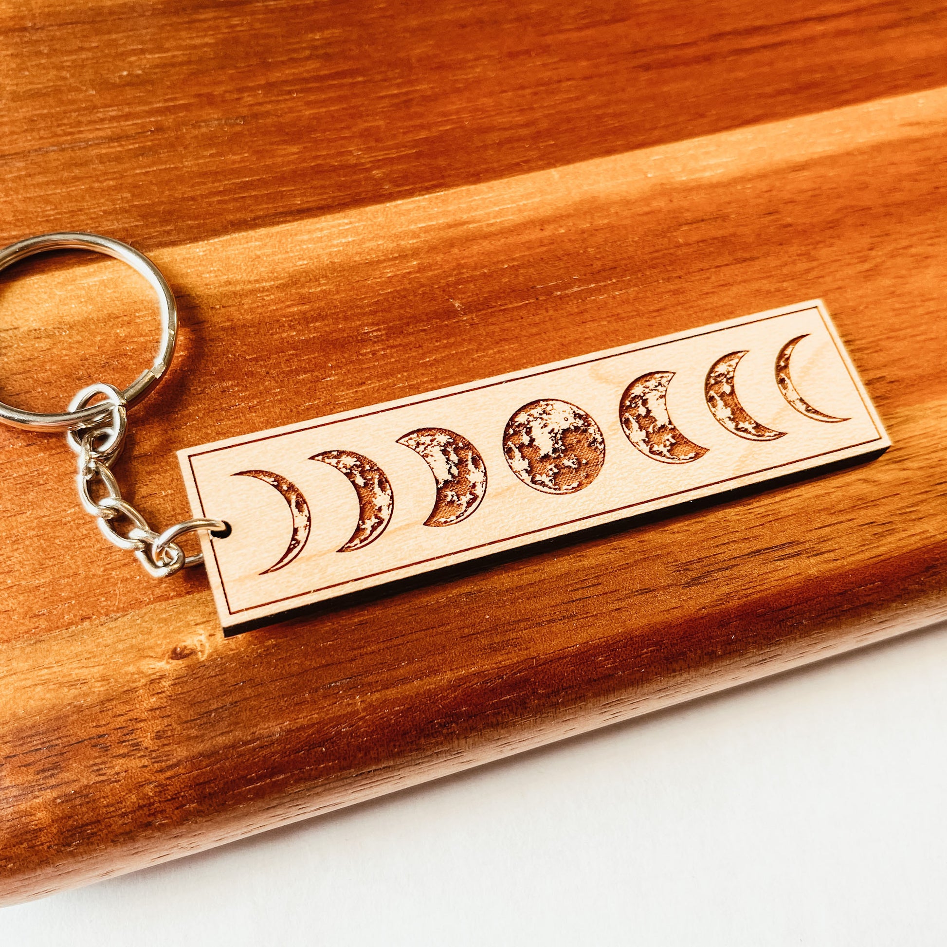 Our wooden keychains are cut from premium-grade, laminated maple and engraved with our studio laser.