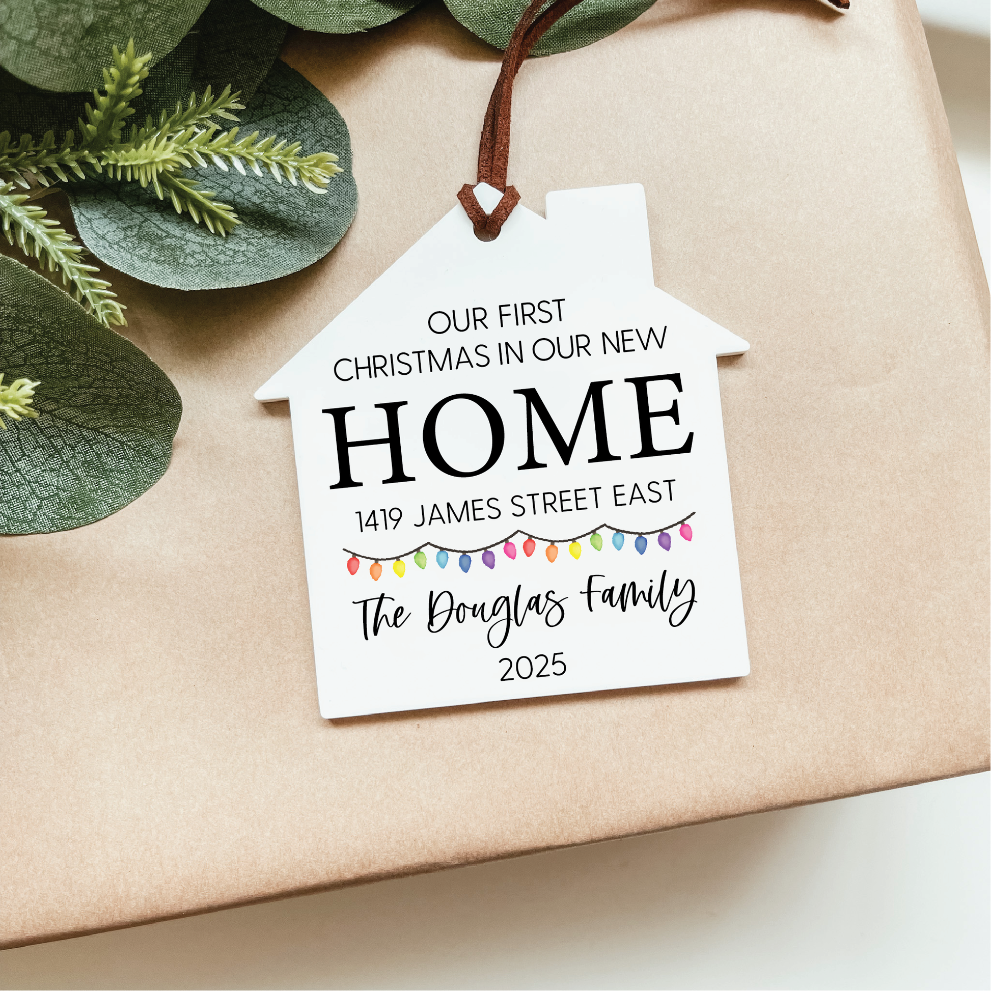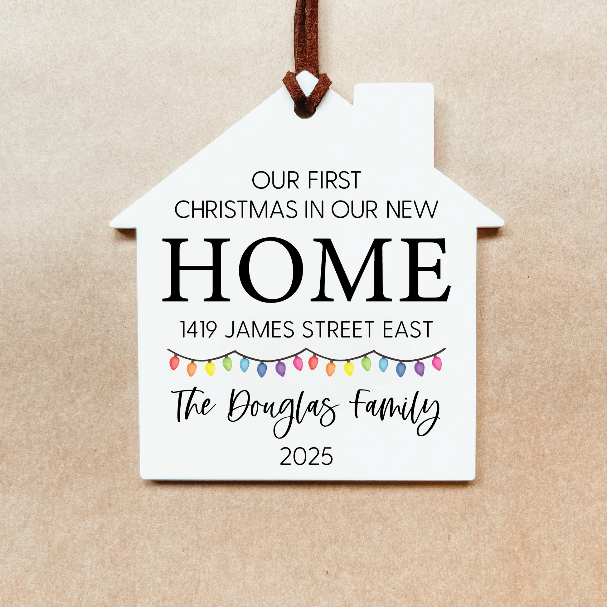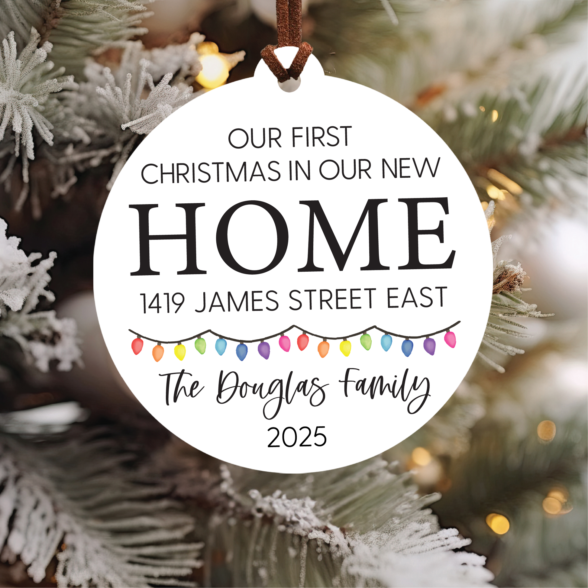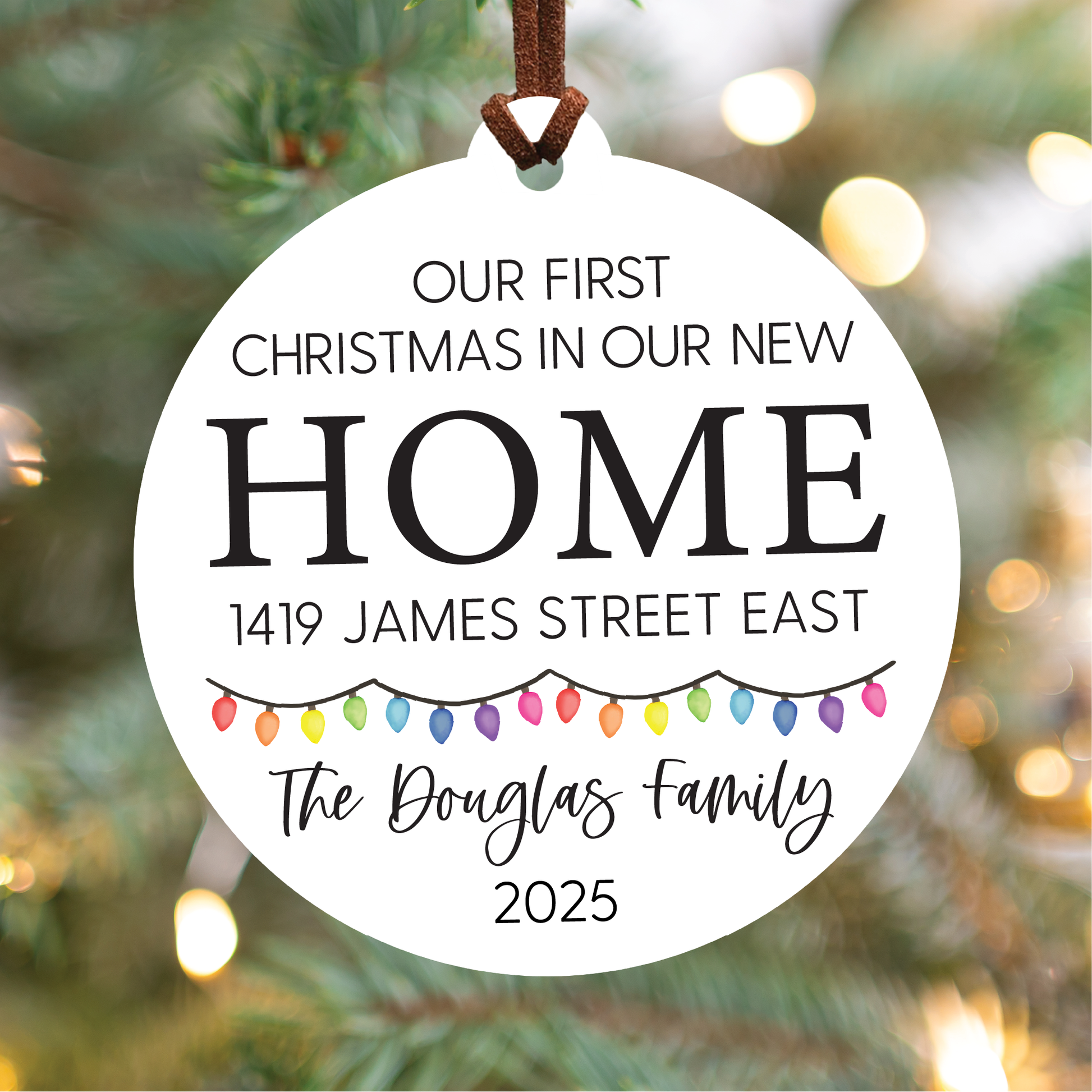 Personalized New Home Christmas Ornament | House or Round | V1 Lights