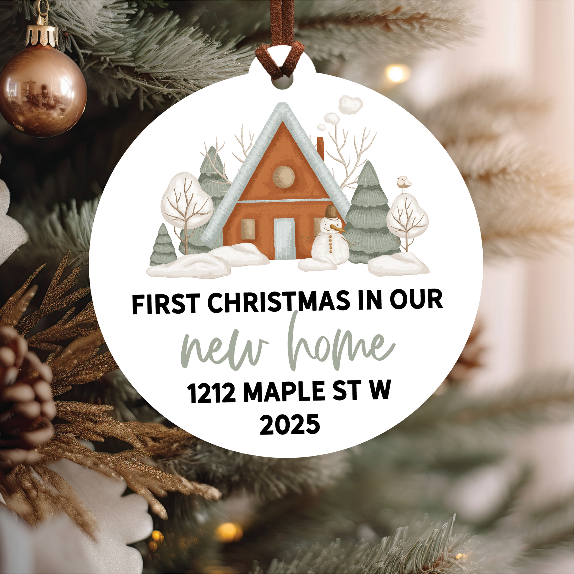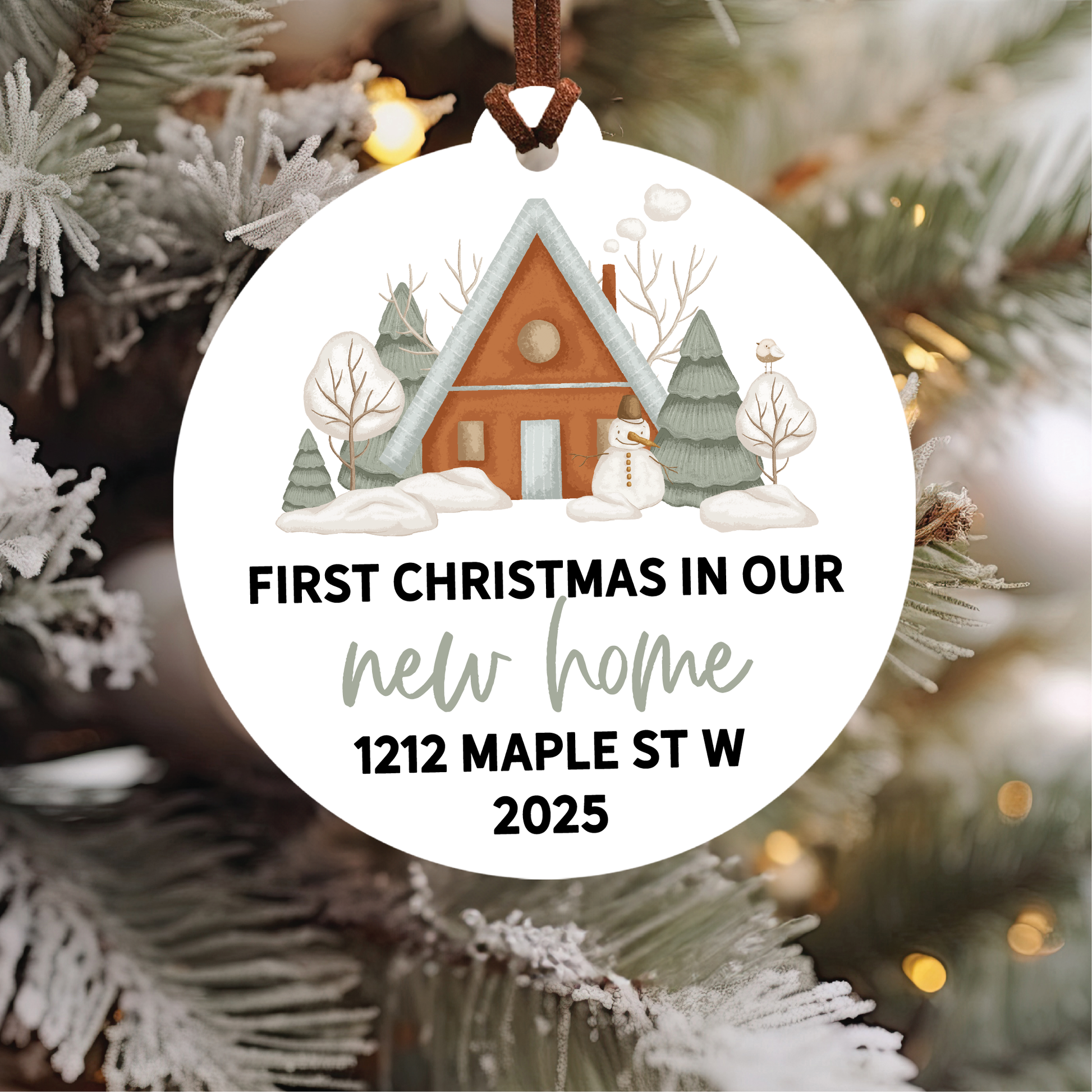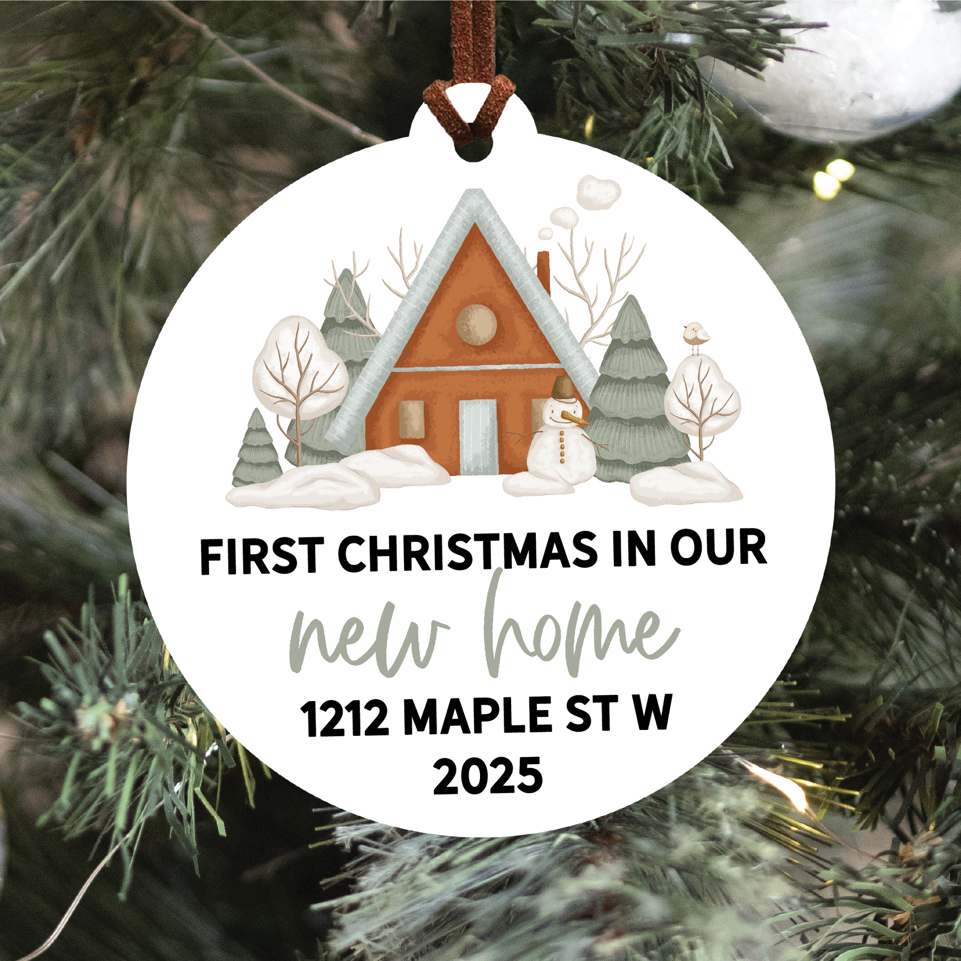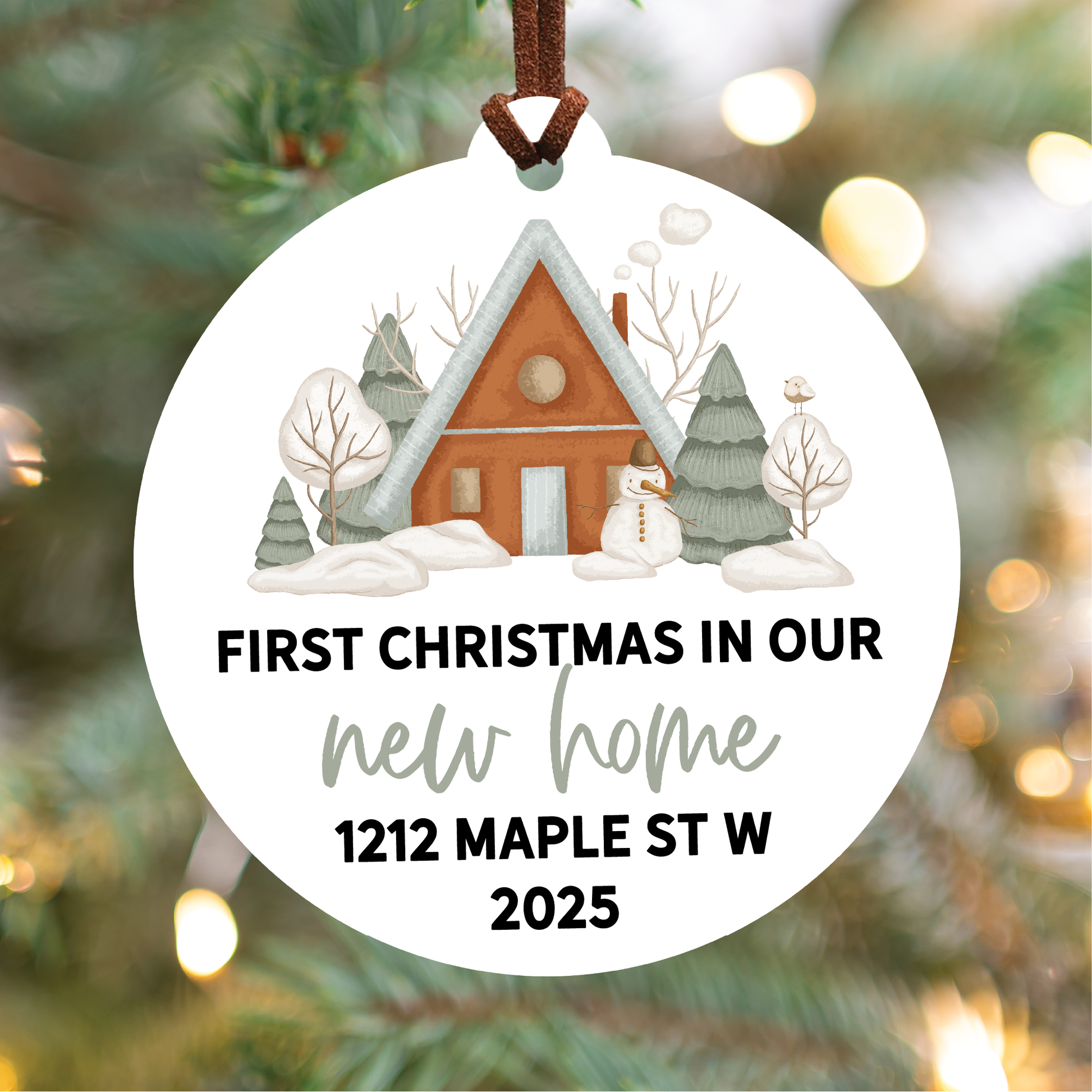 Each ornament is laser cut from 1/8" white acrylic and then printed with permanent ink. They are finished with a brown suede string for a modern look. The back of the ornament will be white.