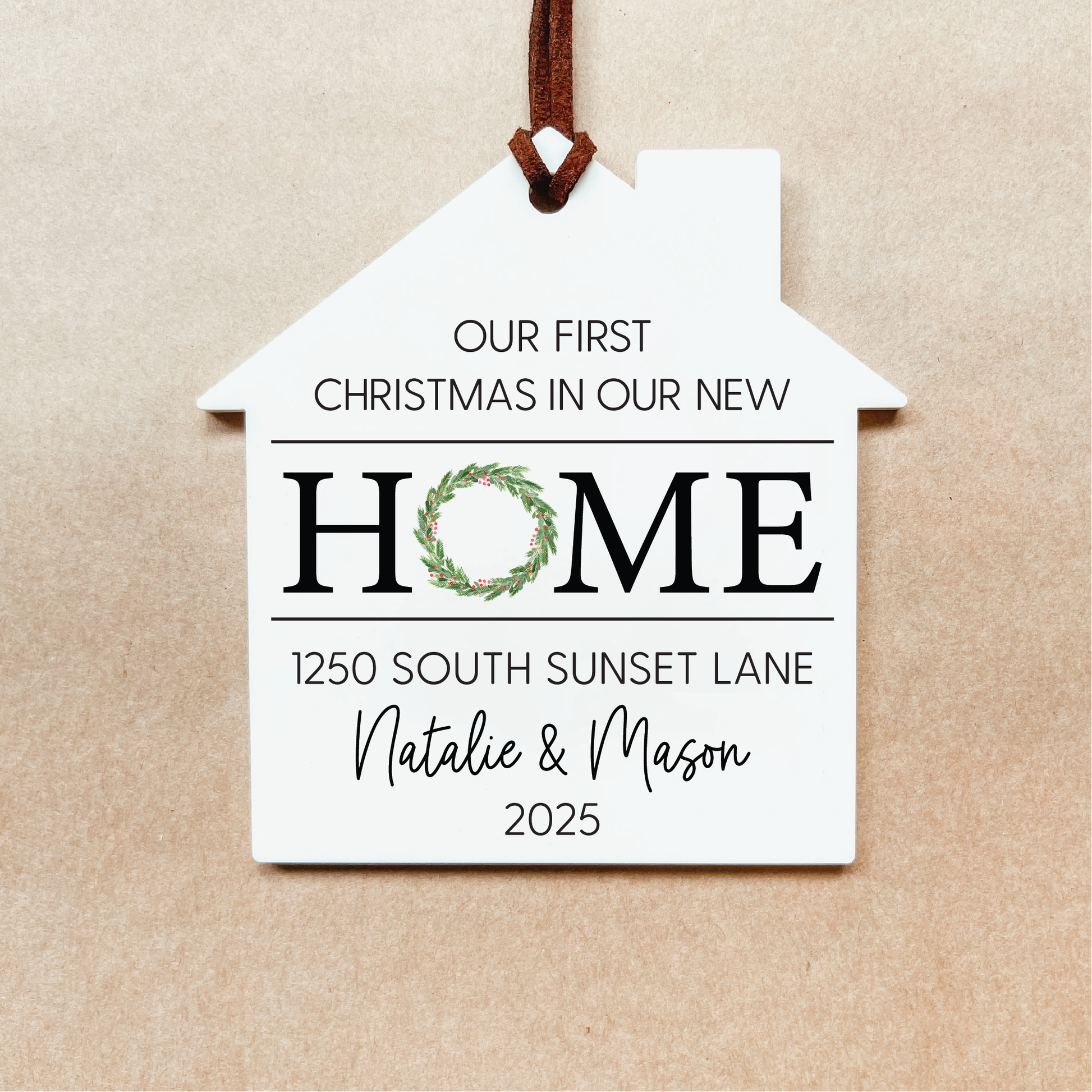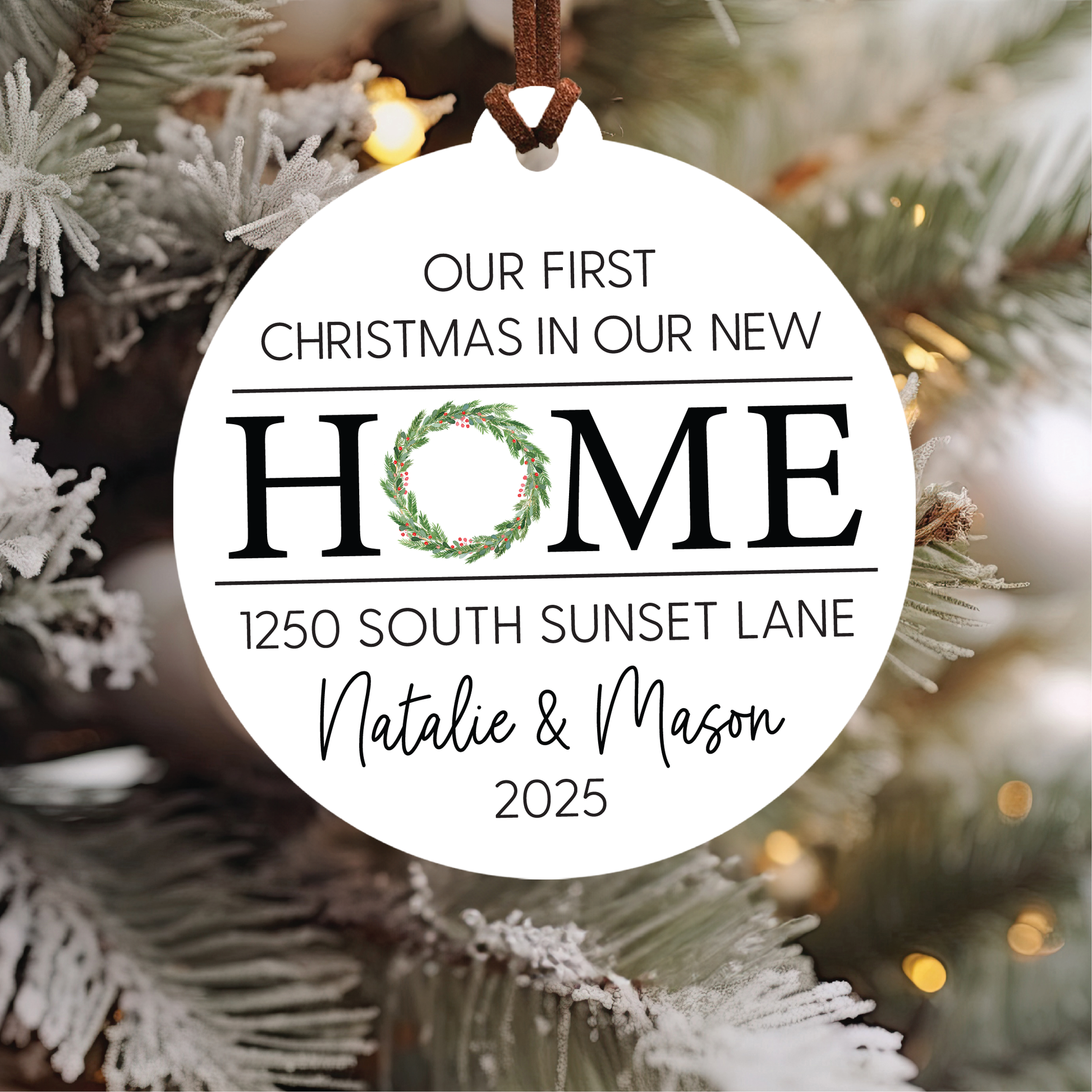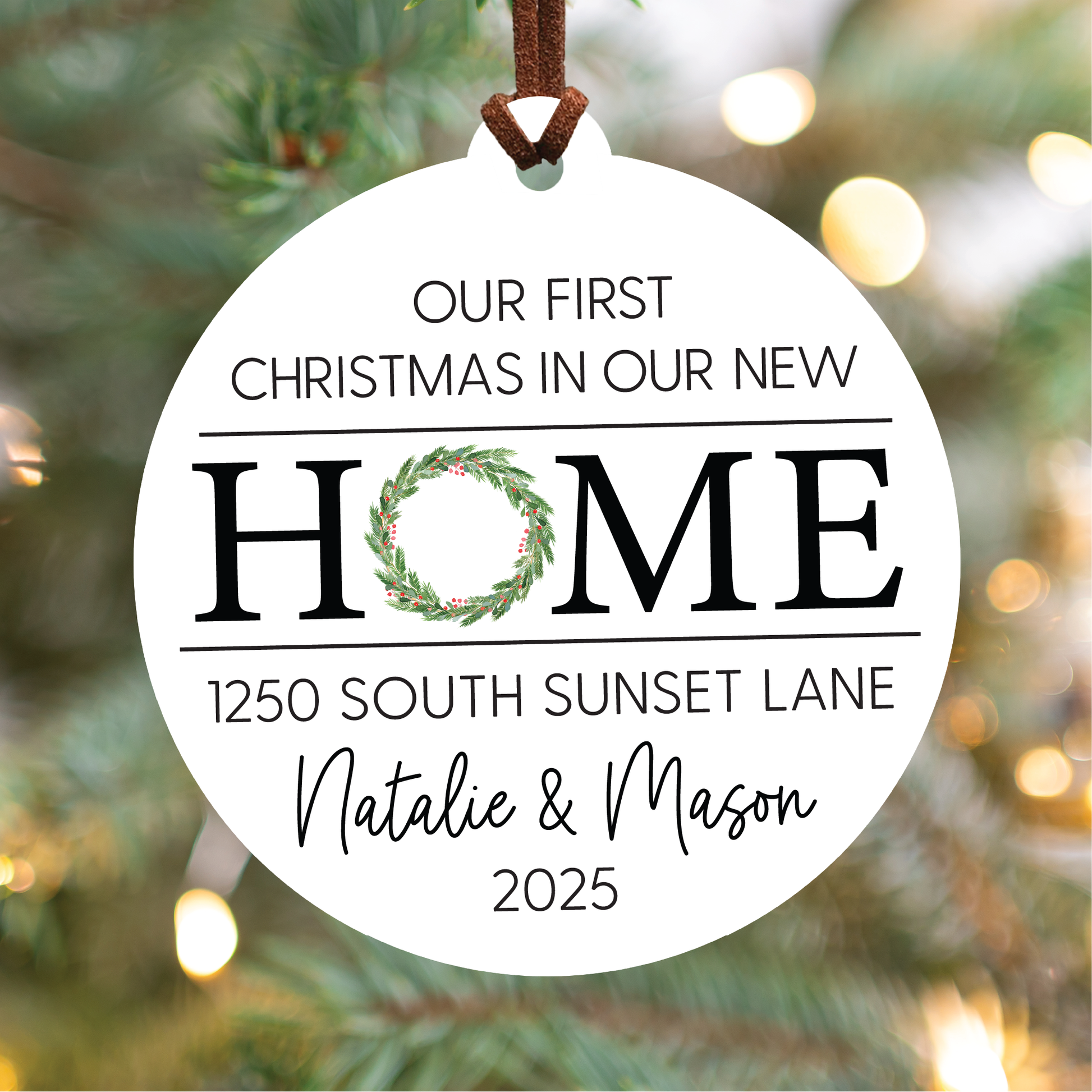 Personalized New Home Christmas Ornament | House or Round | V2 Wreath