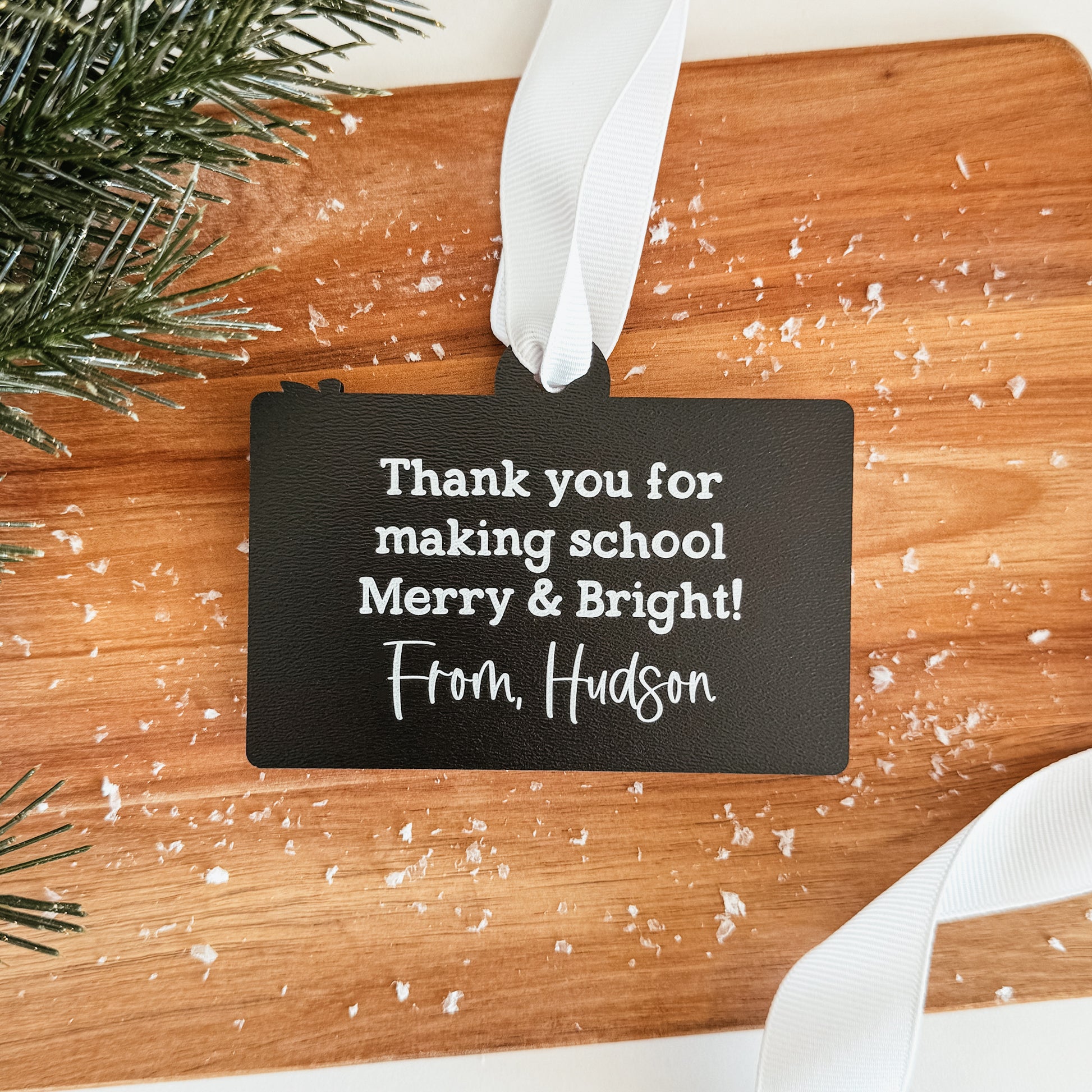 Our teacher ornaments are perfect for teacher appreciation gifts, end-of-year or Christmas teacher gifts, holiday classroom gifts, and personalized ornaments for educators.