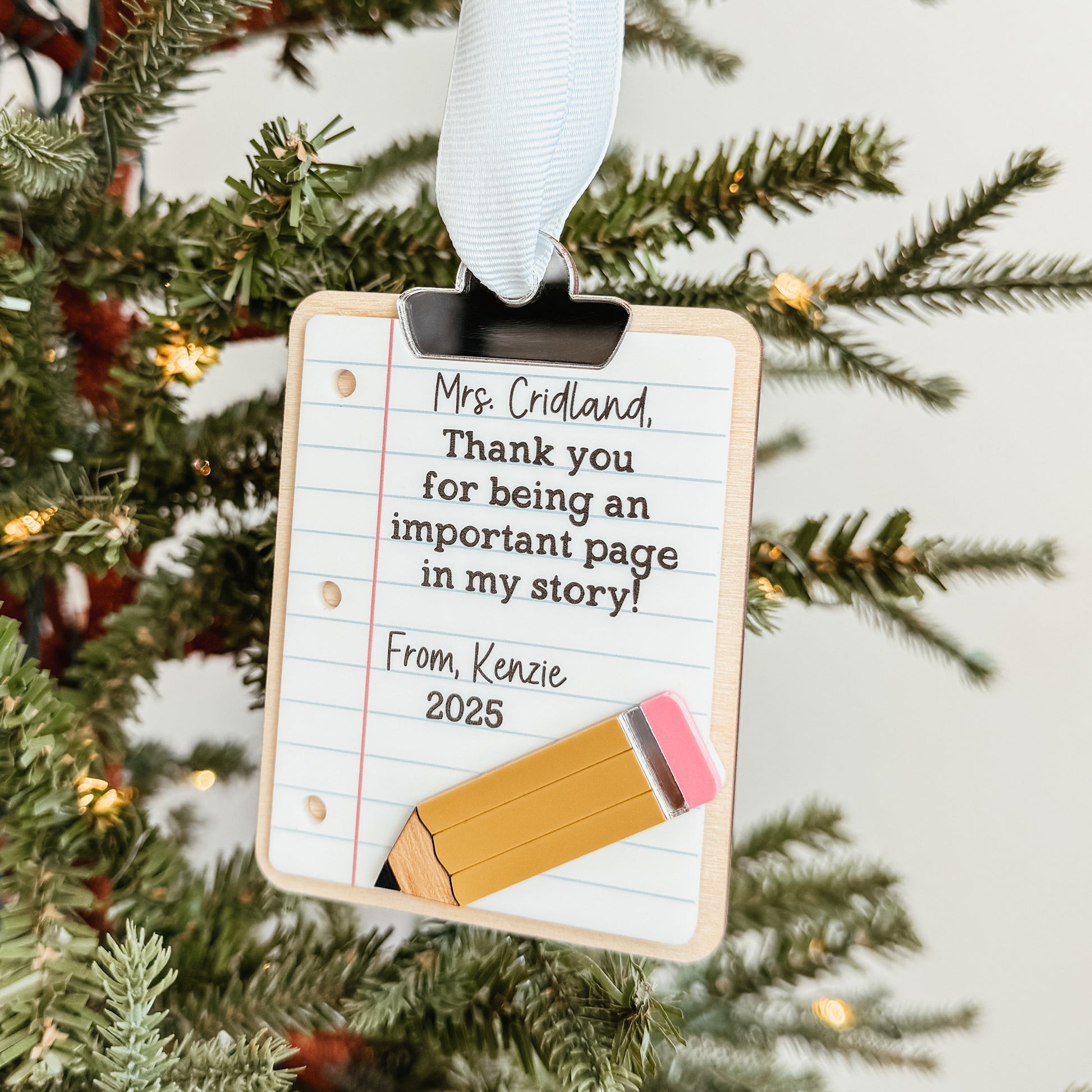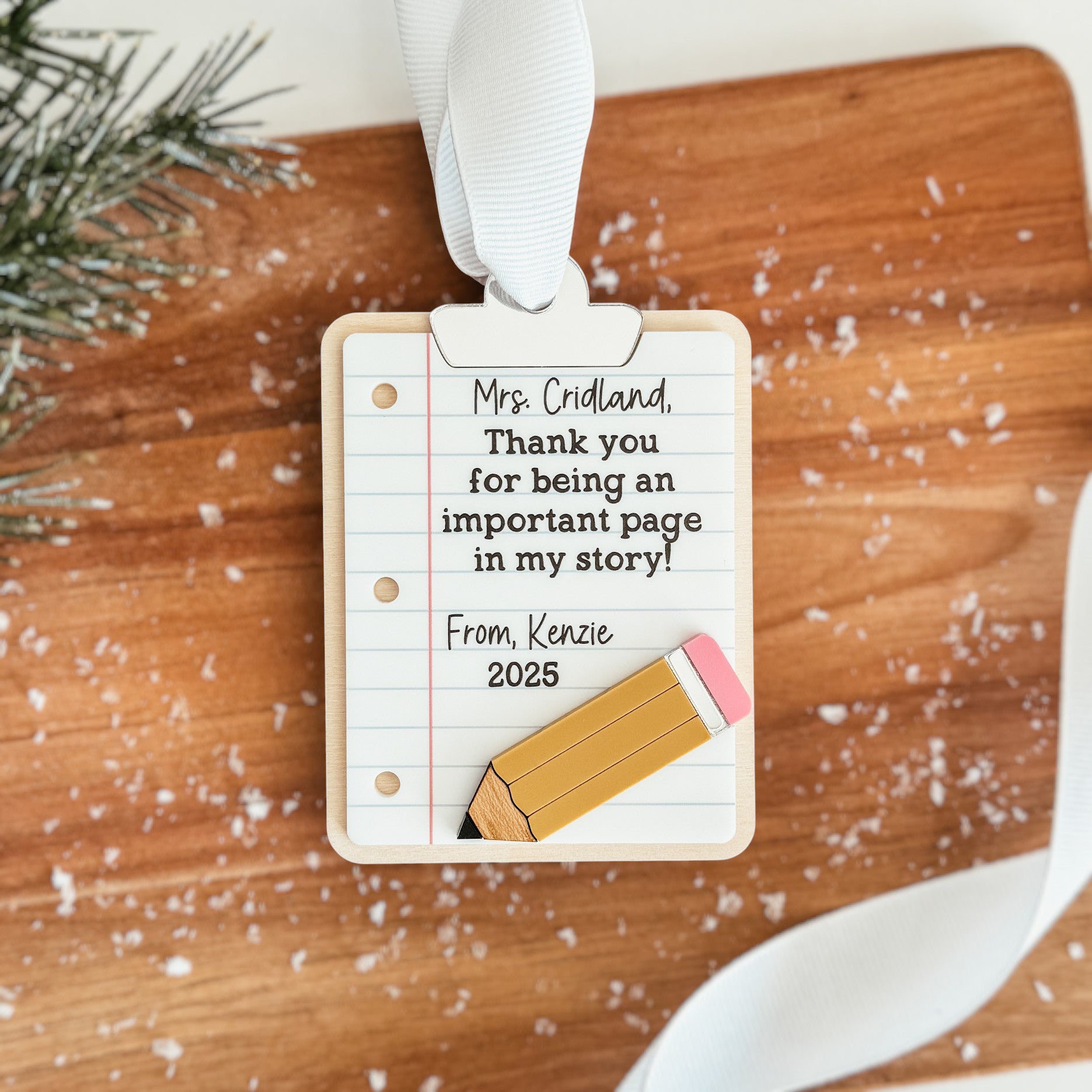 Personalized Teacher Christmas Ornament | 3D Clipboard