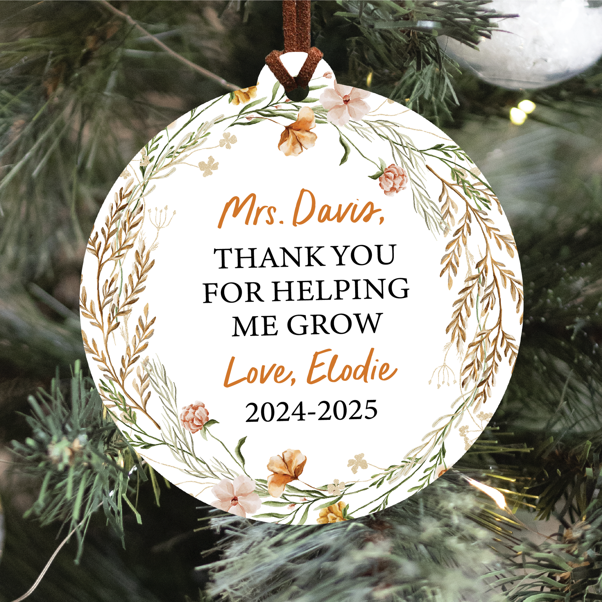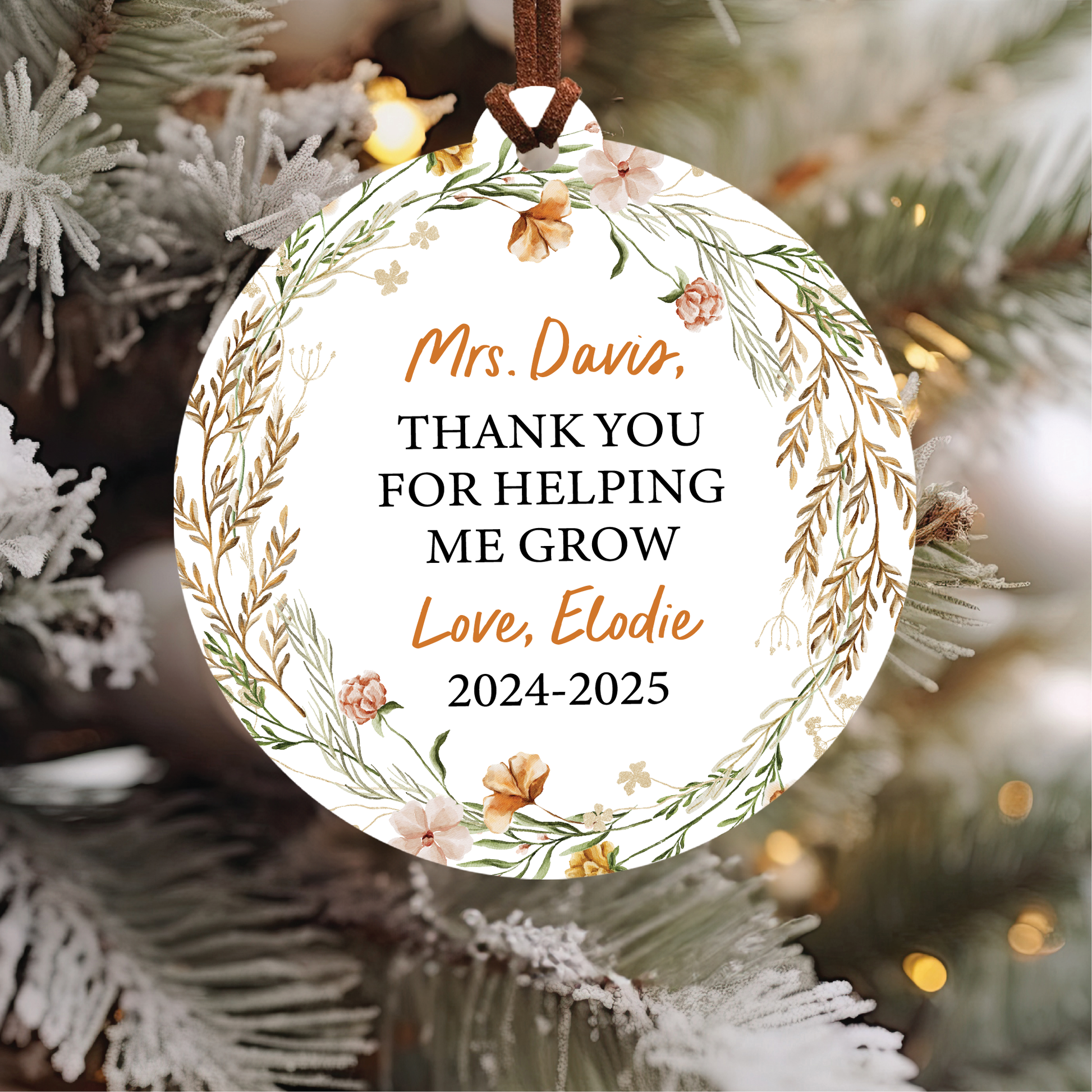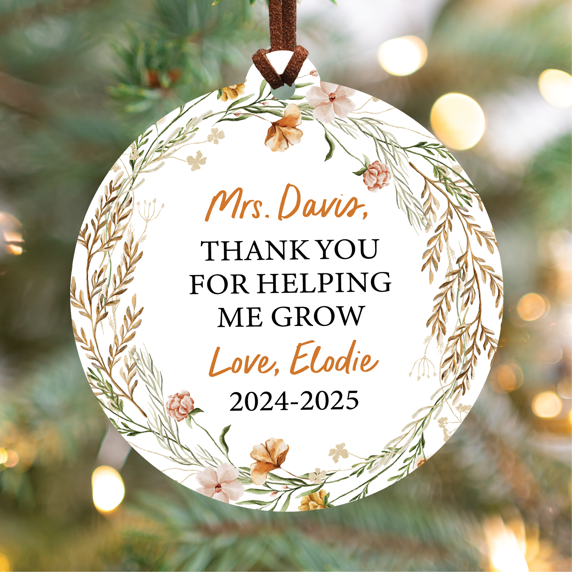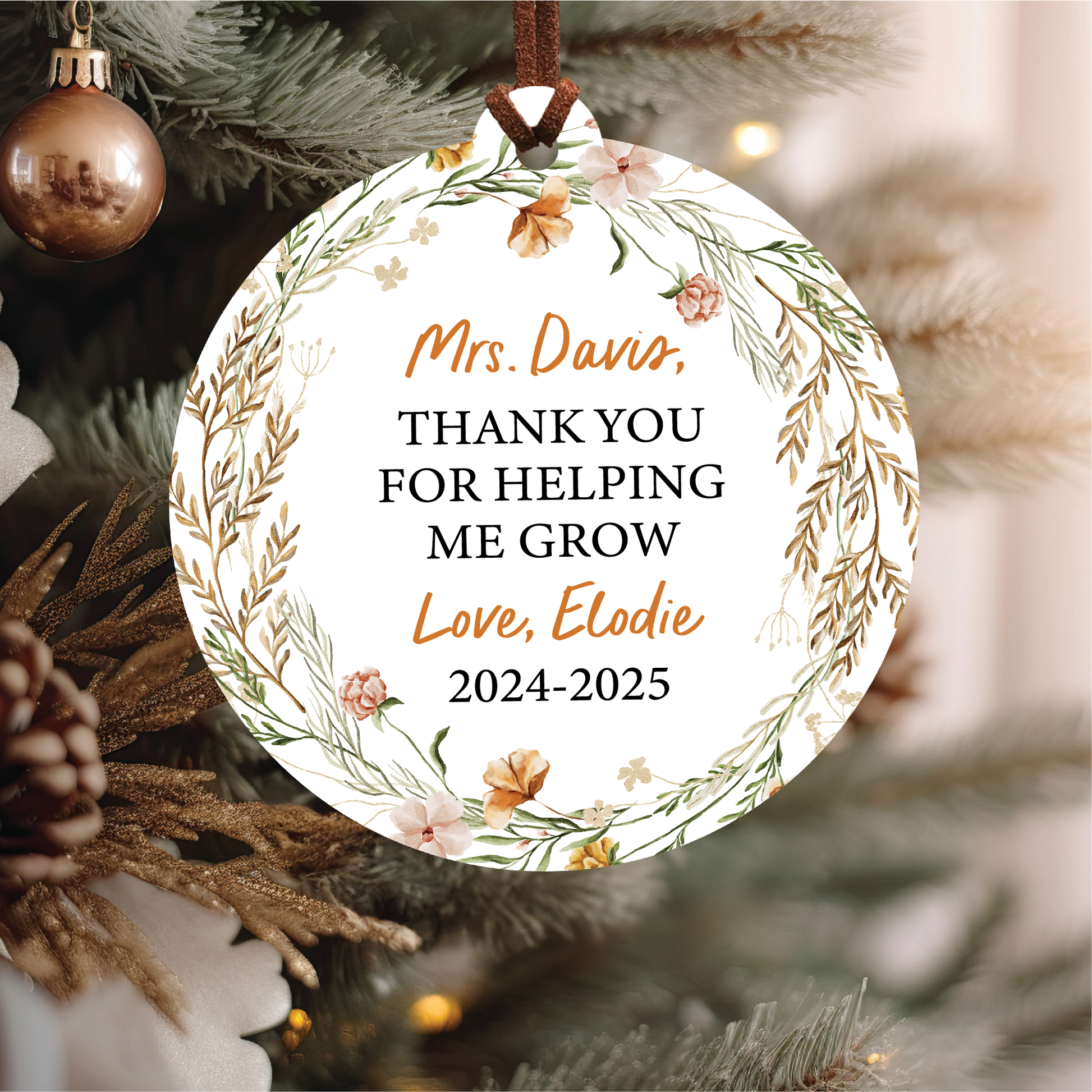 Personalized Teacher Christmas Ornament | Boho Helping Me Grow