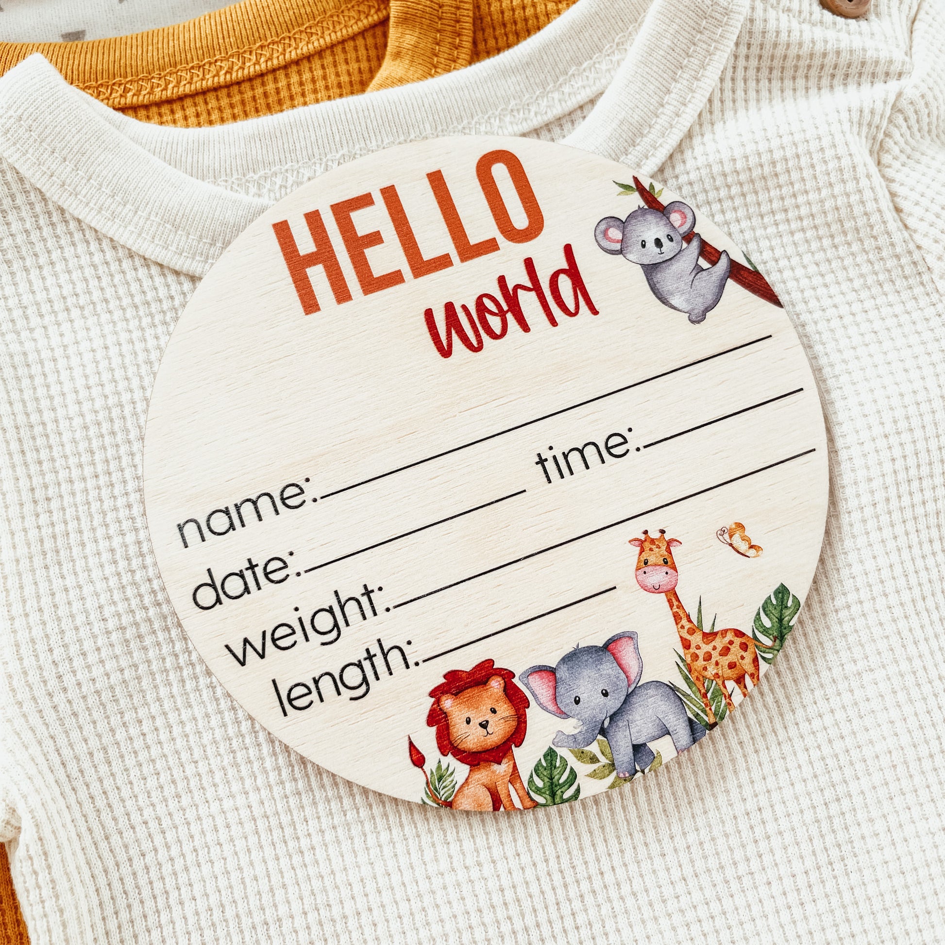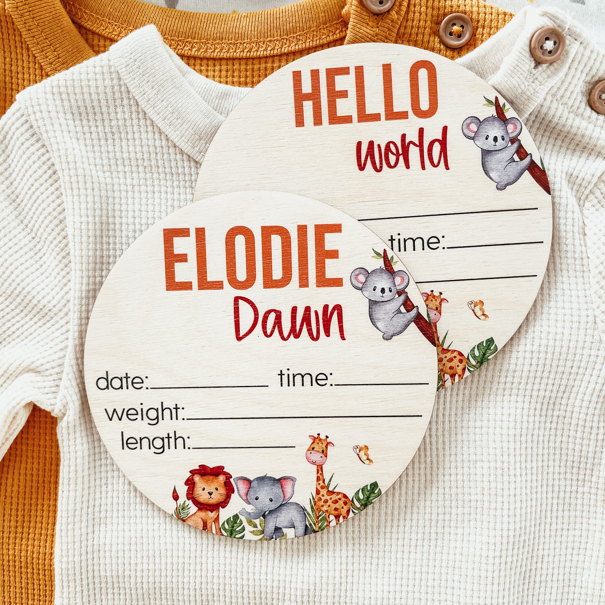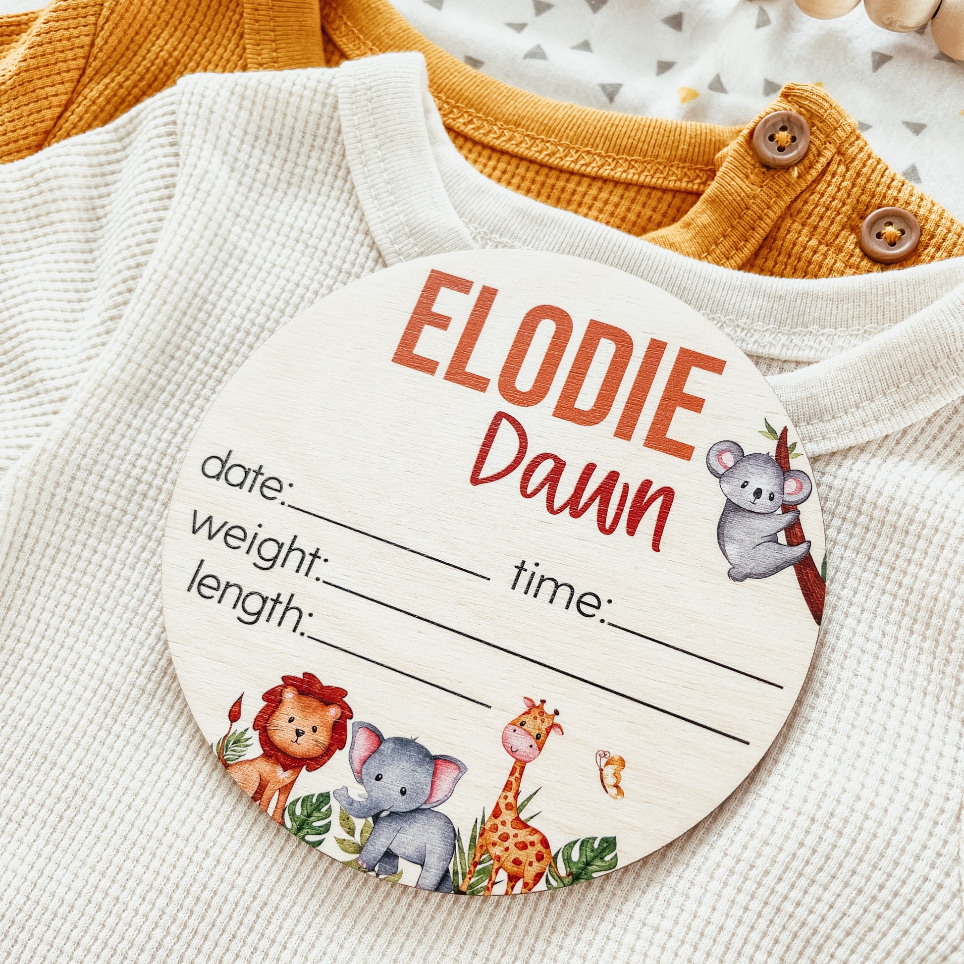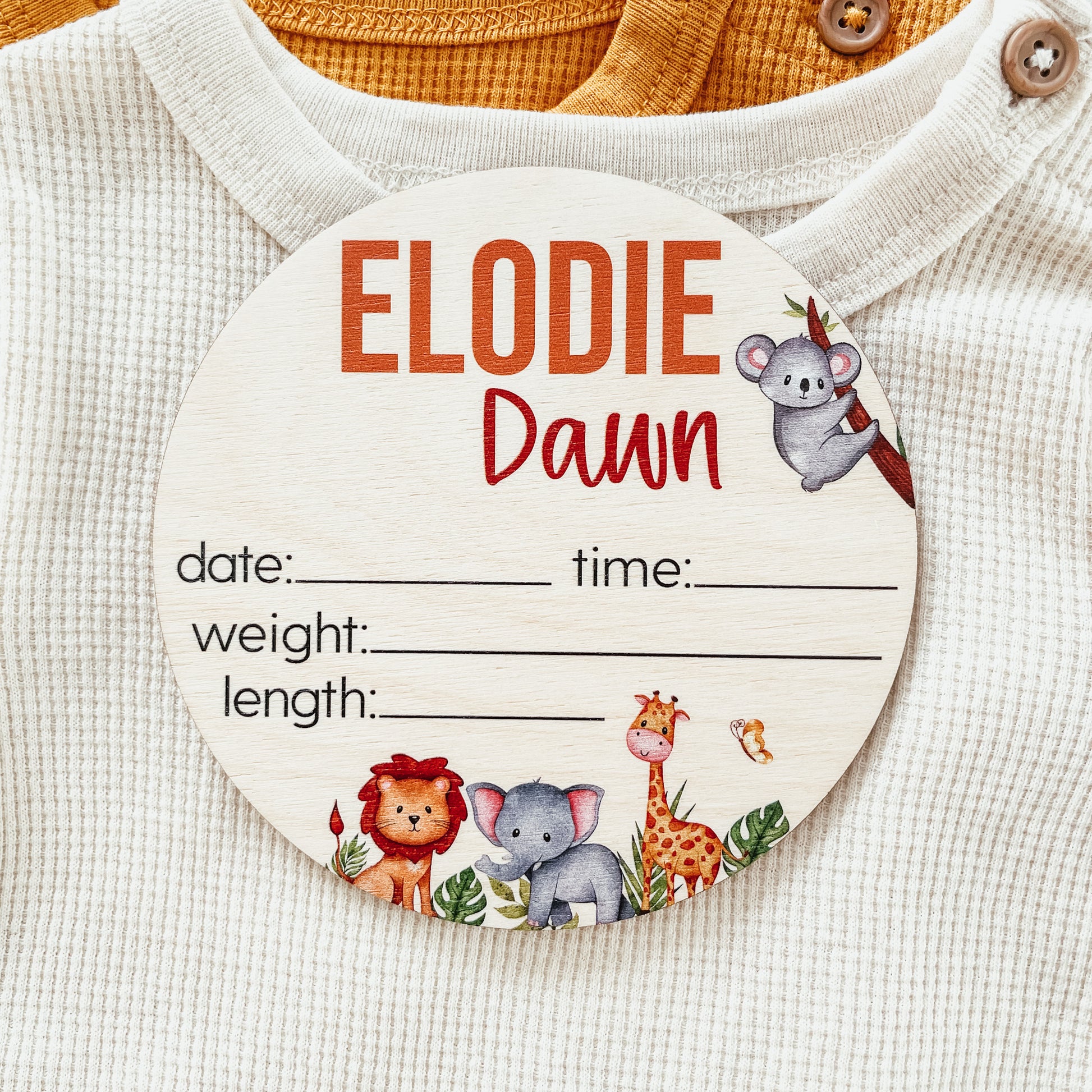 Baby Birth Announcement Sign - Wooden Safari Animals