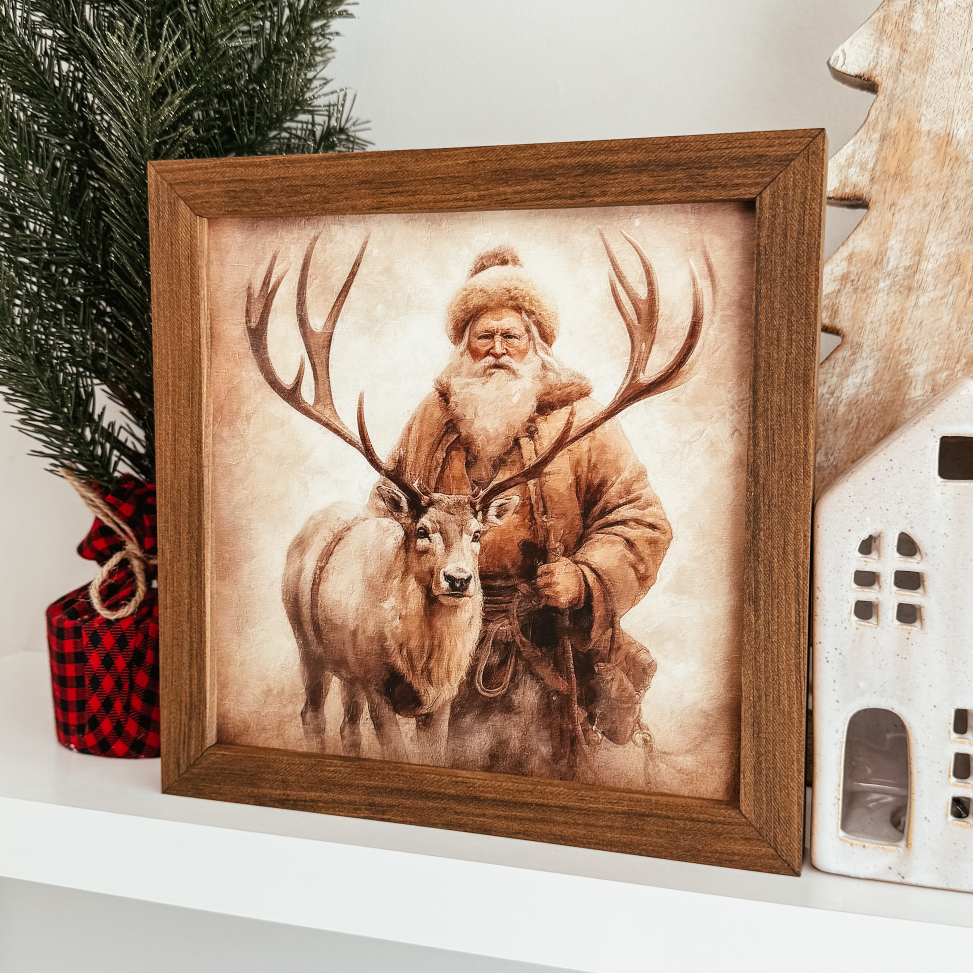 Santa Claus & Reindeer Vintage Inspired Christmas Sign