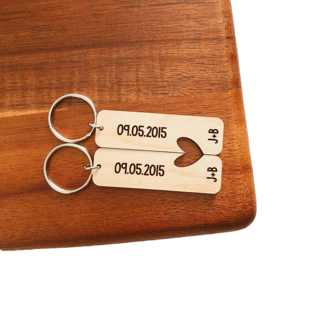 Set of Two Dates and Initials Keychains