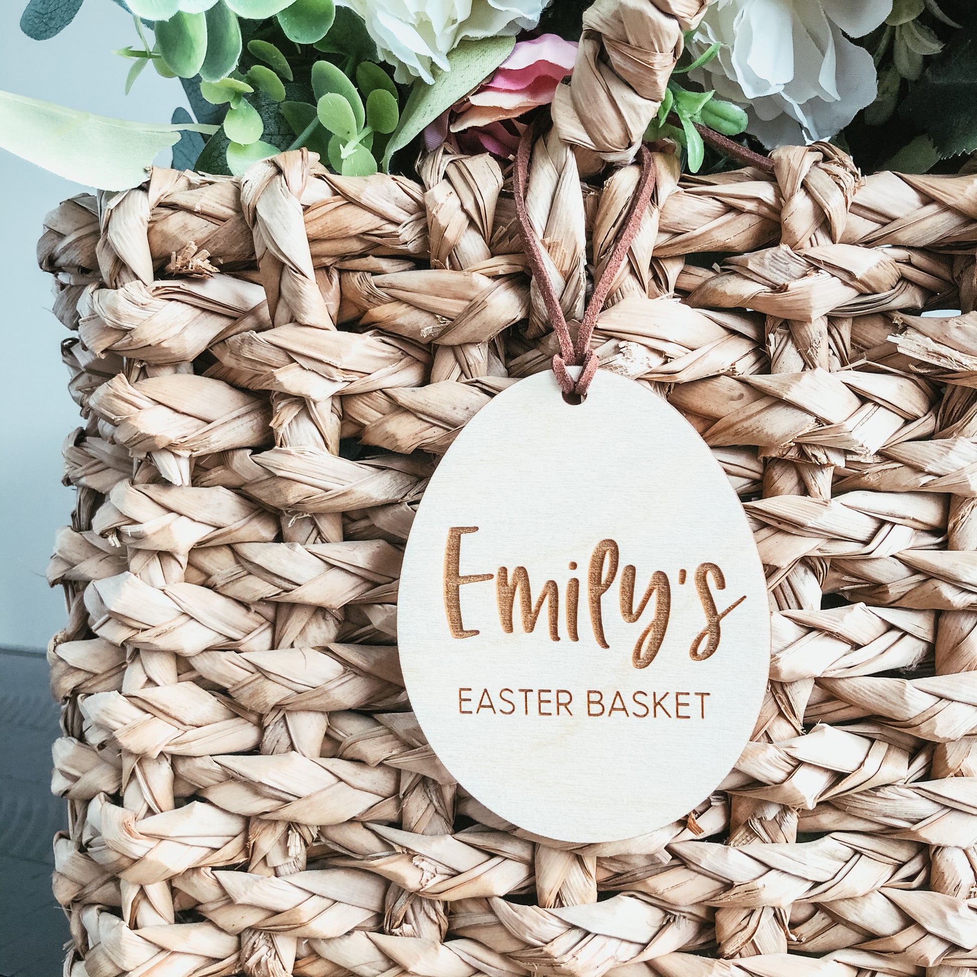Each tag is cut from 1/8 inch high-quality baltic birch. The name is laser engraved into the wood.