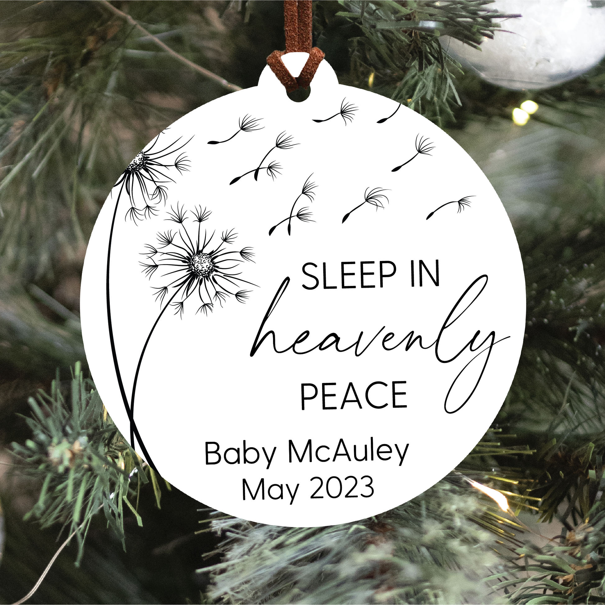 Each ornament is laser cut from 1/8" white acrylic and then printed with permanent ink. They are finished with a brown suede string for a modern look. The back of the ornament will be white.