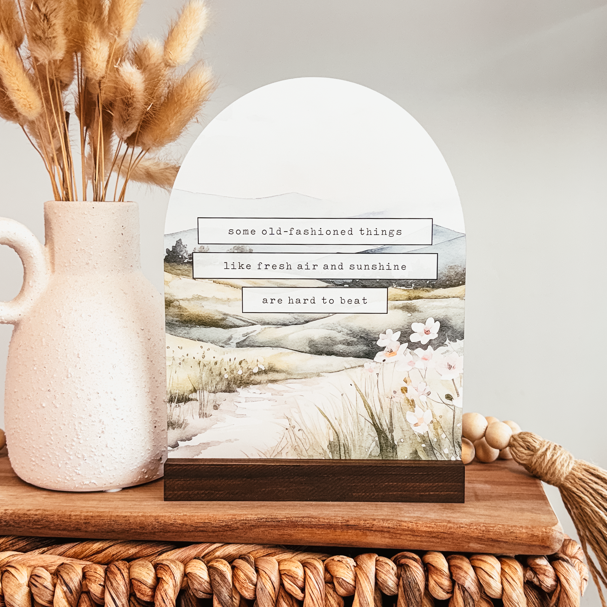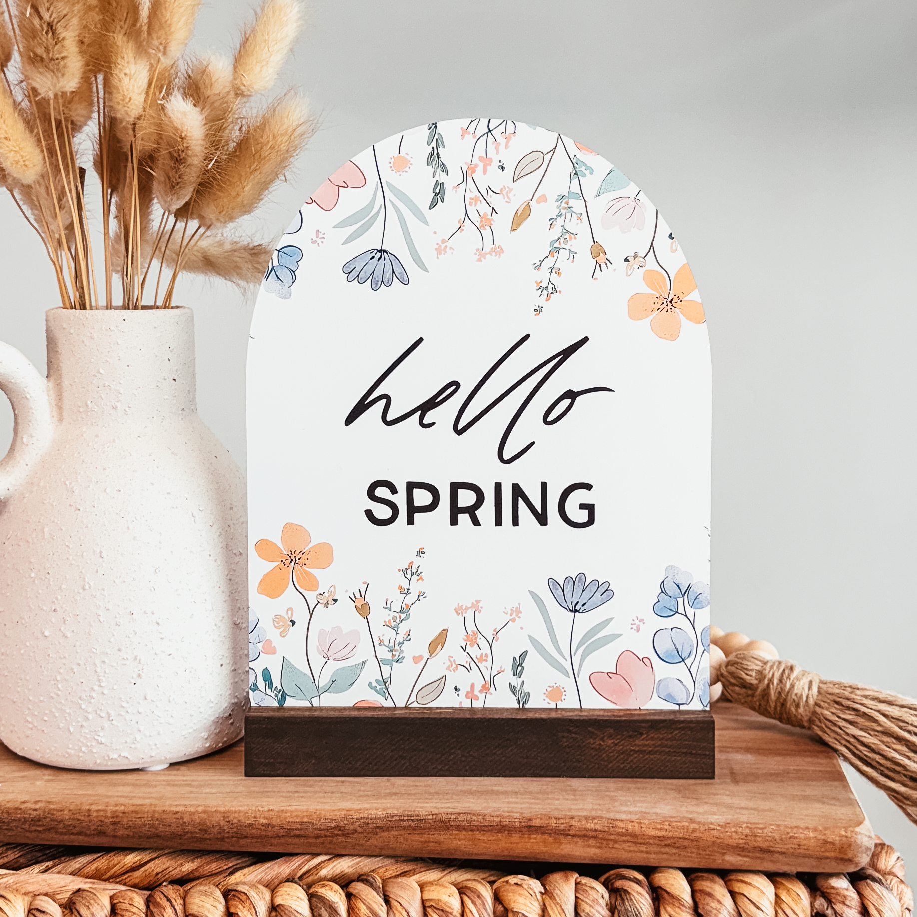 Spring Arched Mini Sign – 8” x 6” with Wooden Base