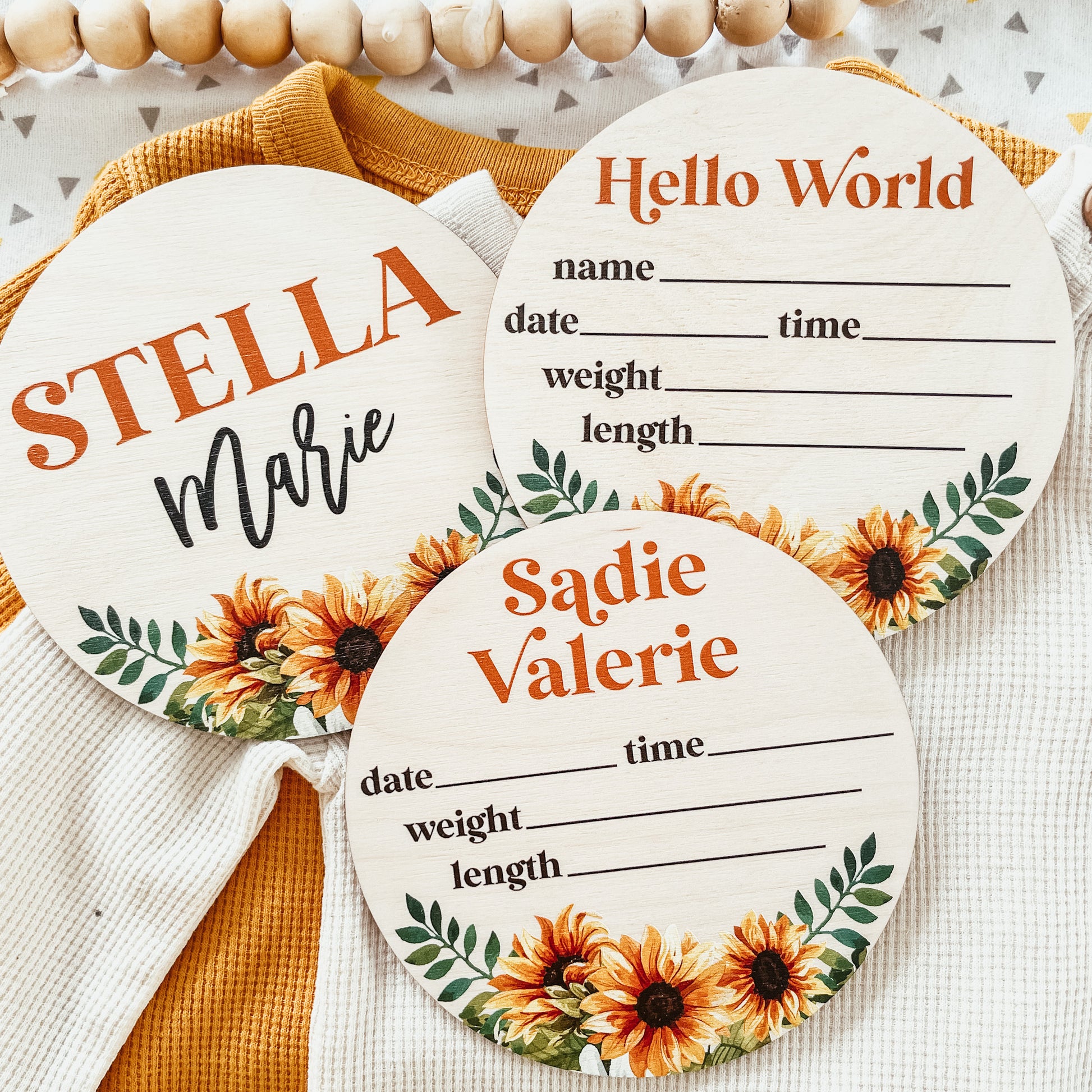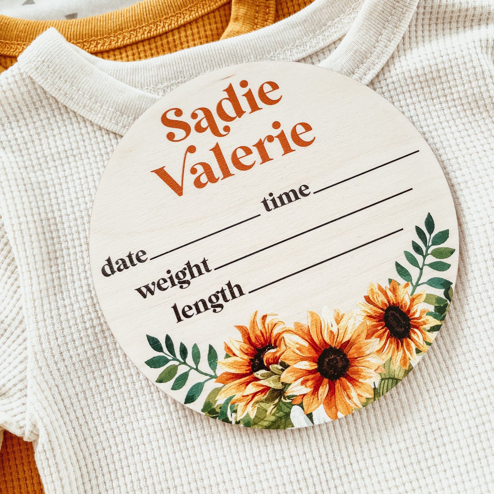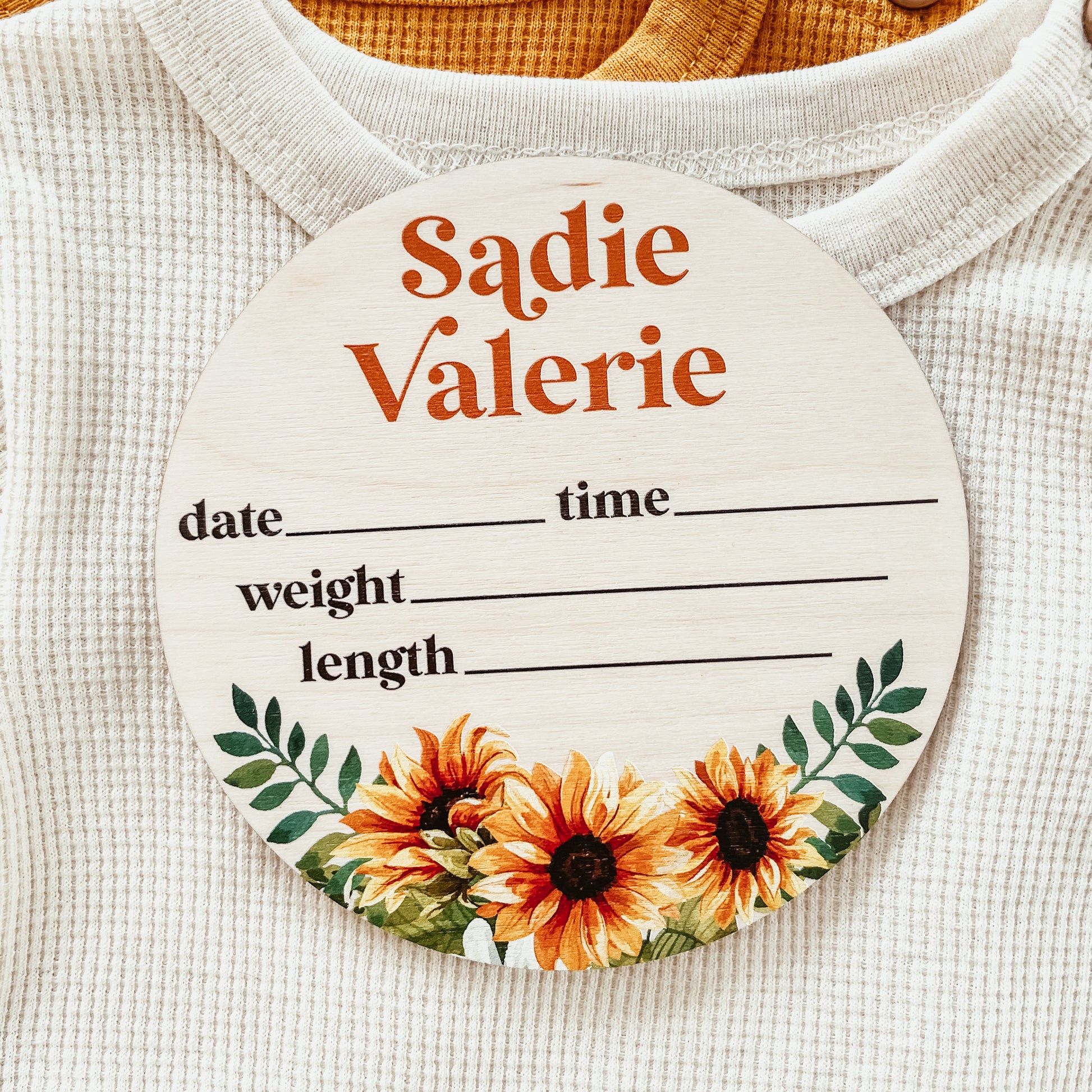Our wooden birth announcement signs are a great way to announce your baby’s name and add to your newborn photoshoot.