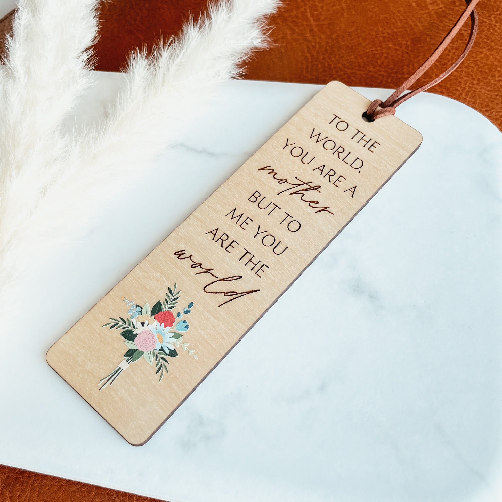 Each bookmark is cut from 1/8 inch thick maple veneer and engraved. The florals are printed with ink.