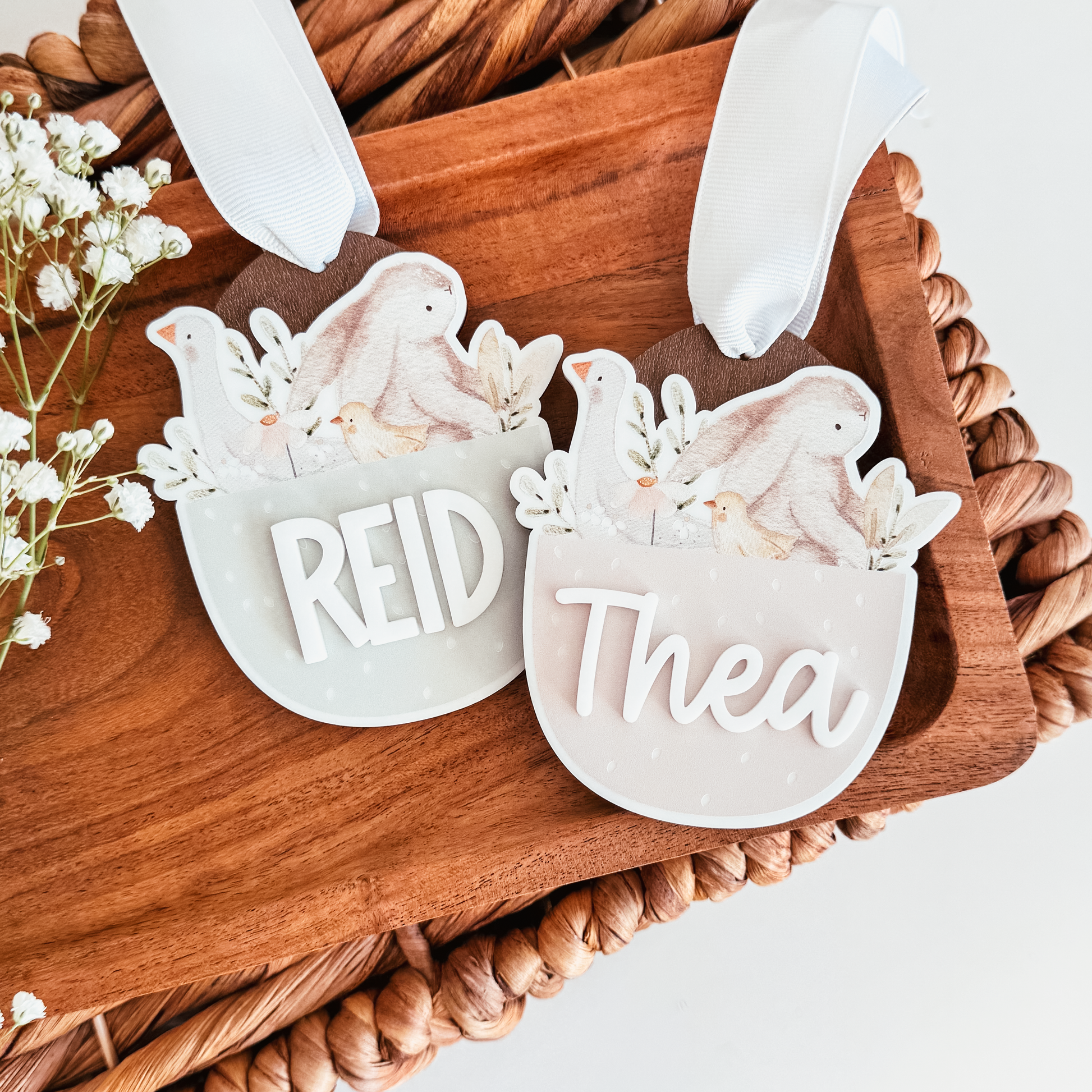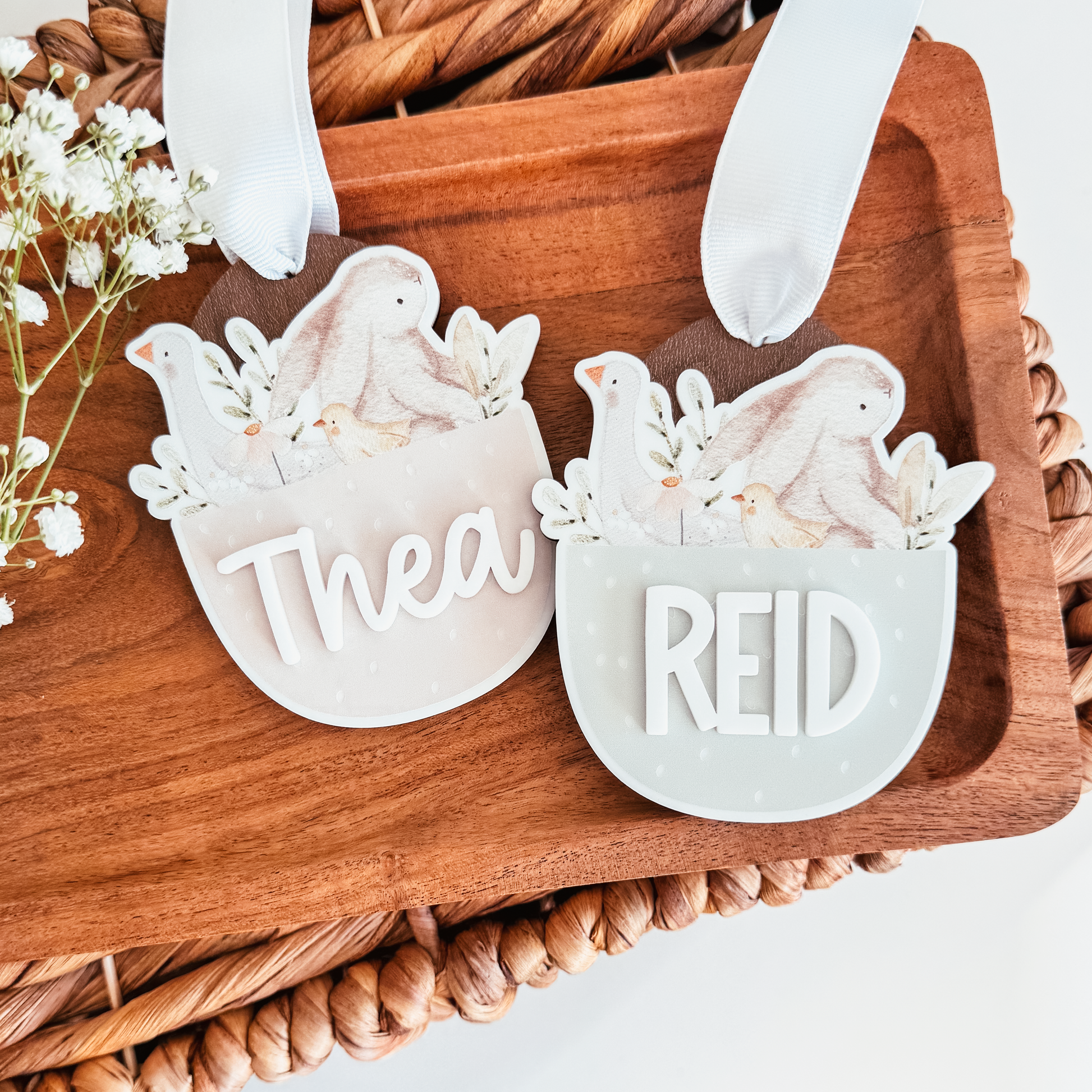 Add a soft, storybook touch to your child’s Easter basket with our Personalized Watercolour Easter Basket Tag. Featuring a delicate bunny and duck illustration, this tag is available in two beautiful spring shades: Soft Blush and Soft Mint.