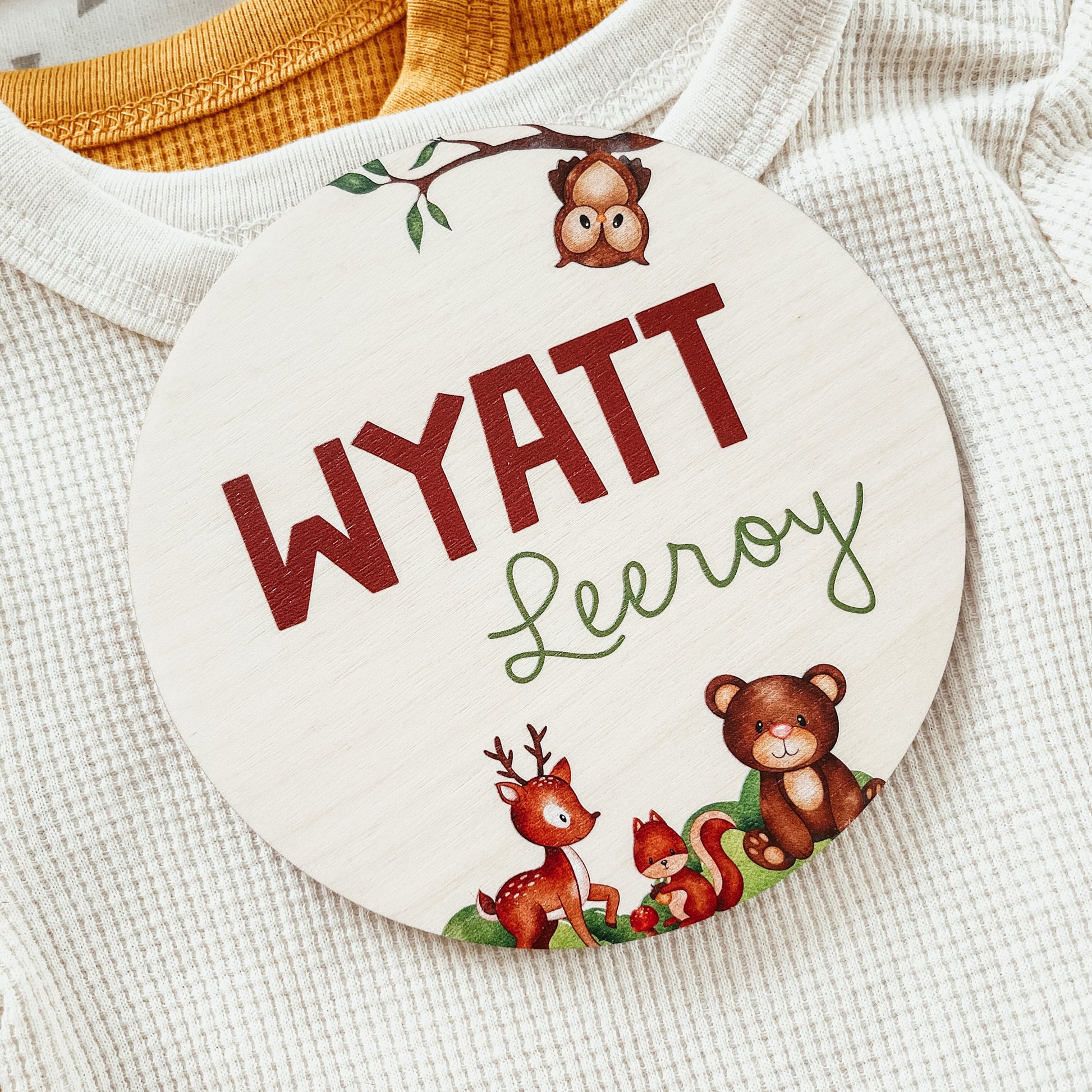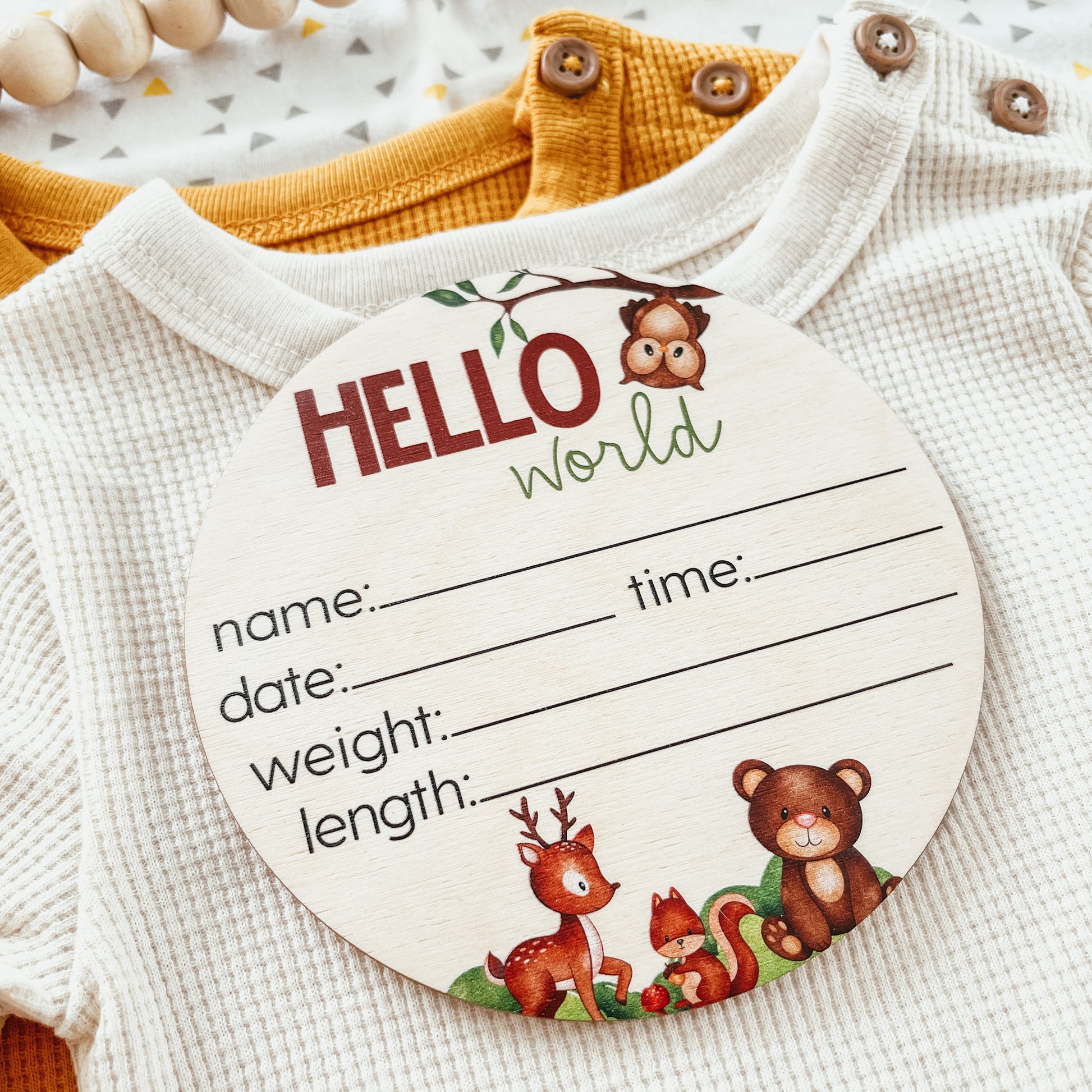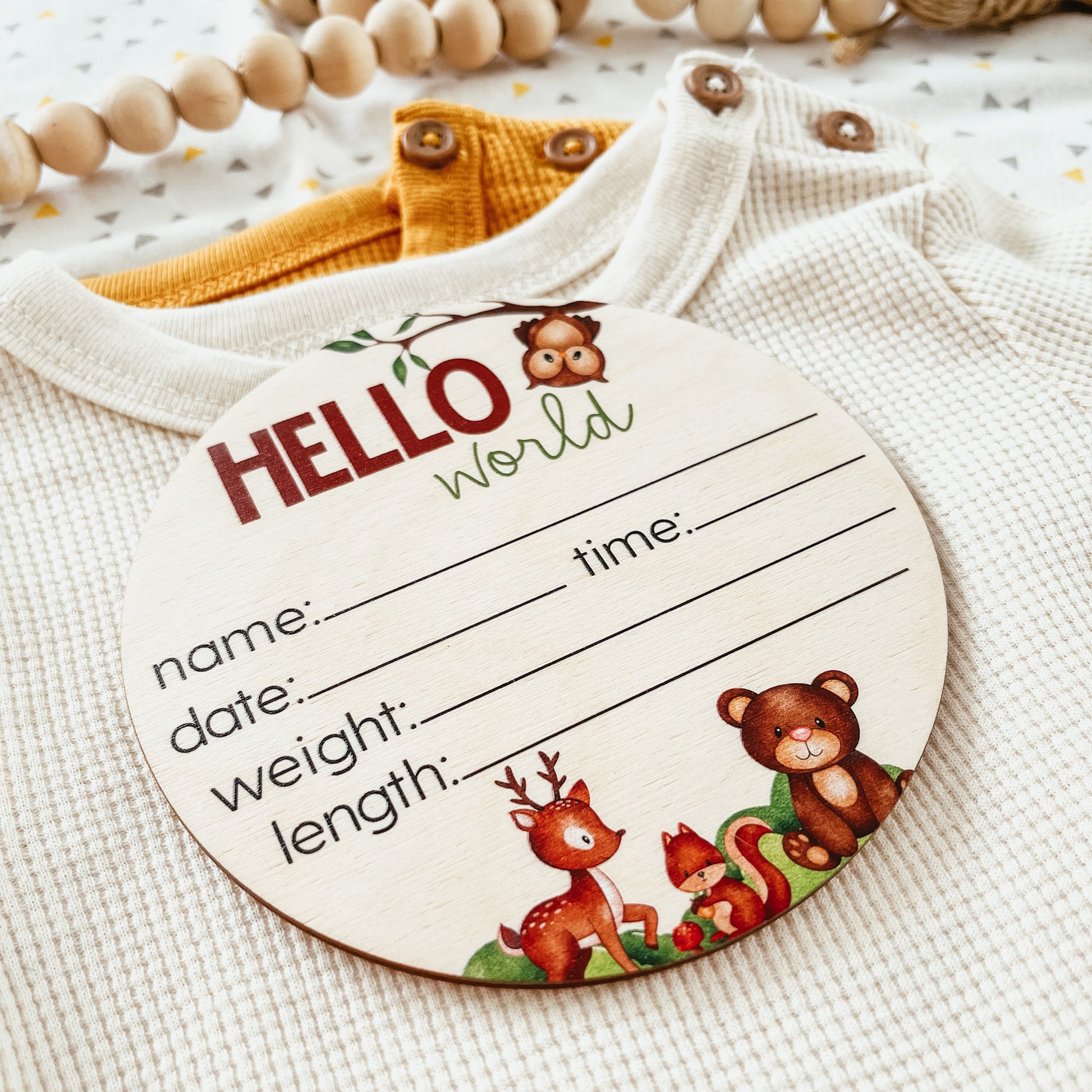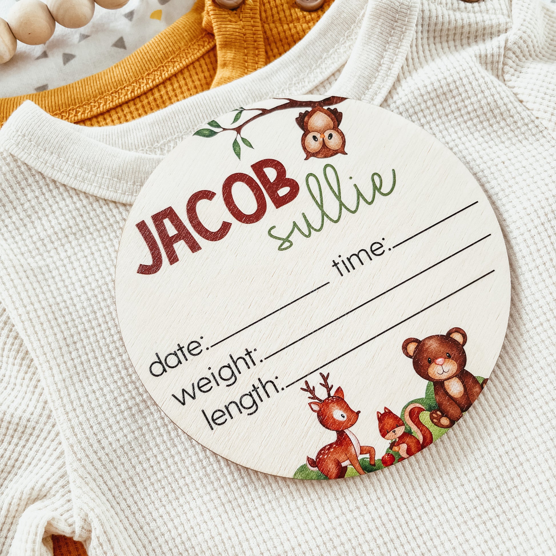 Baby Birth Announcement Sign - Wooden Woodland Animals